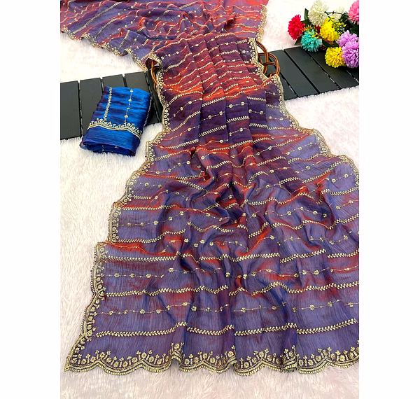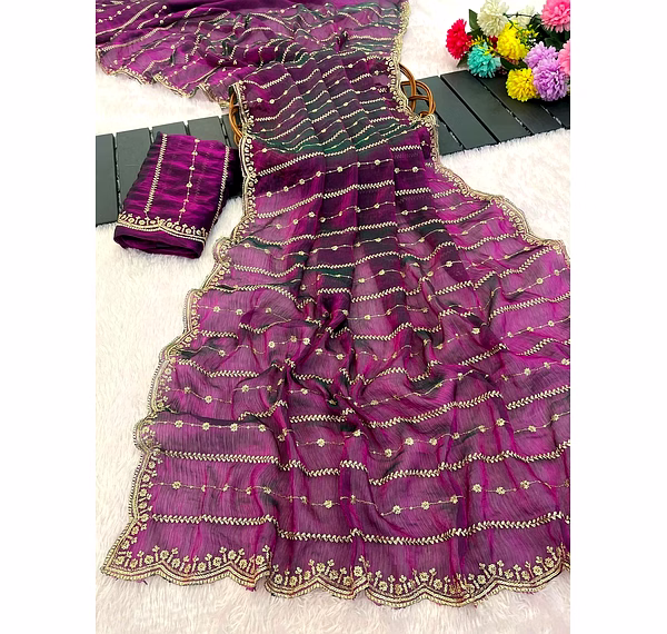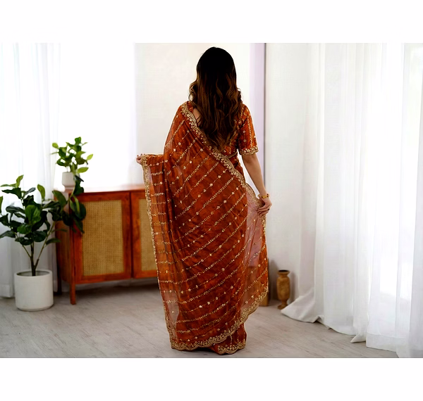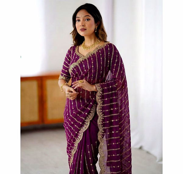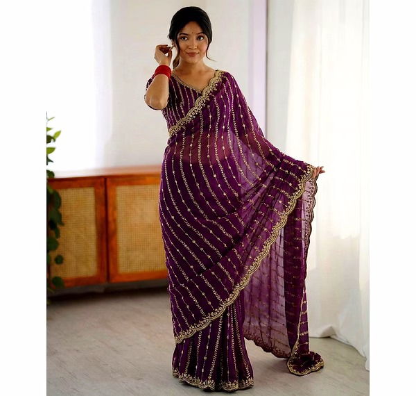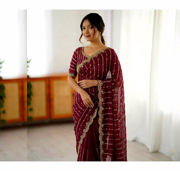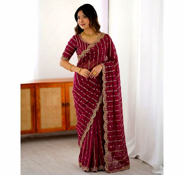 Indulge in the sheer beauty of our fancy saree, meticulously crafted with intricate detailing and premium fabric. Make a statement at weddings and parties with its exquisite design.