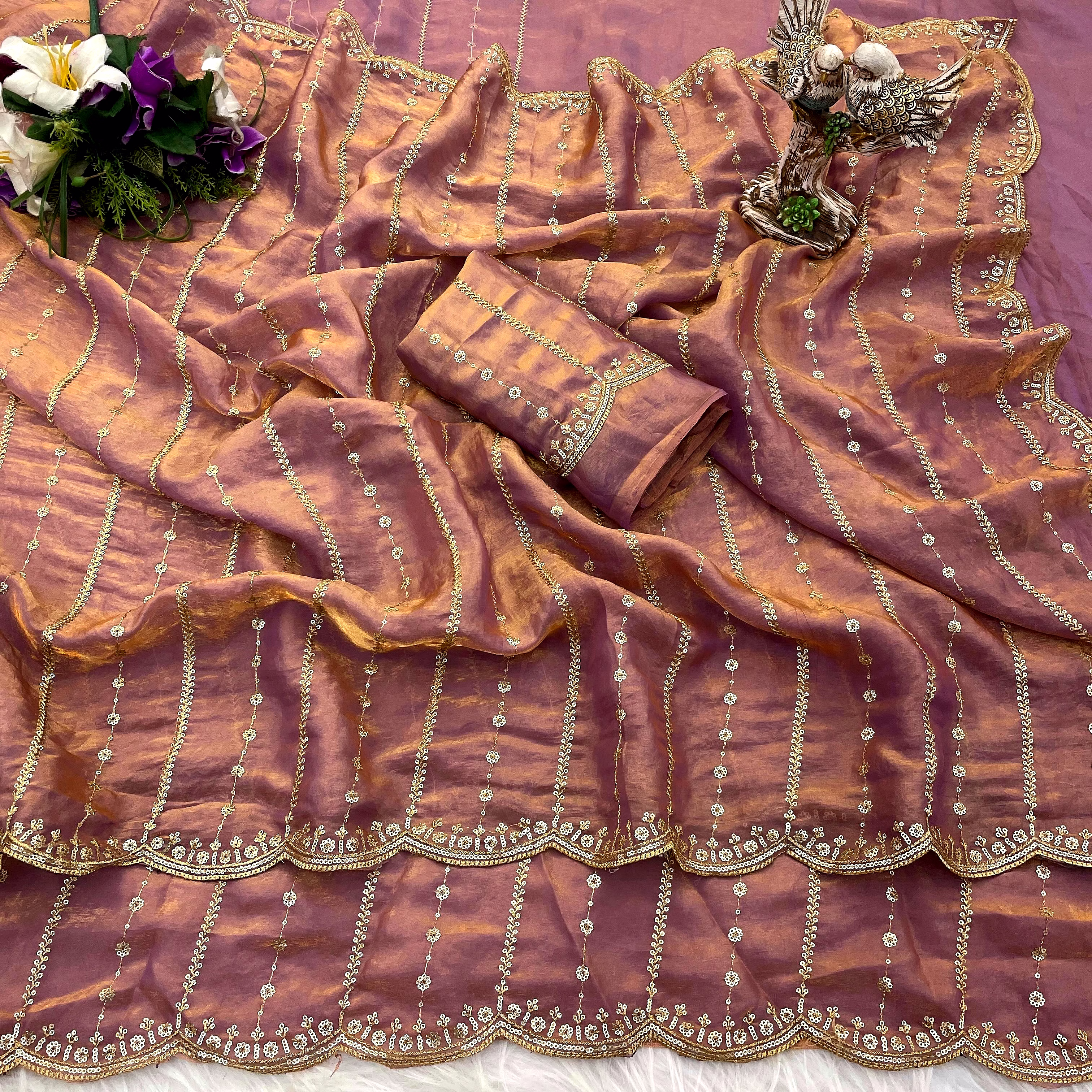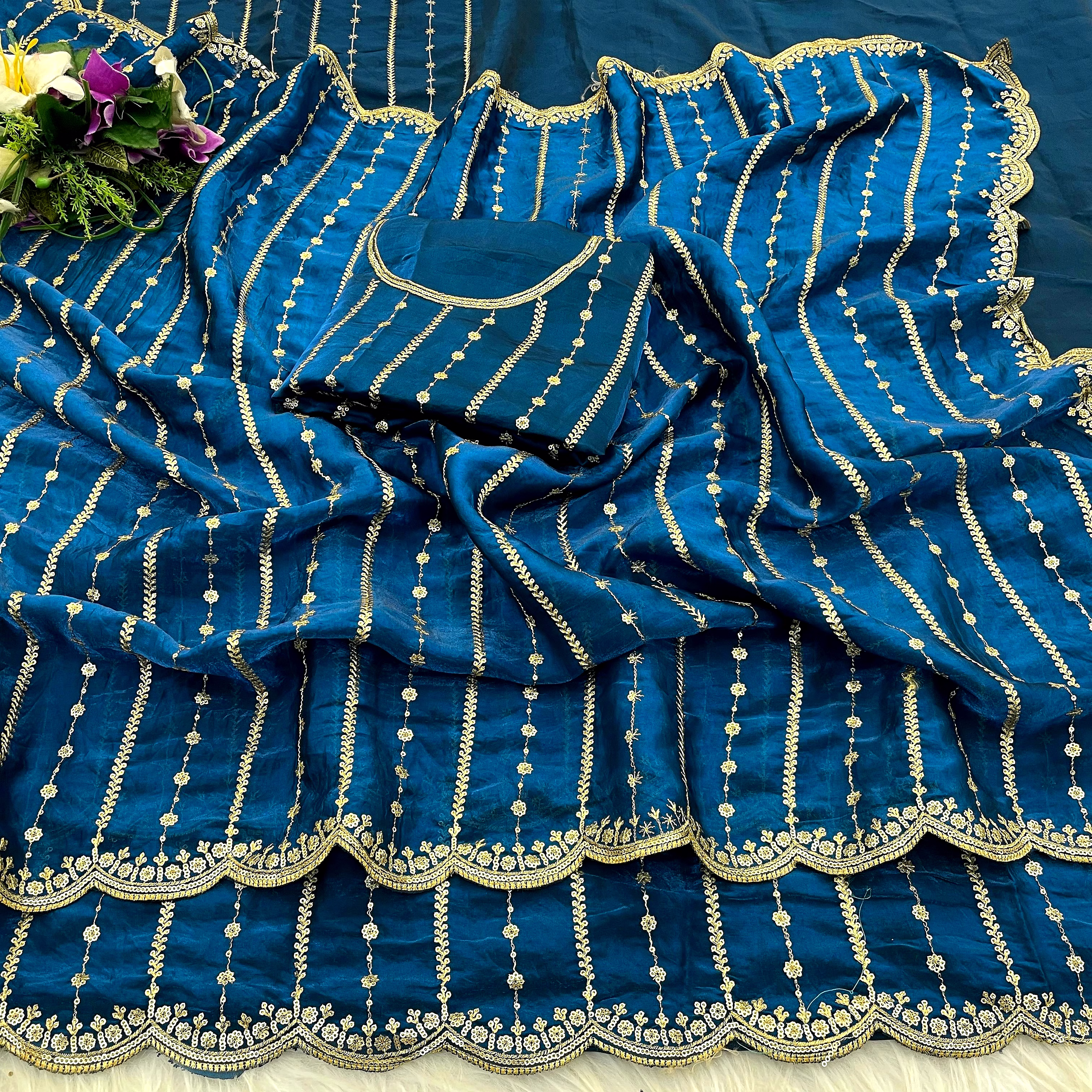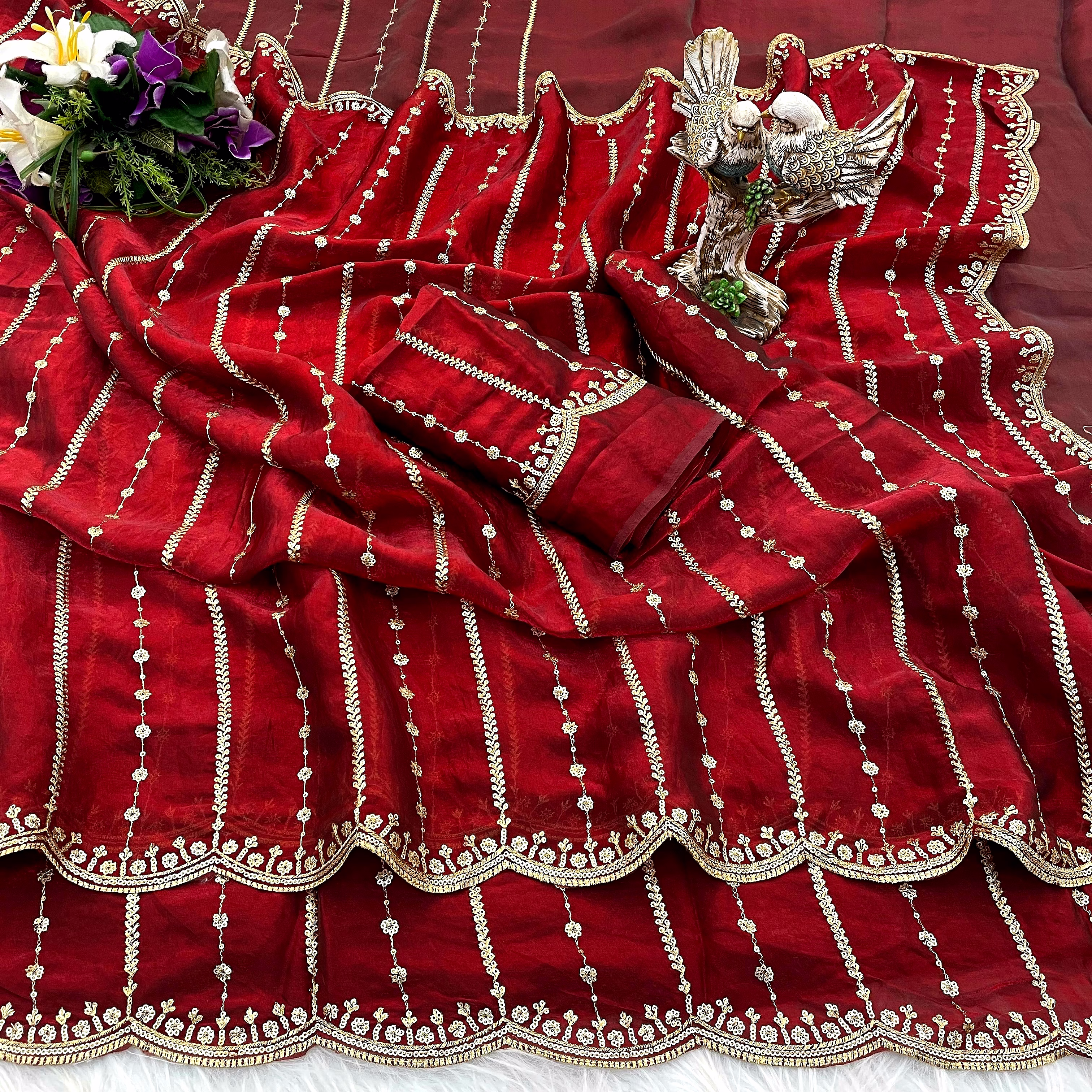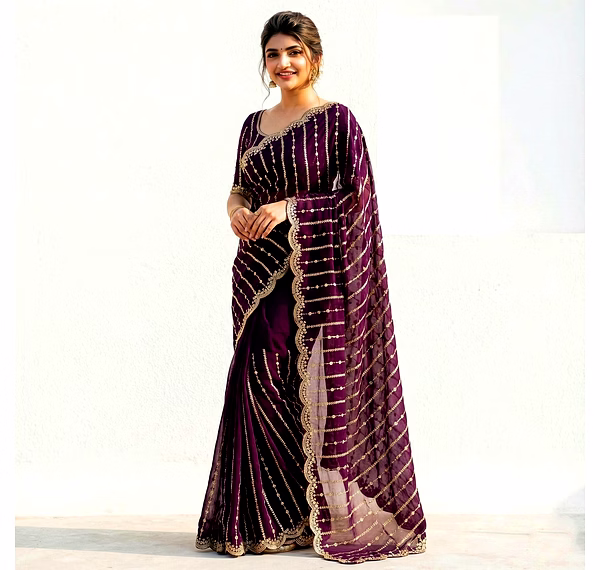 Step into the spotlight with our Fancy Saree, a symbol of grace and sophistication. Crafted with intricate details and luxurious fabric, this saree exudes charm and allure, making it a perfect choice for weddings, parties, or any special event.