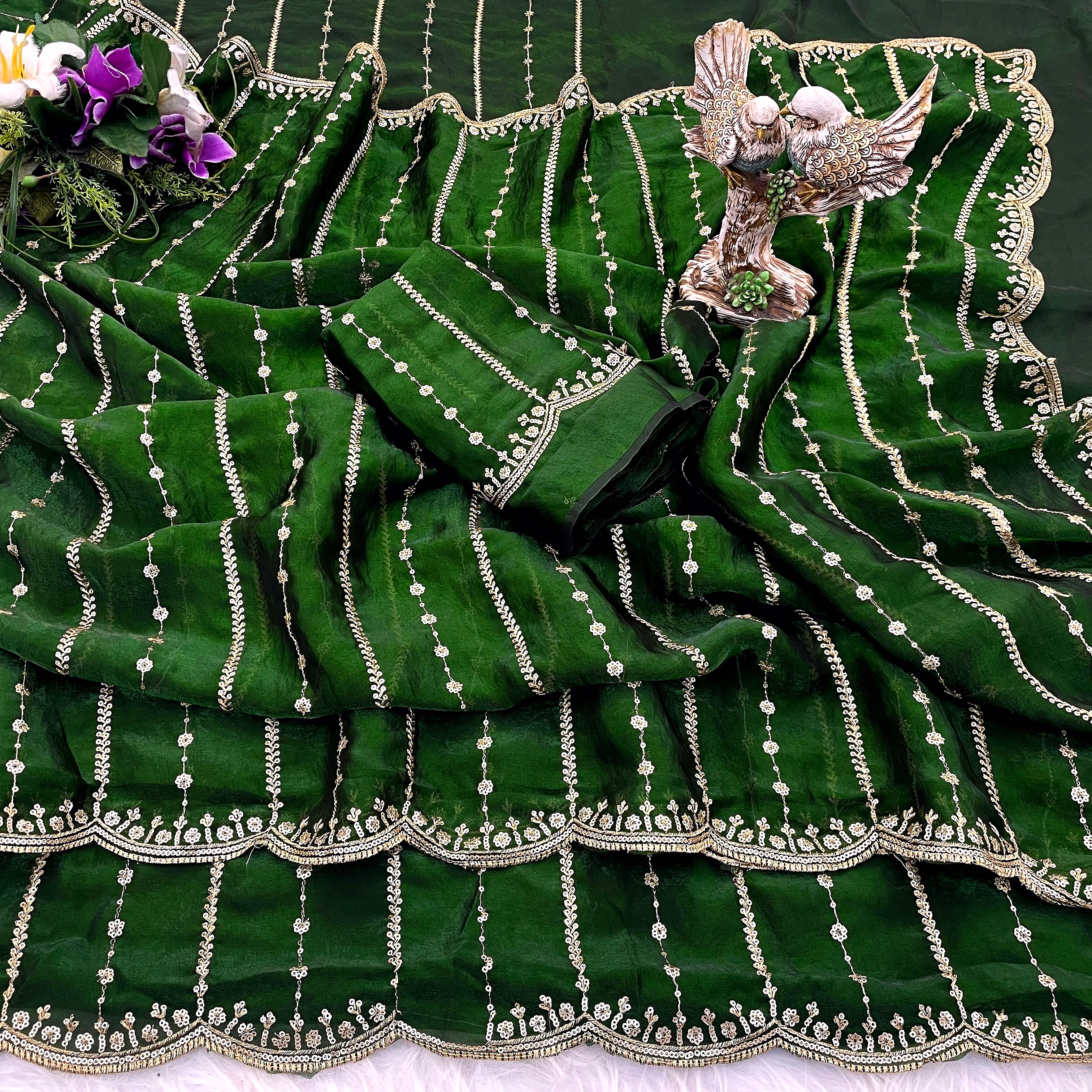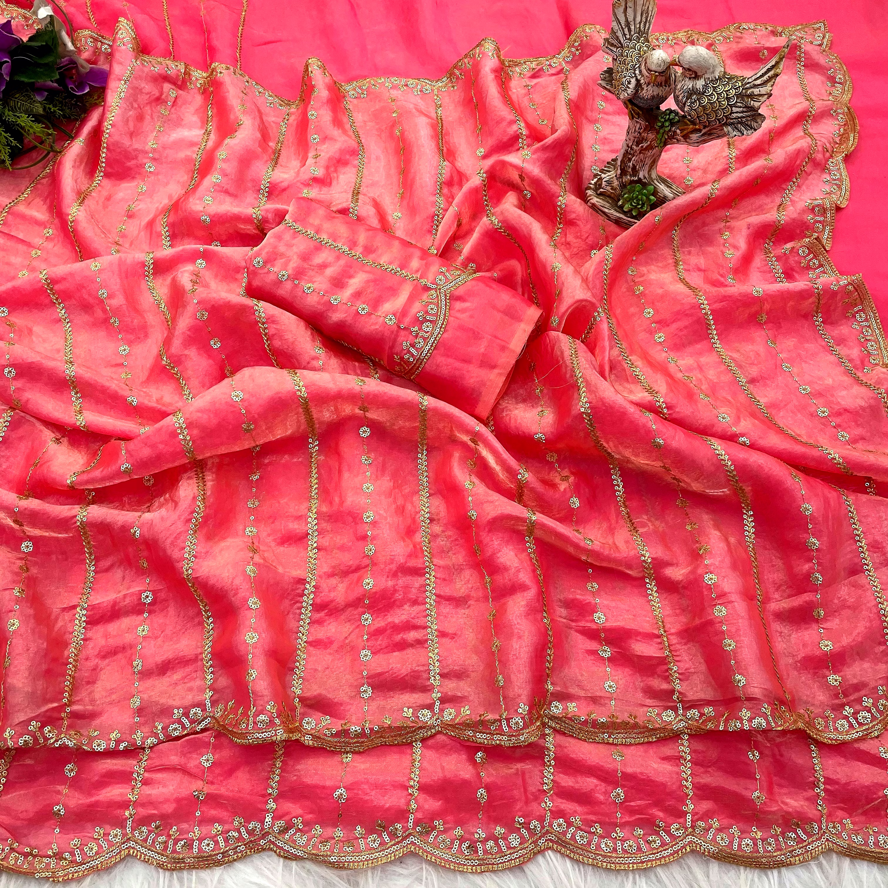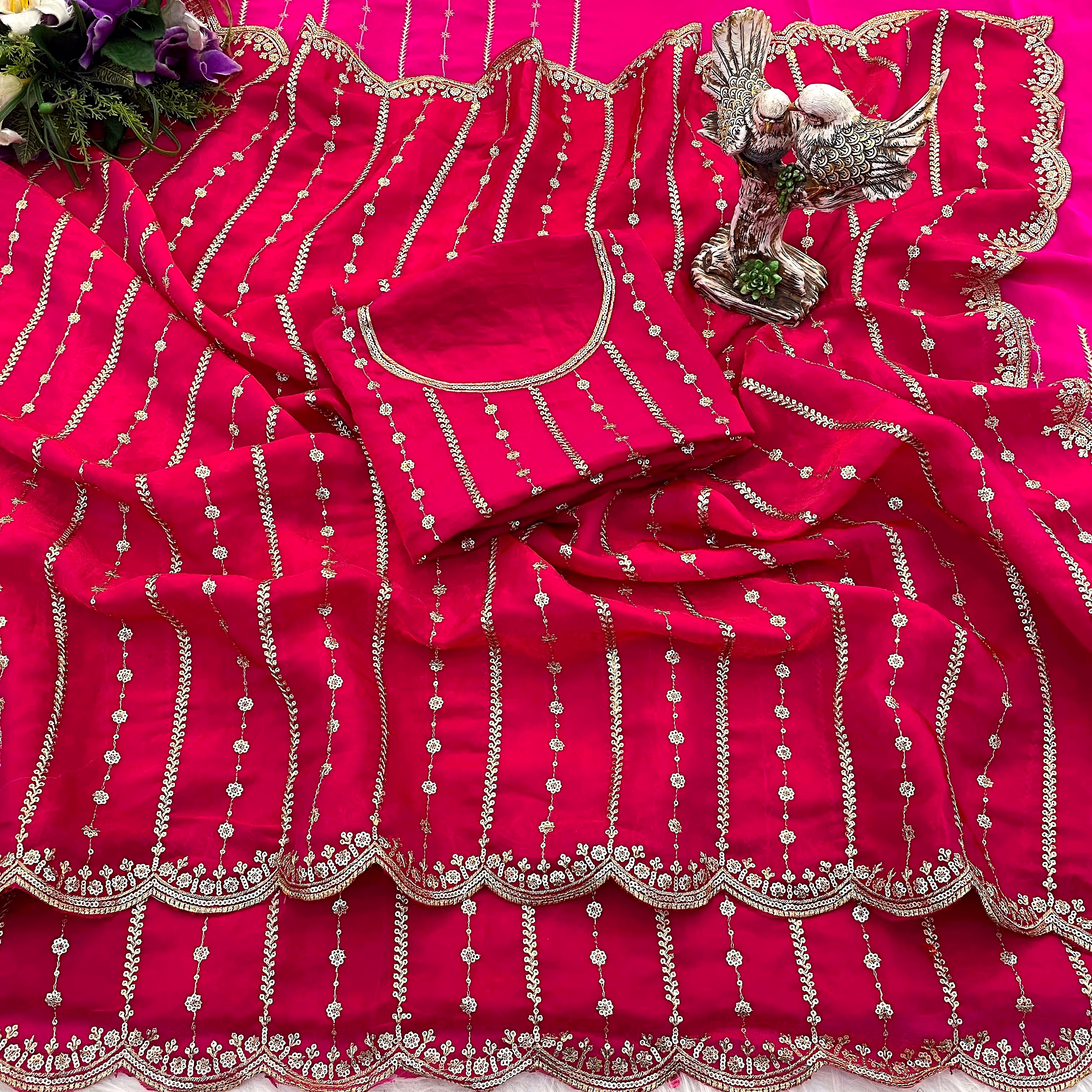 Step into the spotlight with our Fancy Saree, a symbol of grace and sophistication. Crafted with intricate details and luxurious fabric, this saree exudes charm and allure, making it a perfect choice for weddings, parties, or any special event.