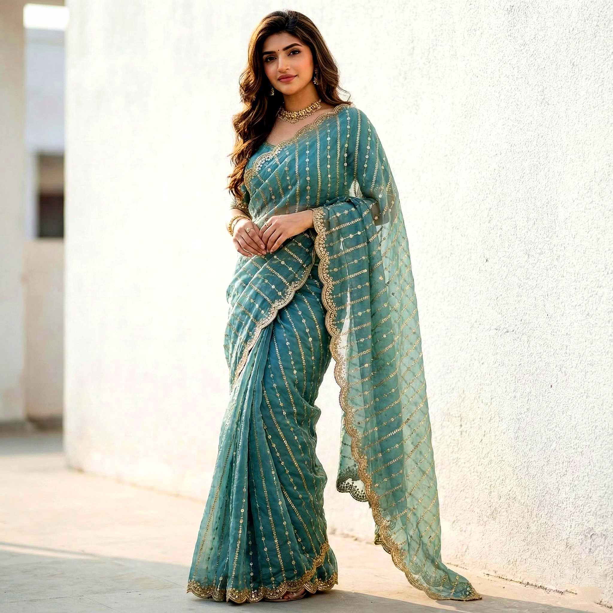 Draped in our Fancy Saree, you'll make a lasting impression with every stride. The exquisite patterns and vibrant colors ensure you radiate confidence and charm wherever you go. Embrace the tradition with a modern twist and make heads turn with your impeccable style.
