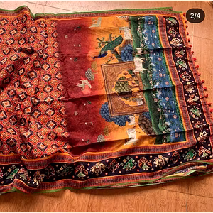 Introducing the Fancy Tasseled Linen Saree with Kalamkari Print - the perfect blend of traditional elegance and modern style. Crafted with the finest quality linen fabric, this saree is both lightweight and breathable, making it comfortable for all-day wear. The saree features a stunning Kalamkari print that is sure to turn heads. The intricate designs and vibrant colors create a unique and eye-catching look that is both classic and contemporary. The tassels add a touch of fun and playfulness to the overall design, making it perfect for any occasion. One of the most appealing features of this saree is its versatility. Dress it up with some statement jewelry and heels for a formal event, or dress it down with minimal accessories and sandals for a casual day out. The possibilities are endless with this timeless piece. Not only is this saree fashionable, but it is also practical. The linen fabric is easy to maintain and does not easily wrinkle, making it a great option for those who are always on the go. Plus, it is available in a range of sizes to ensure the perfect fit for every body shape. In summary, the Fancy Tasseled Linen Saree with Kalamkari Print is a must-have for anyone who wants to elevate their wardrobe with a versatile and stylish piece. Its unique features, practicality, and timeless design make it a great investment that you'll cherish for years to come.