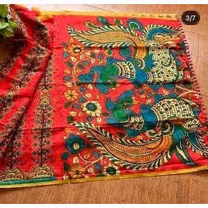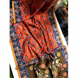 Introducing our Fancy Tasseled Linen Saree with Kalamkari Print - a stunning piece that is sure to make heads turn. Crafted from high-quality linen, this saree boasts a unique Kalamkari print that blends traditional and contemporary styles seamlessly. The intricate detailing and bold colors of the print are sure to catch the eye of anyone in the room. The saree also features delicate tassels along the border that add a touch of elegance and sophistication to the overall look. The lightweight and breathable fabric make it perfect for any occasion, from formal events to casual outings. But the beauty of this saree isn't just skin deep - its benefits go far beyond its appearance. The high-quality linen fabric ensures durability and longevity, making it a worthwhile investment for years to come. The tassels are carefully crafted to prevent fraying, ensuring that this saree will maintain its stunning appearance for a long time. What truly sets this saree apart from the rest is its versatility. Whether paired with traditional jewelry or modern accessories, this saree can be styled in countless ways to suit any occasion and any personal style. In summary, our Fancy Tasseled Linen Saree with Kalamkari Print is a true masterpiece. With its impeccable craftsmanship, stunning design, and unmatched versatility, it is a must-have for any saree lover.