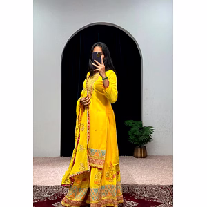 Introducing our stunning Faux Georgette Embroidered Gown, a masterpiece in fashion that is sure to turn heads. Crafted with the finest cotton thread work, this gown boasts full embroidery that showcases intricate details and designs. The Micron inner fabric ensures a comfortable fit that feels as good as it looks. The gown's flair measures an impressive 4 meters, making it the perfect choice for women who love to make a statement. Our gown is available in XL with XXL margin, accommodating a wide range of body types. The gown's height measures 52 inches, and the sleeve length is 18 inches, offering a perfect fit for a variety of occasions. To complete the look, the Dupatta is made with high-quality Georgette fabric, and measures 2.25 meters in length. The fancy lace border adds an additional touch of elegance to the overall outfit. Our waist belt is also included to accentuate your curves and enhance your silhouette. This gown is perfect for formal events, and its unique design is sure to make you stand out in any crowd. Don't miss out on the opportunity to add this amazing piece to your wardrobe. Order now and experience the luxury of our Faux Georgette Embroidered Gown.