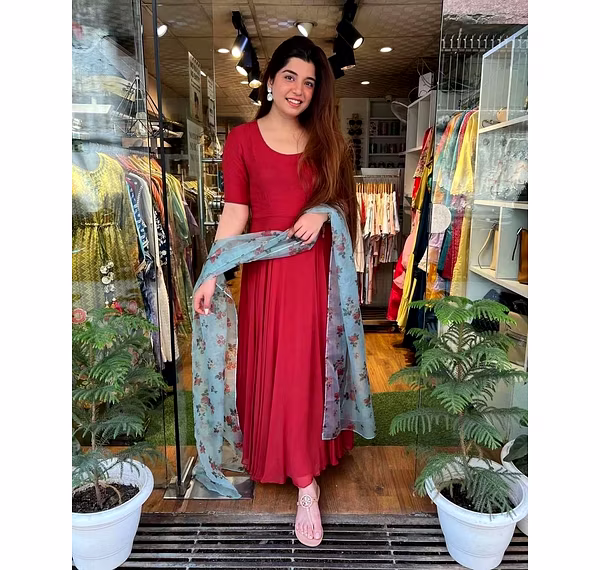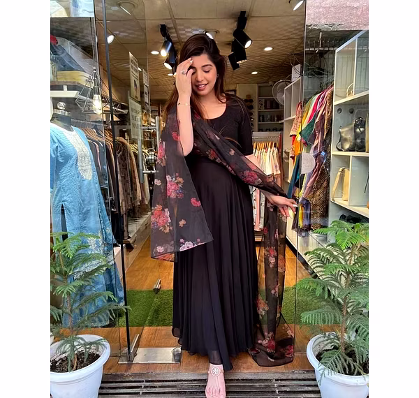 Introducing our stunning Faux Georgette Gown, the perfect addition to your wardrobe for any special occasion. This gown is designed to make you feel confident and elegant, with its full sleeve and exquisite fabric detail. The gown is made from high-quality Faux Georgette material and comes in a beautifully stitched design, making it both comfortable and stylish. The Micro Cotton inner lining adds an extra layer of comfort, ensuring that you feel at ease throughout the day or night. The gown is available in a free size and is fully stitched, so you can be assured of a perfect fit. With a gown length of 55-56 inches and a 4-meter flair, this gown is sure to make you stand out from the crowd. To complete the look, the gown comes with a Garget dupatta with a length of 2.10 meters, adding an extra touch of elegance to your outfit. Whether it's for a wedding, party, or any other special occasion, our Faux Georgette Gown is the perfect choice. So why wait? Order now and add some glam to your wardrobe with our Faux Georgette Gown. With its exceptional quality, design, and comfort, this gown is sure to leave a lasting impression.