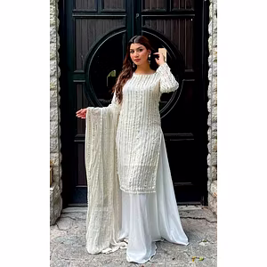 Faux Georgette Suit with Thred & Sequnce Inner is a stunning attire that exudes elegance and sophistication. Crafted meticulously with attention to detail, this suit is perfect for any special occasion. The inner lining is adorned with intricate thread and sequence work, adding a touch of sparkle and glamour. Available in three different sizes, M(38), L(40), and XL(42), this suit ensures a comfortable and flattering fit for every body type. The lightweight fabric of the suit weighs just 0.900 grams, making it easy to wear and move around in. The Crep Plain Pent that comes with this suit is both stylish and versatile. With its free size and elastic waistband, it can be effortlessly adjusted to fit various waist sizes. The soft net dupatta with thred and sequence work complements the suit perfectly, adding a graceful and ethereal touch to the overall ensemble. The dupatta is generously sized at 2.2 meters, allowing for beautiful draping and styling options. This Faux Georgette Suit with Thred & Sequnce Inner is a testament to exquisite craftsmanship and timeless design. Its intricate details, high-quality fabric, and impeccable stitching make it a wardrobe staple for those who appreciate fine fashion. Whether it's a wedding, a festive celebration, or a formal event, this suit is sure to make a lasting impression. Indulge in the opulence and grace of this ensemble, and let it enhance your beauty and confidence. With its classic appeal and contemporary charm, this Faux Georgette Suit with Thred & Sequnce Inner is a must-have for every fashion-forward individual. Step into the world of luxury and style with this exquisite suit.