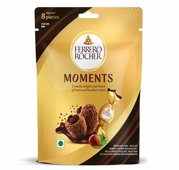 Indulge in the exquisite taste of Ferrero Rocher with Ferrero Rocher Moments T-8. Each bite-sized piece is a delicious blend of chocolate, wafer, and hazelnut, making it a perfect treat for any occasion.