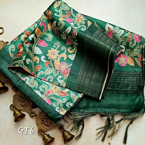 🌿Fine Quality Of Pure Tussar Ghicha Beautiful Madhubani Printed Silk Saree.