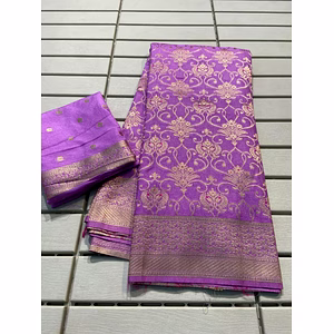 Introducing our Pure Soft Russian Silk Saree, a true embodiment of elegance and craftsmanship. This exquisite saree is meticulously handwoven with the finest Zari and Meenakari weaving, creating a stunning display of artistry and luxury. The highlight of this saree is its Pallu, which features intricate Meenakari and Zari weaving, adding a touch of opulence to the overall design. The full saree is adorned with delicate Zari and Meenakari woven patterns, showcasing the mastery of our skilled artisans. With a Zari and Meenakari woven border and running Butti weaving throughout, this saree exudes a timeless charm that will captivate all who lay eyes on it. The intricate craftsmanship and attention to detail make this saree a true work of art, perfect for any special occasion or celebration. Crafted from the finest, soft Russian silk, this saree not only looks exquisite but also feels incredibly luxurious against the skin. The lightweight and breathable fabric ensure maximum comfort, allowing you to move with grace and ease. The Pure Soft Russian Silk Saree is a unique creation that effortlessly blends traditional artistry with modern sensibilities. Its timeless design and impeccable quality make it a valuable addition to any wardrobe. Capture attention and make a lasting impression with this extraordinary saree. Elevate your style and embrace the beauty of Indian craftsmanship with our Pure Soft Russian Silk Saree, a true masterpiece that celebrates tradition and art in every thread.
