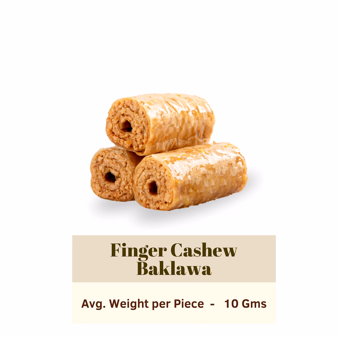 A Mediterranean sweet consisting of delicate, flaky phyllo dough rolled into finger shapes and filled with chopped or crushed cashews. Baked until golden, it is then drenched in a sweet syrup, creating a crisp pastry with a rich, nutty interior