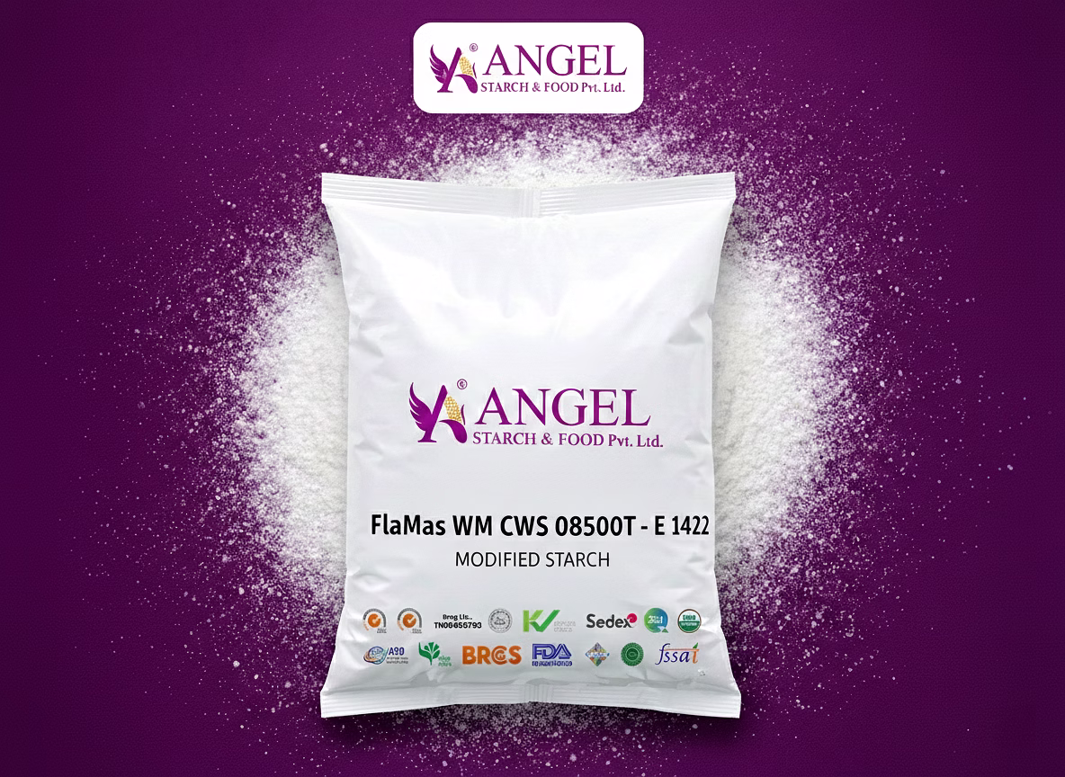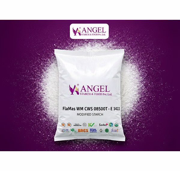 FlaMas WM CWS 08500T is a corn-based pregelatinized Acetylated Distarch Adipate (E1422) designed for cold water applications. It is a vegan, plant-based, gluten-free and Non-GMO modified starch that dissolves easily in cold water and provides excellent thickening, binding, emulsifying and stabilizing properties. The product exhibits strong resistance to heat, shear, acids, sugar and salt, making it suitable for high process conditions including retort and industrial food processing. It delivers smooth viscosity, glossy appearance and improved mouthfeel in fruit sauces, ketchup, gravies, dairy products, yogurt, canned foods, bakery fillings, puddings and gluten-free formulations.