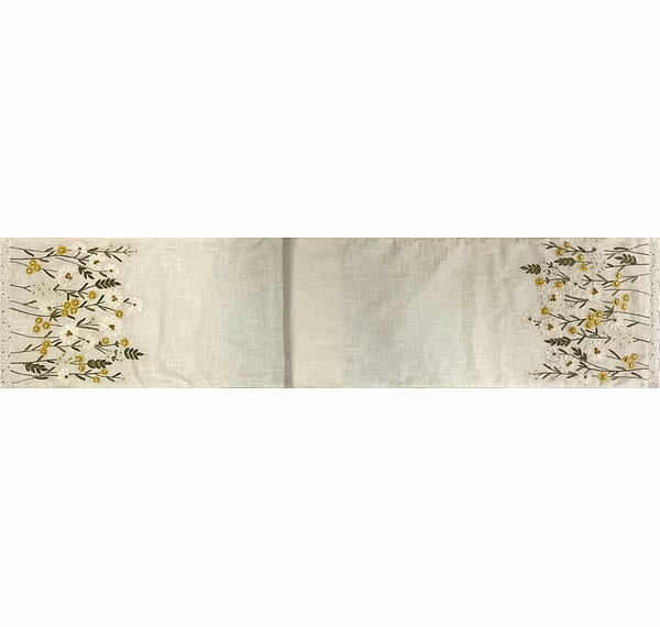 Elevate your dining experience with our Floral Elegance Cotton Slub Table Runner. Measuring 14x72 inches, this runner boasts a charming combination of print and embroidery techniques with delicate French knots. The front is made of high-quality Cotton Slub, while the Texo backing adds durability. Perfect for adding a touch of springtime beauty to your table.