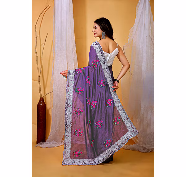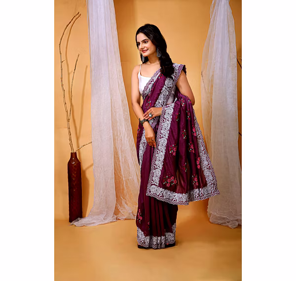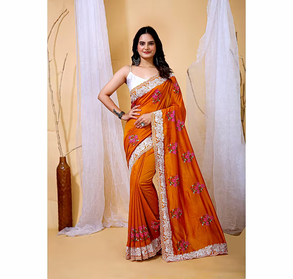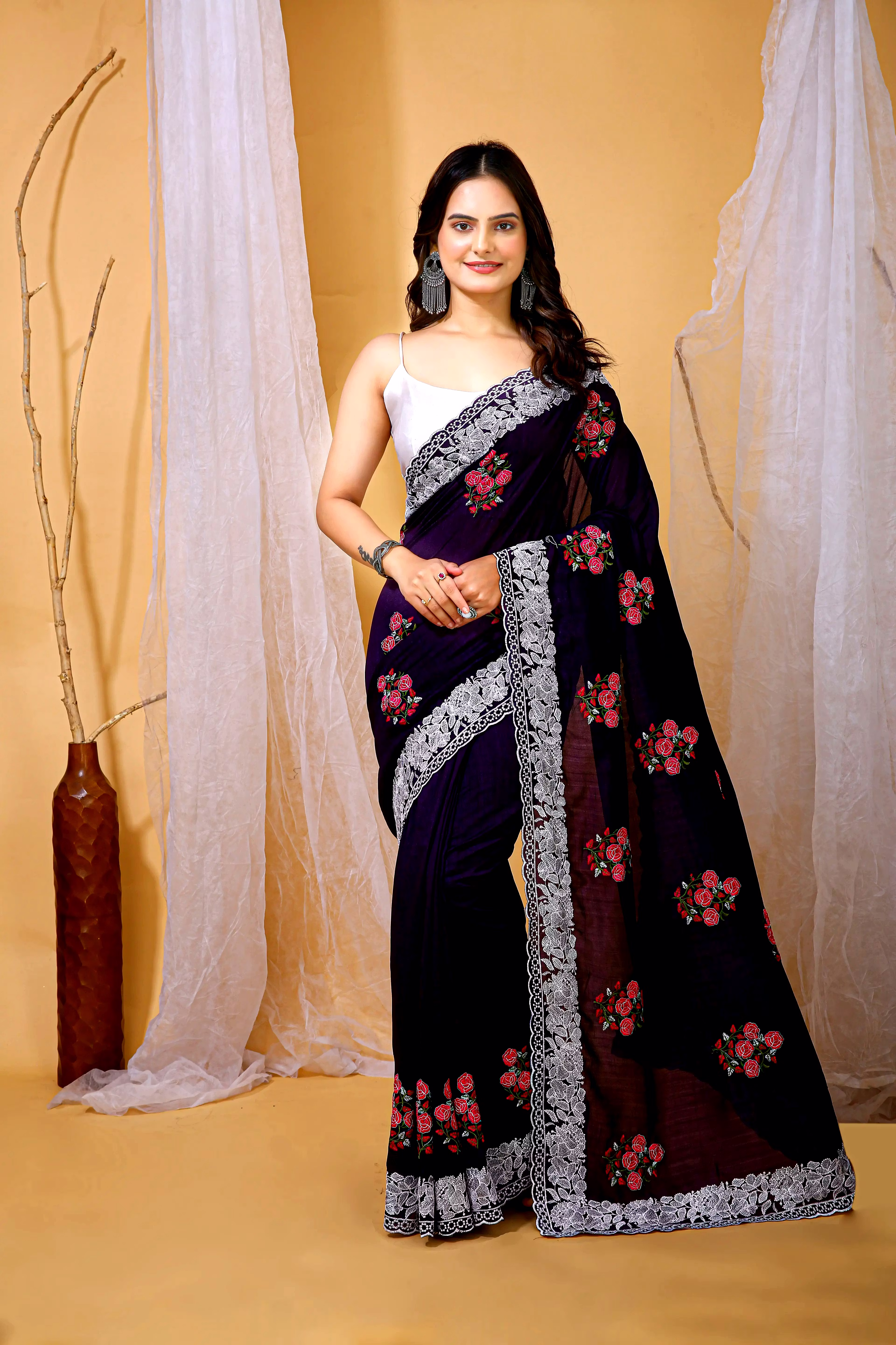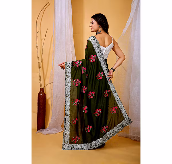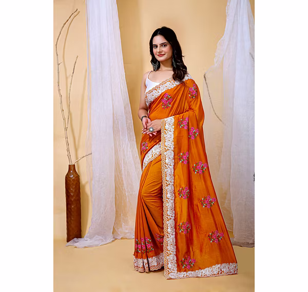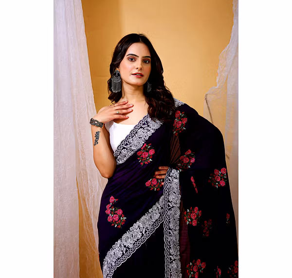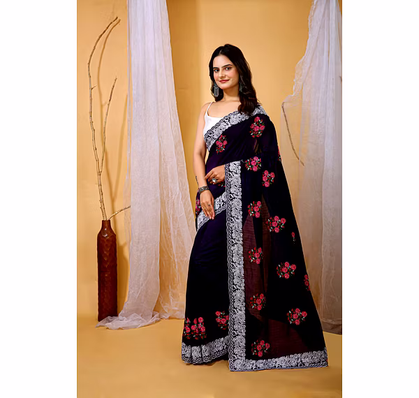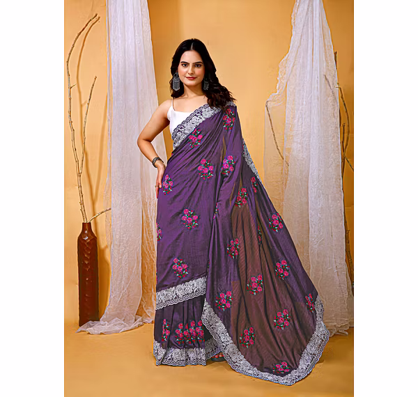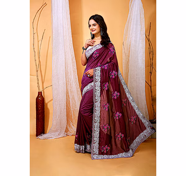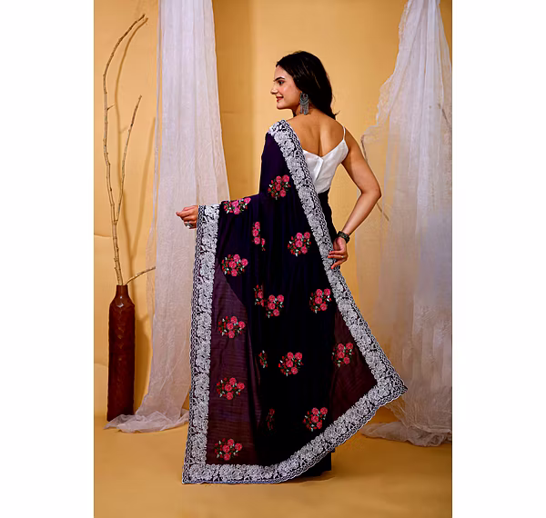 This saree is your perfect companion for any joyful gathering. The combination of the Vichitra Silk and the lively design makes it the quintessential festive saree for daytime events, sangeets, or even upscale family lunches. Unlike heavily embroidered pieces, the floral print saree offers effortless glamour that is completely ready-to-wear and requires minimal styling effort. It is the ideal choice for those seeking party wear elegance that is both sophisticated and light. Invest in this piece for an outfit that guarantees you feel as radiant as you look at every occasion.