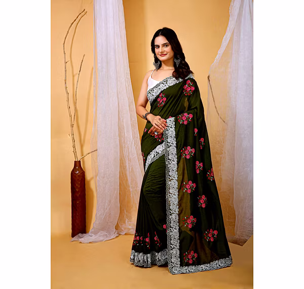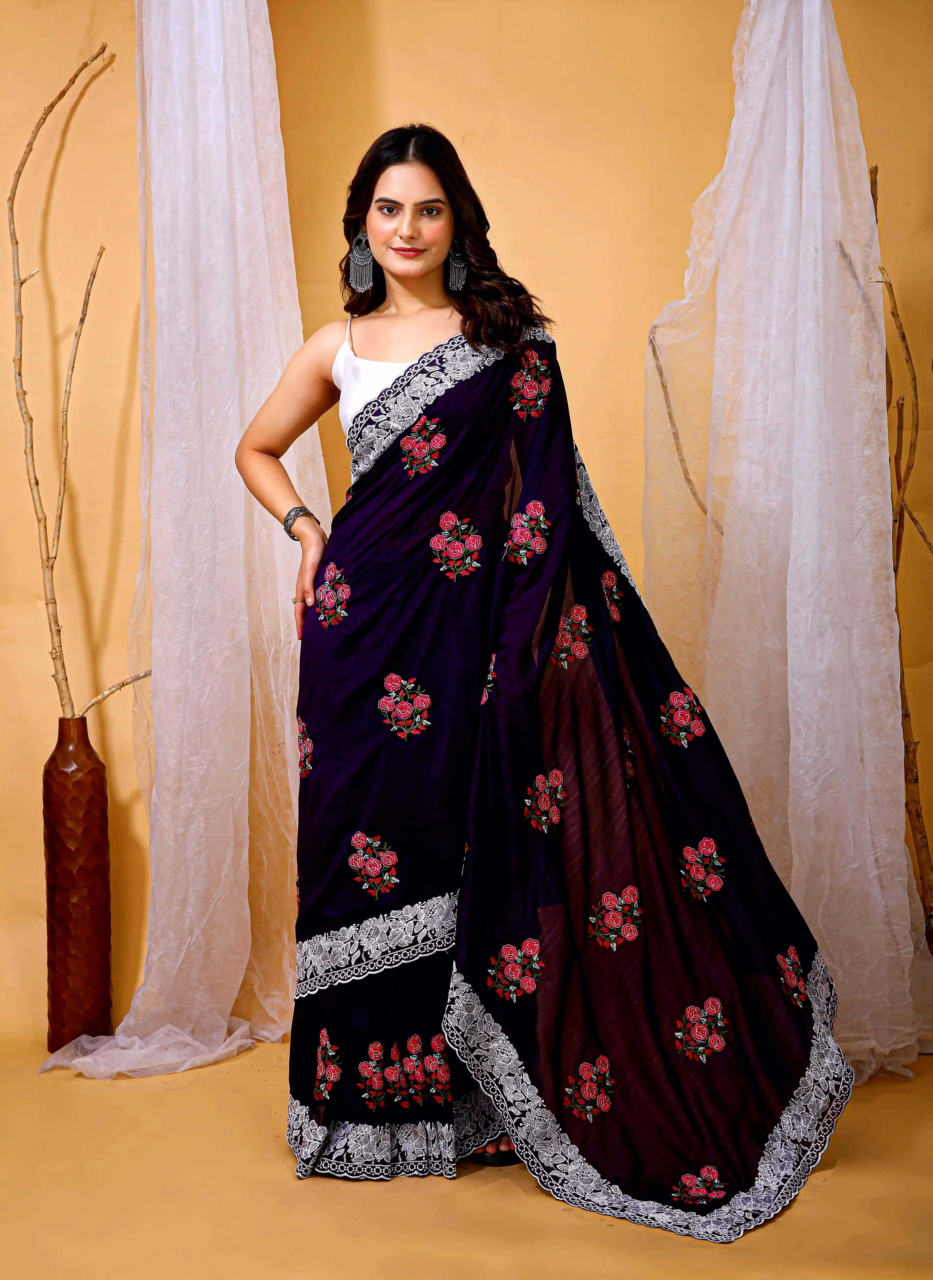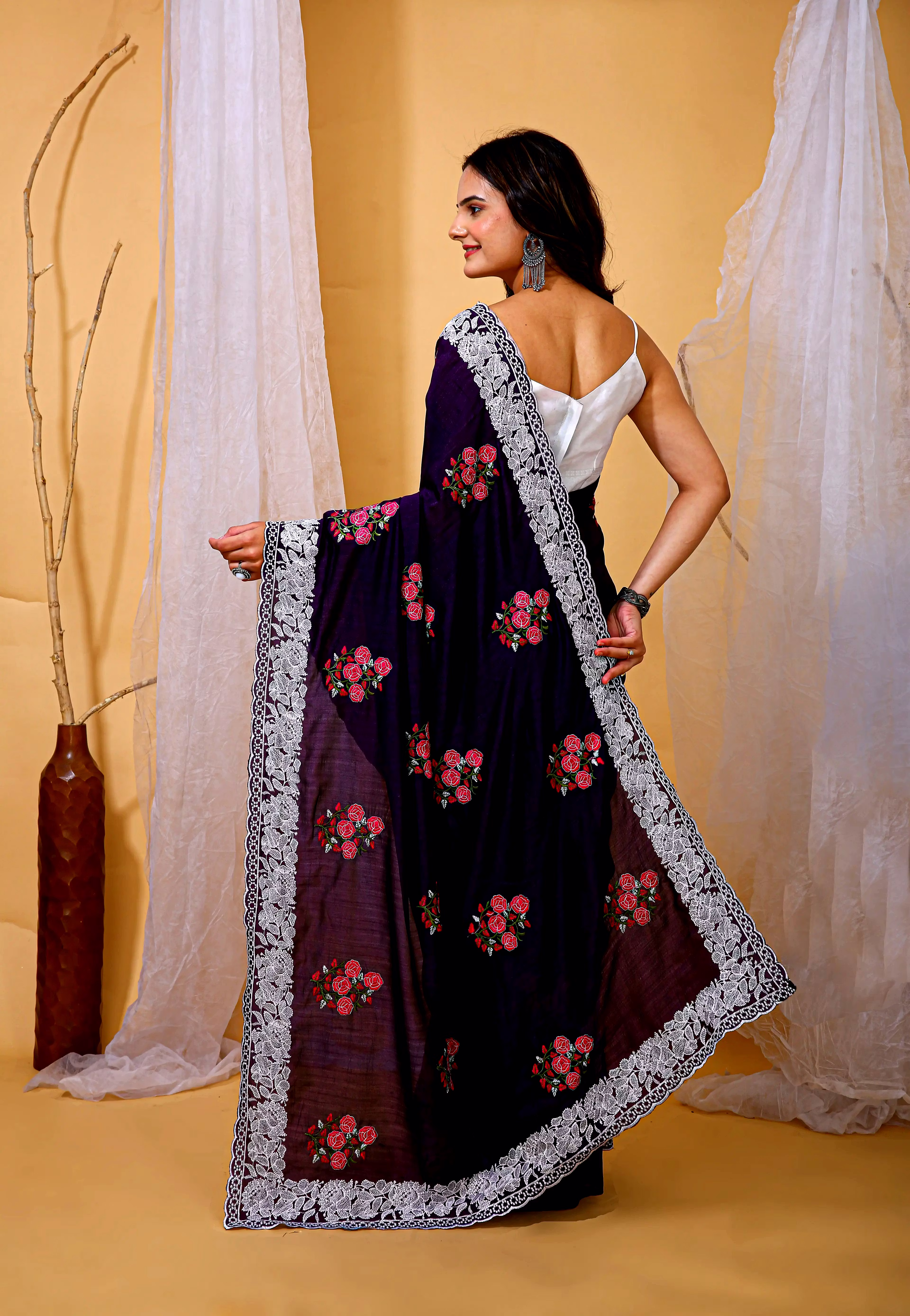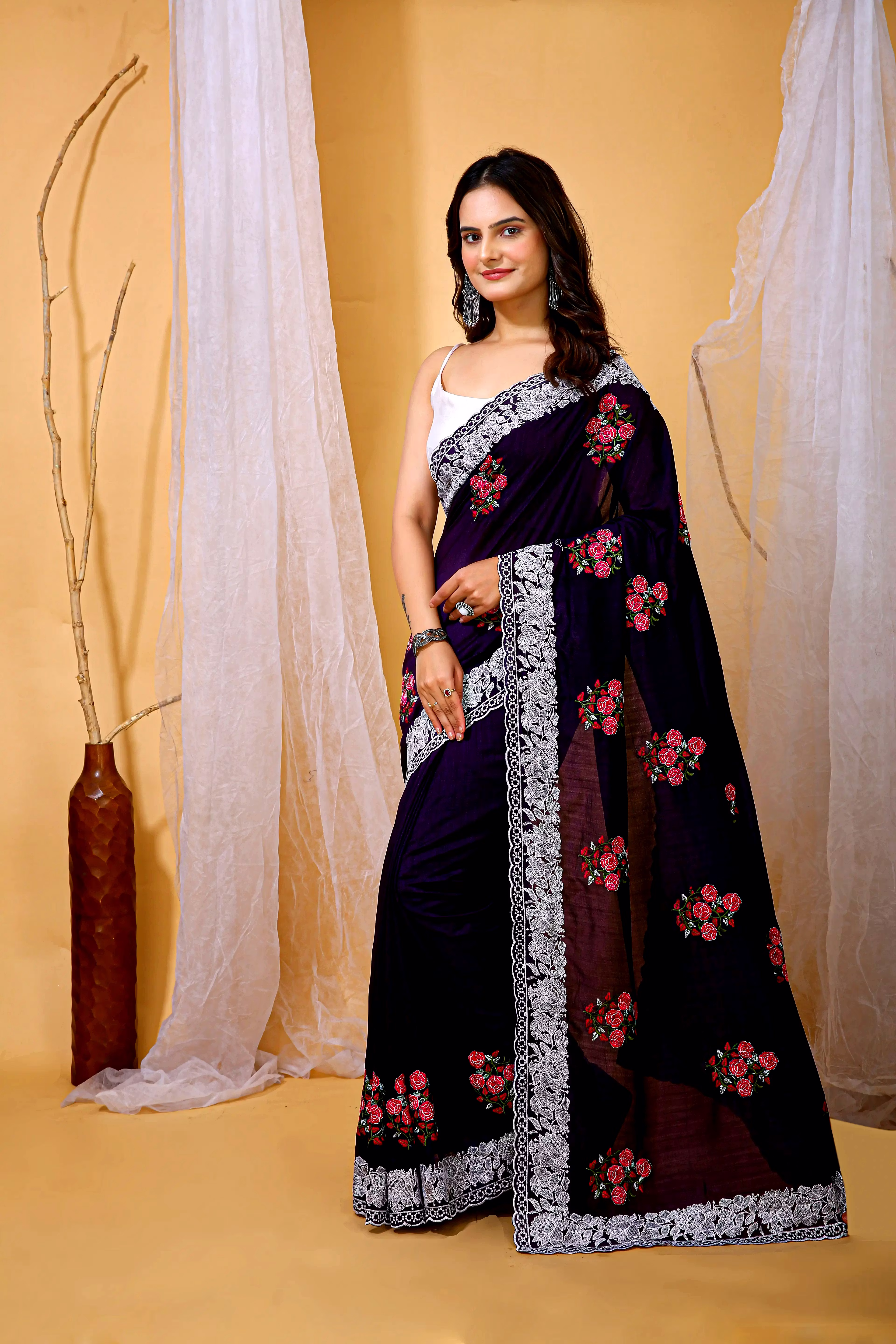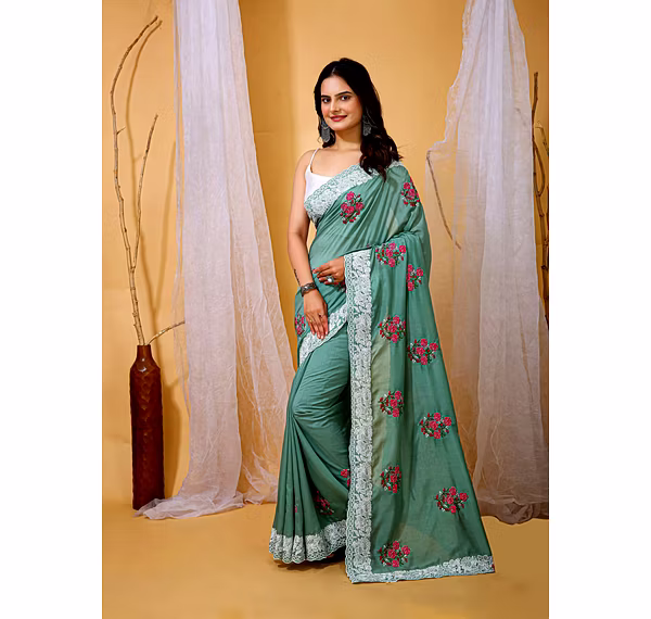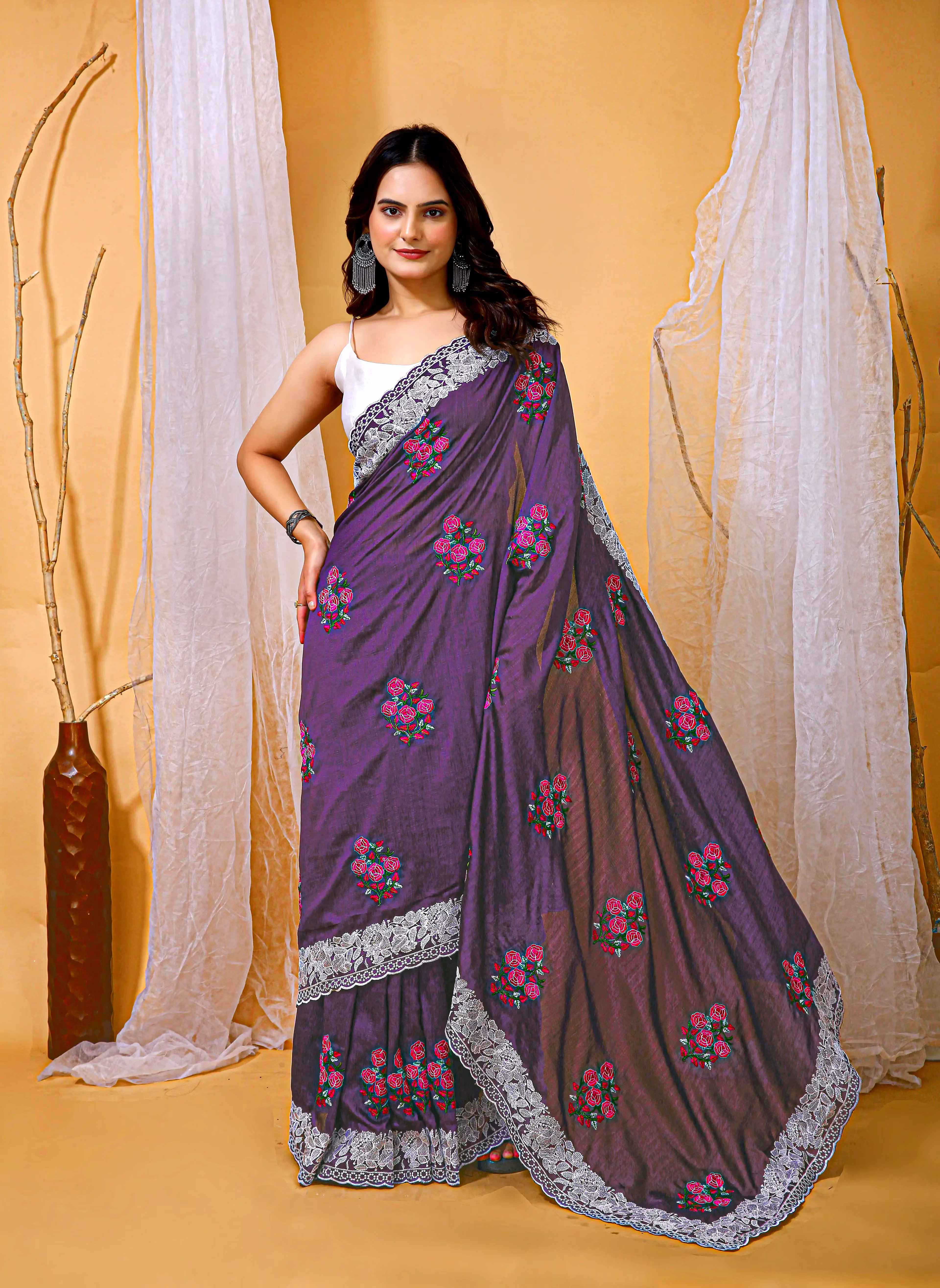 This saree is your perfect companion for any joyful gathering. The combination of the Vichitra Silk and the lively design makes it the quintessential festive saree for daytime events, sangeets, or even upscale family lunches. Unlike heavily embroidered pieces, the floral print saree offers effortless glamour that is completely ready-to-wear and requires minimal styling effort. It is the ideal choice for those seeking party wear elegance that is both sophisticated and light. Invest in this piece for an outfit that guarantees you feel as radiant as you look at every occasion.