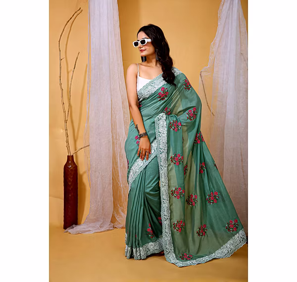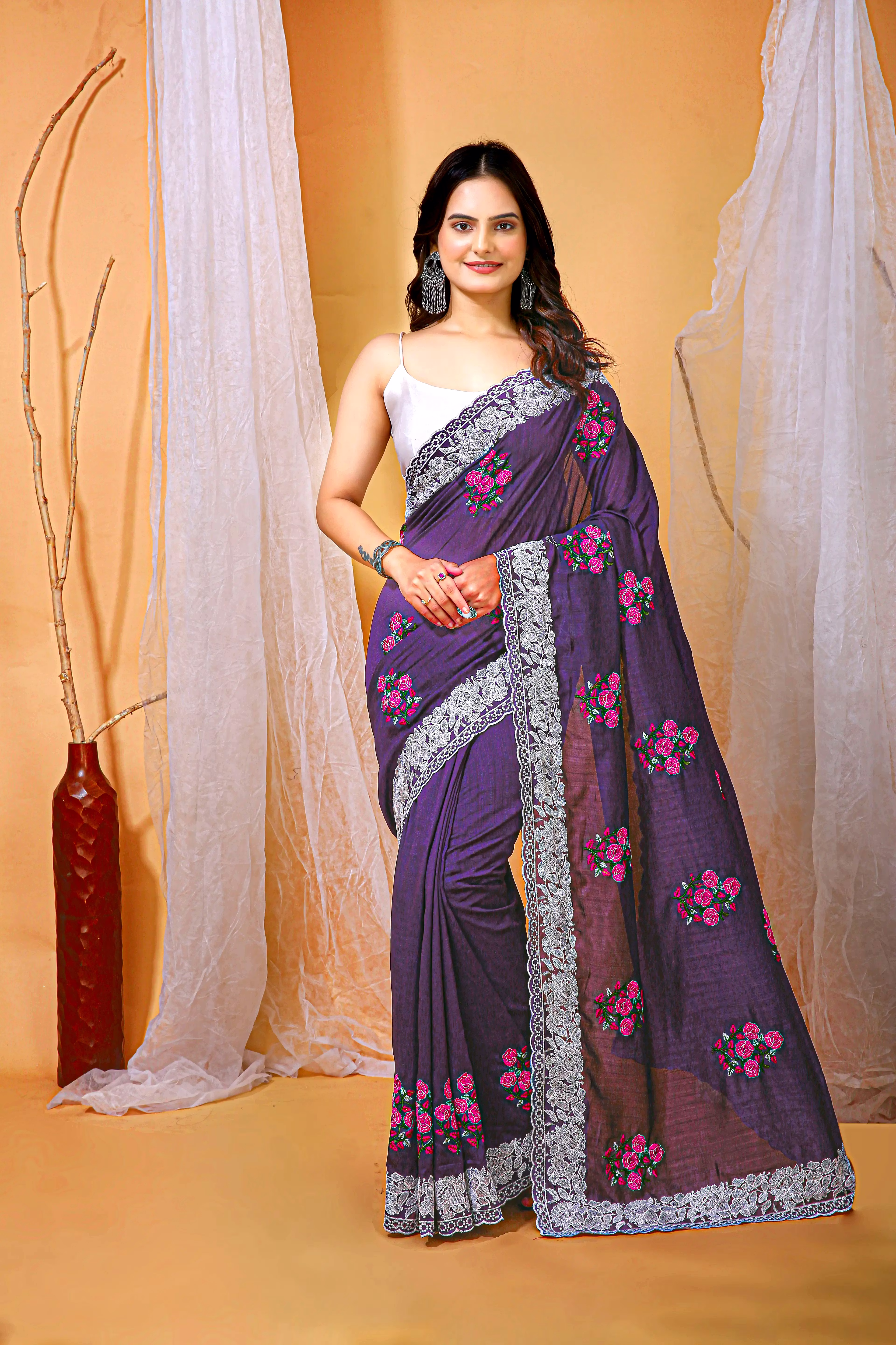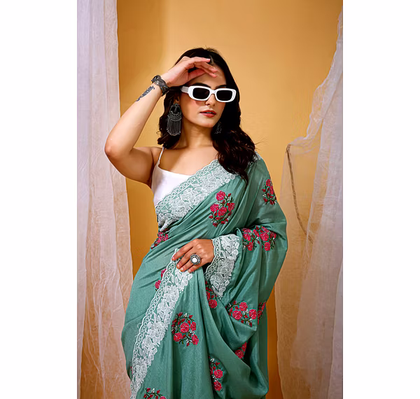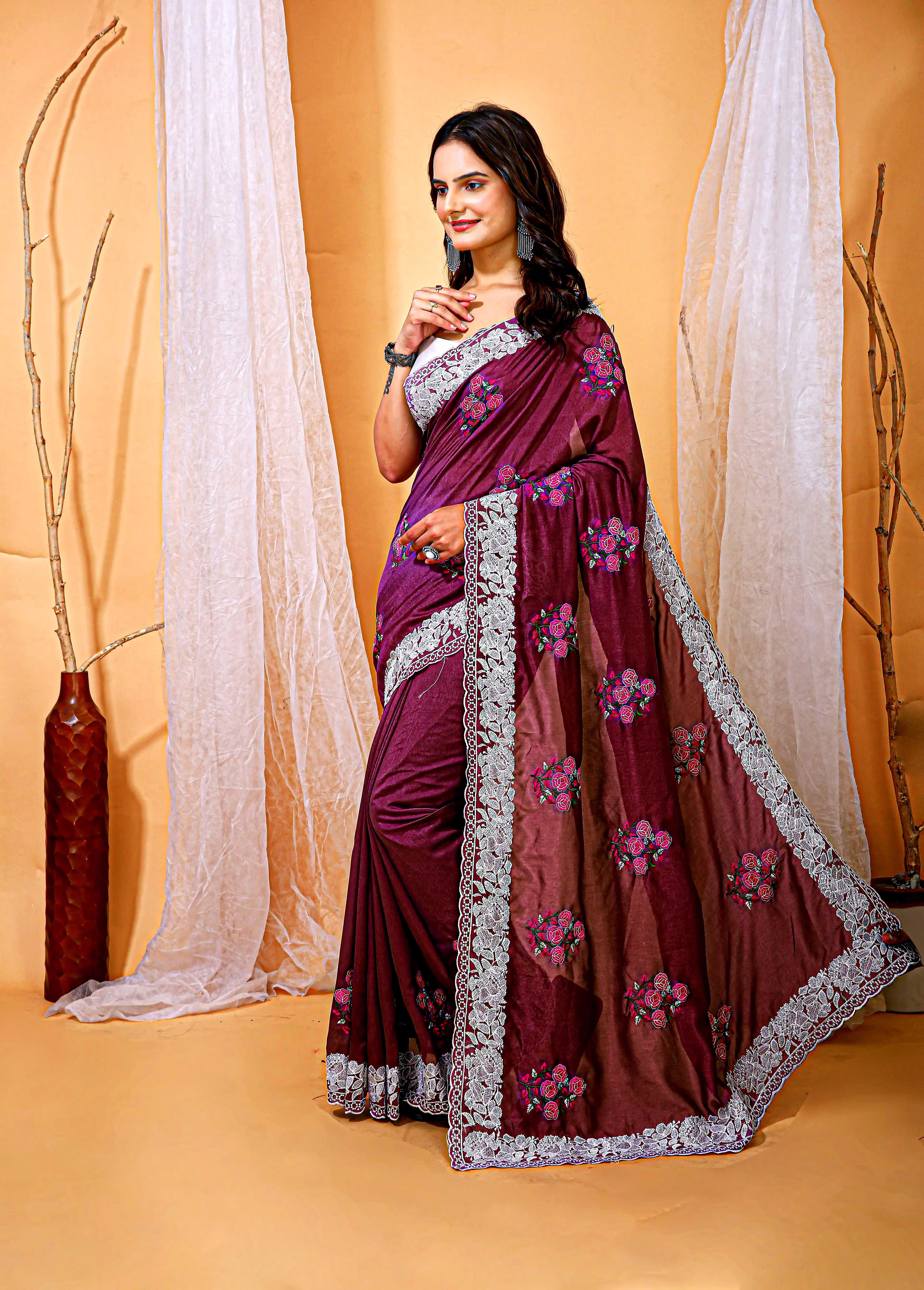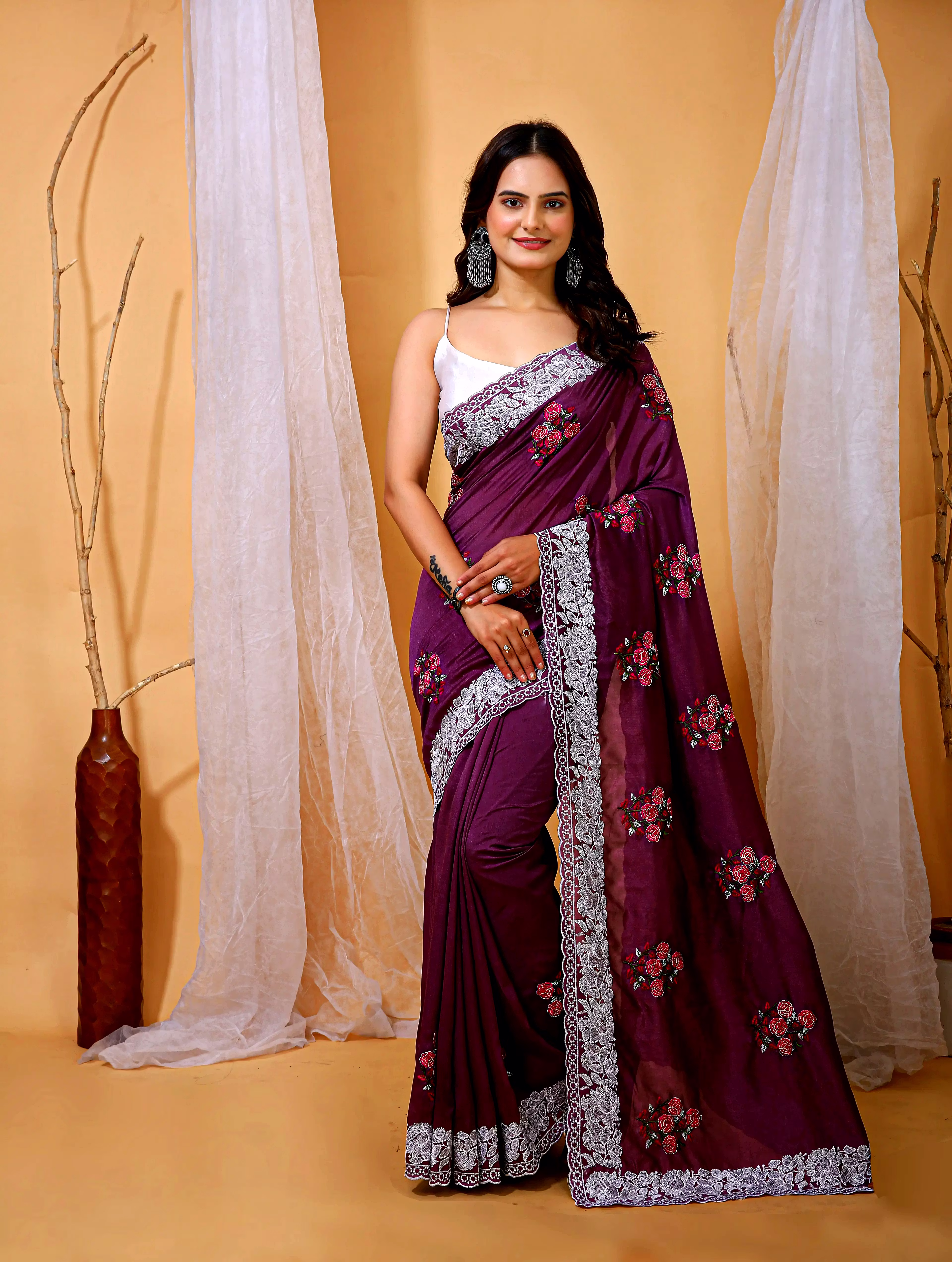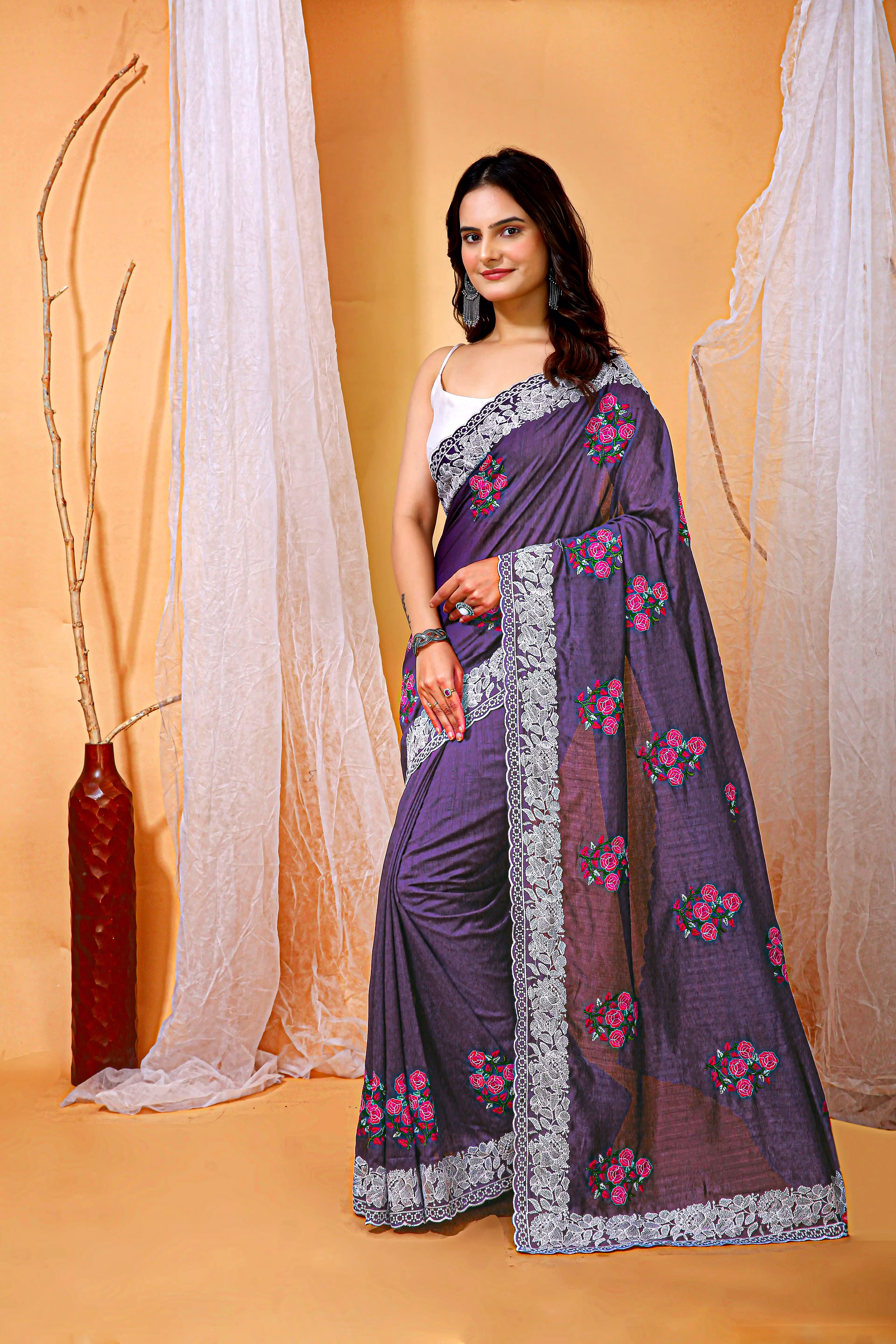 This saree is your perfect companion for any joyful gathering. The combination of the Vichitra Silk and the lively design makes it the quintessential festive saree for daytime events, sangeets, or even upscale family lunches. Unlike heavily embroidered pieces, the floral print saree offers effortless glamour that is completely ready-to-wear and requires minimal styling effort. It is the ideal choice for those seeking party wear elegance that is both sophisticated and light. Invest in this piece for an outfit that guarantees you feel as radiant as you look at every occasion.