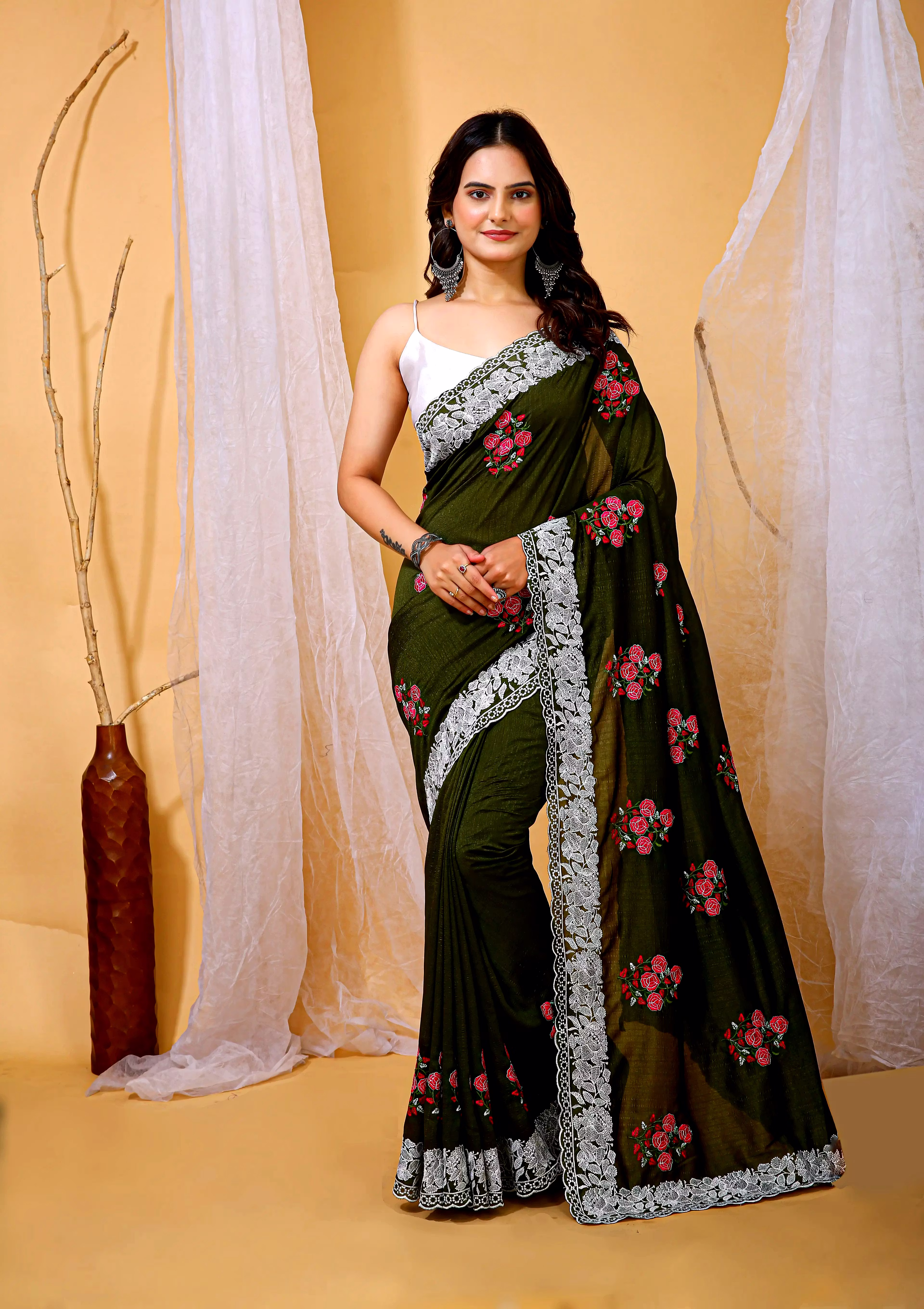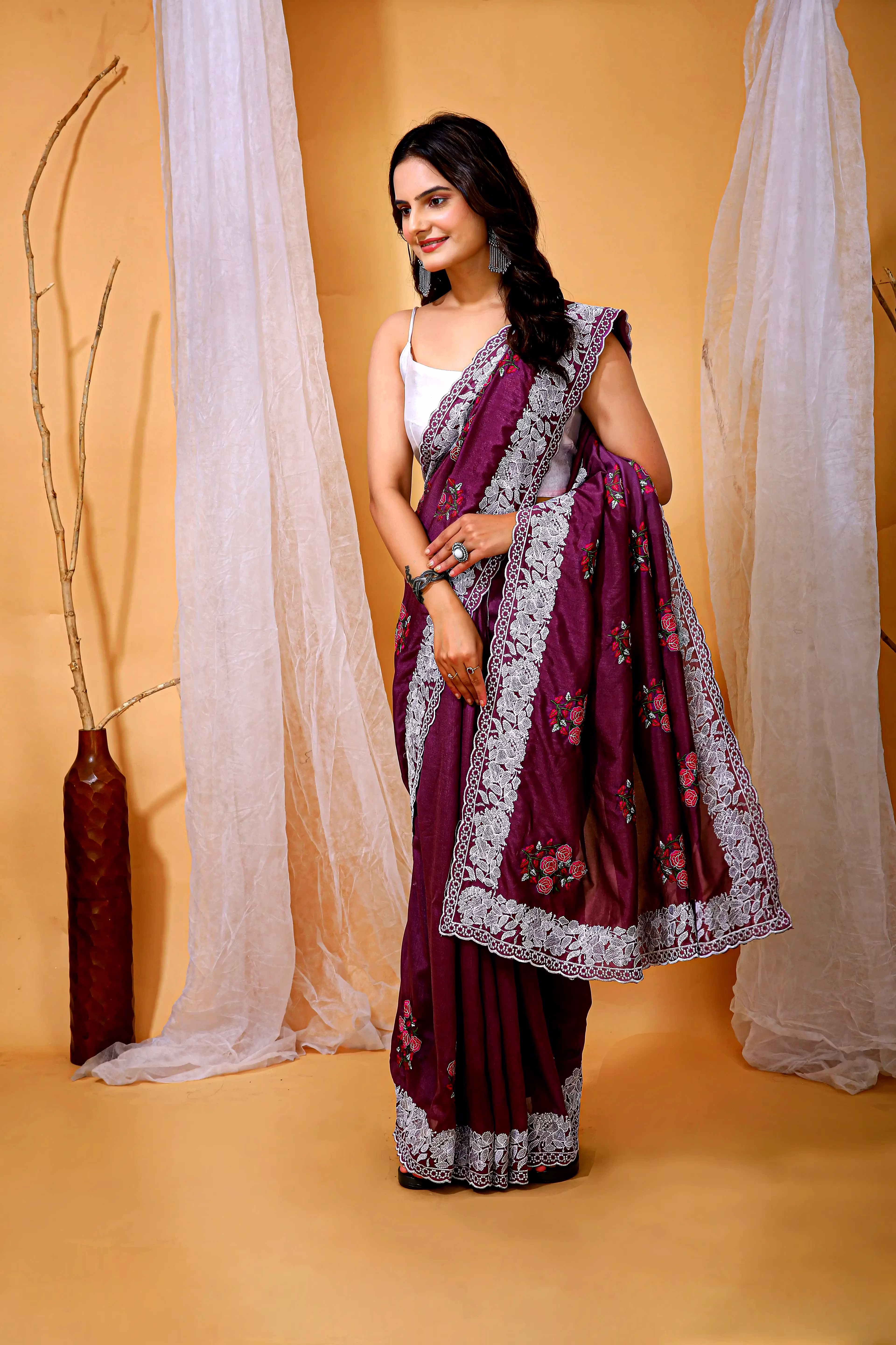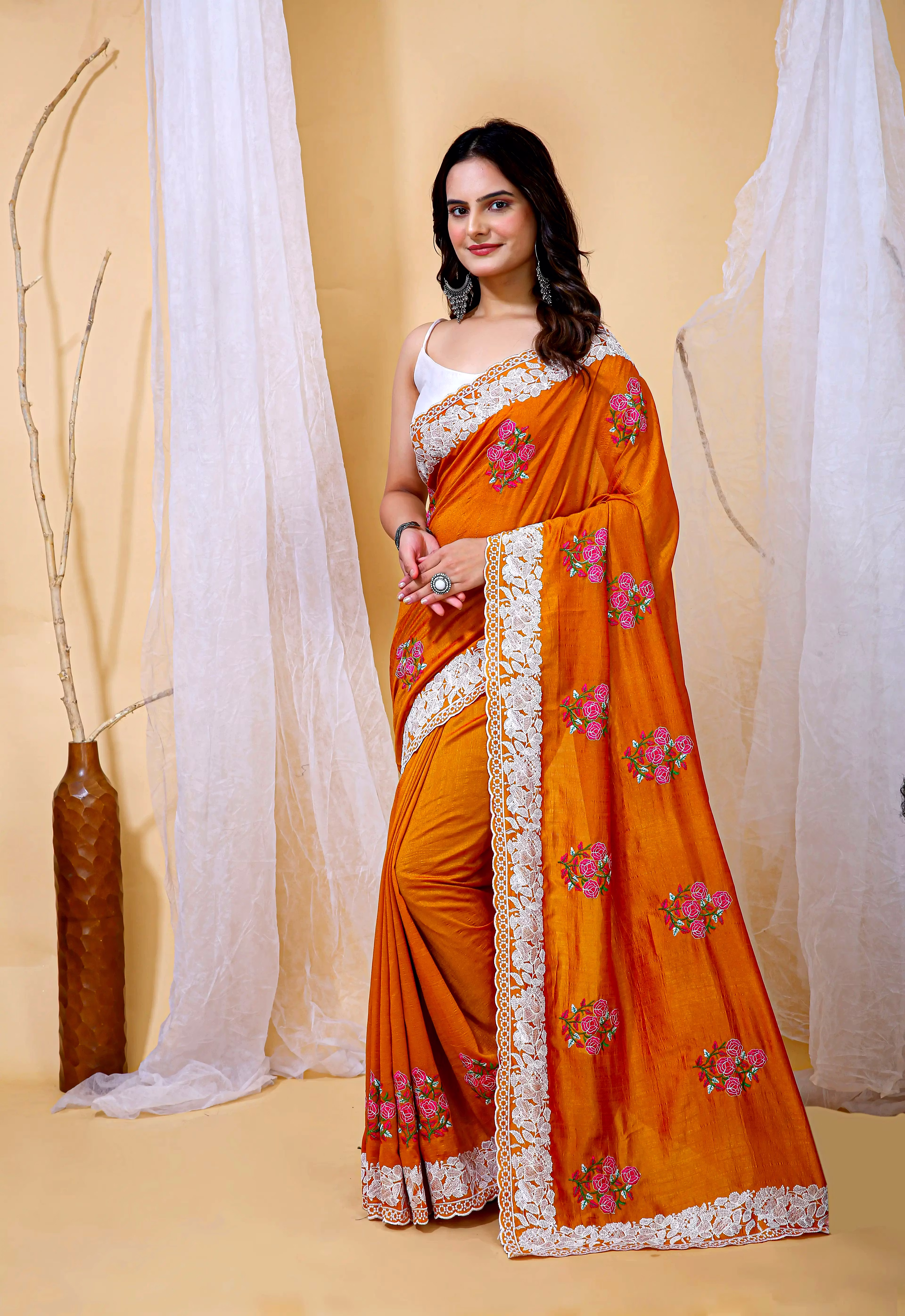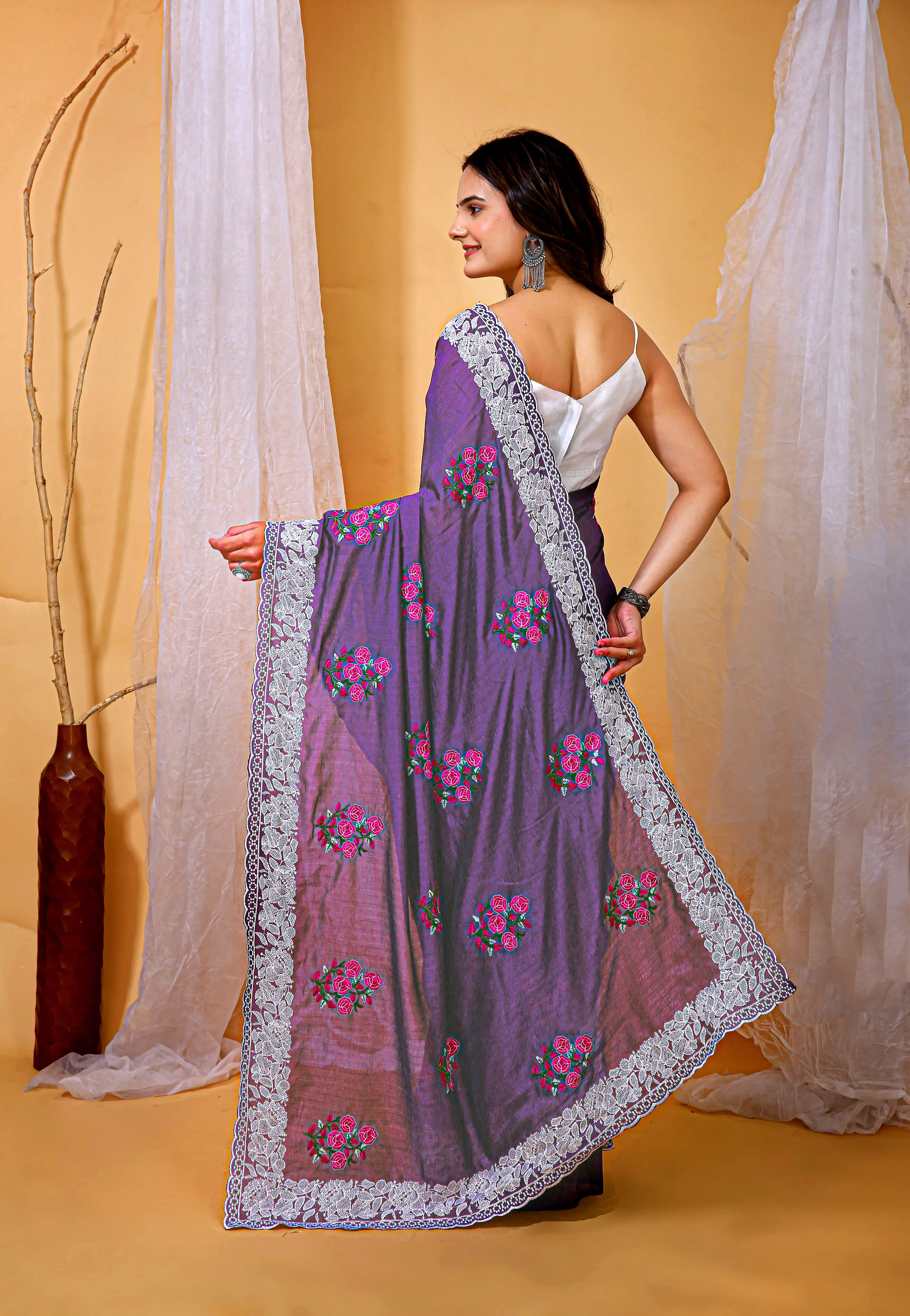 This saree is your perfect companion for any joyful gathering. The combination of the Vichitra Silk and the lively design makes it the quintessential festive saree for daytime events, sangeets, or even upscale family lunches. Unlike heavily embroidered pieces, the floral print saree offers effortless glamour that is completely ready-to-wear and requires minimal styling effort. It is the ideal choice for those seeking party wear elegance that is both sophisticated and light. Invest in this piece for an outfit that guarantees you feel as radiant as you look at every occasion.