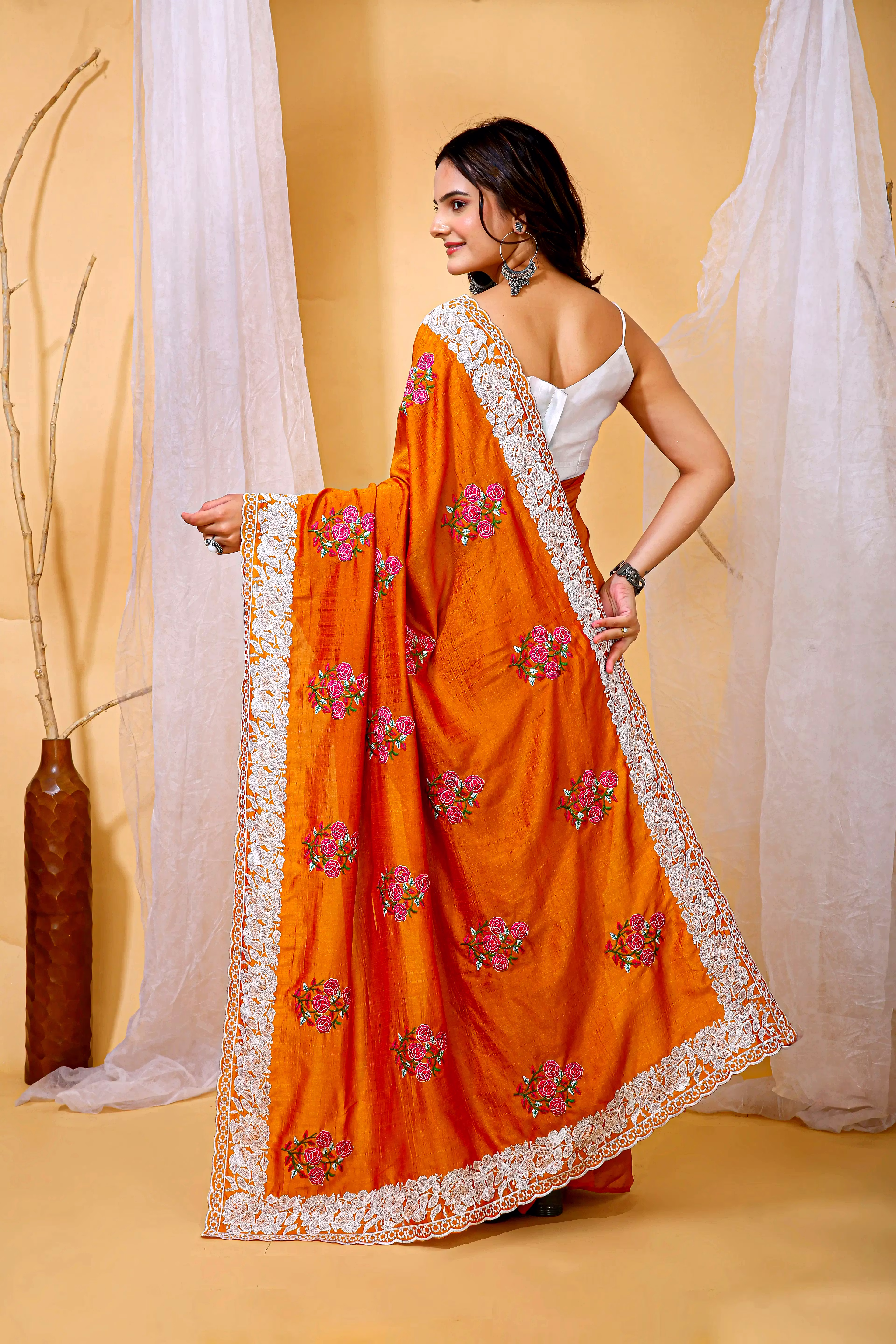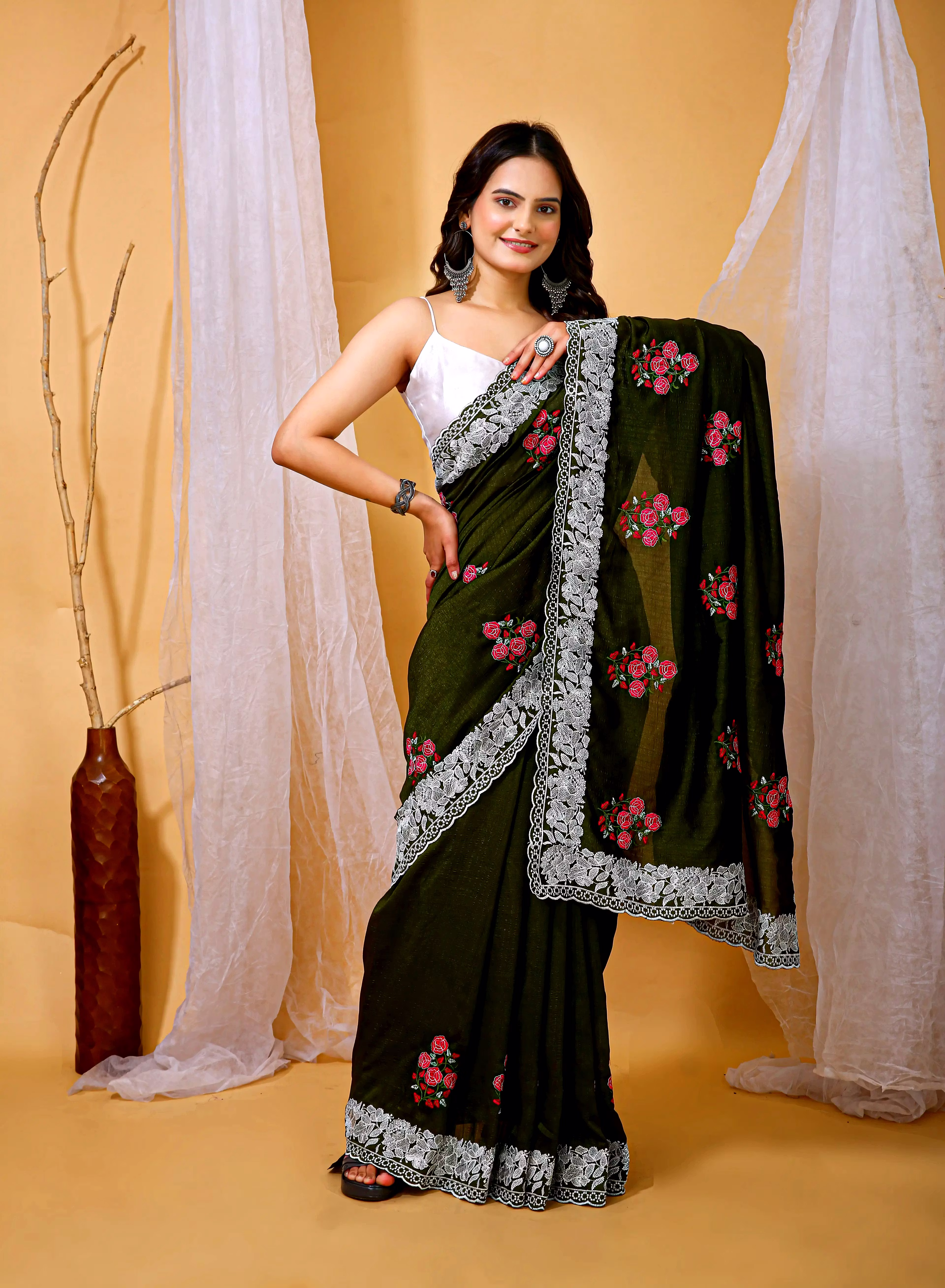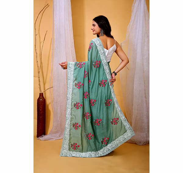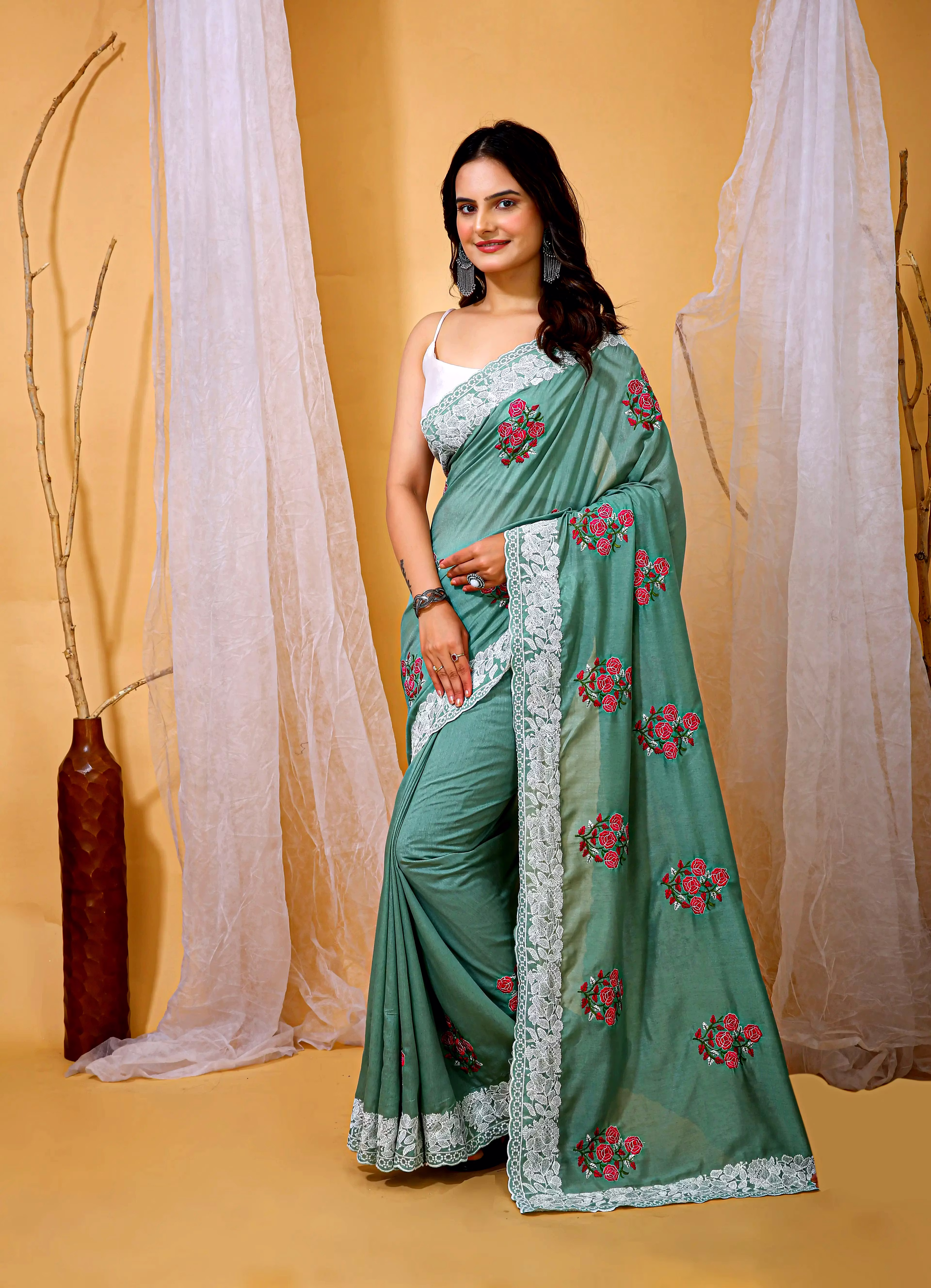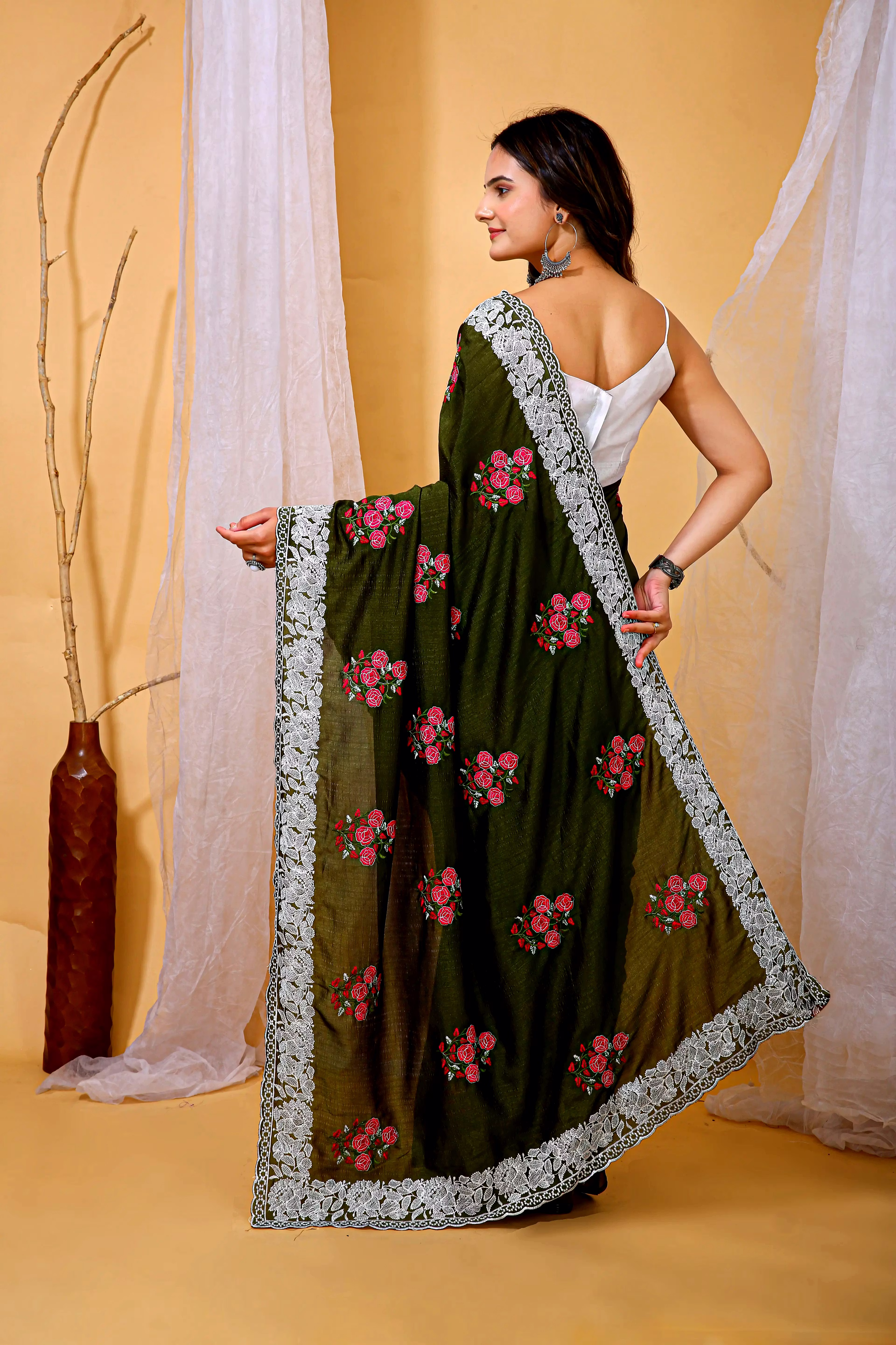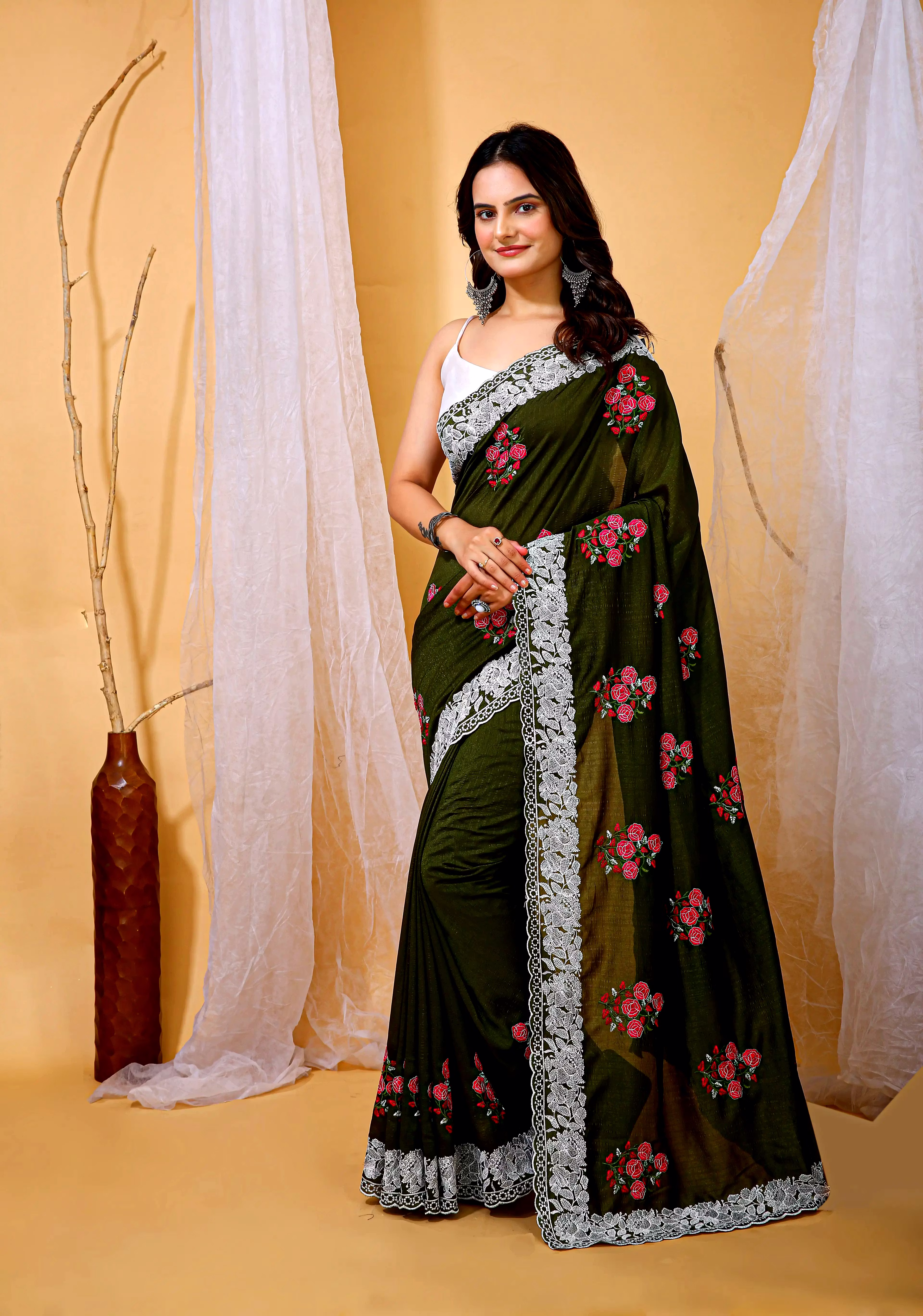 This saree is your perfect companion for any joyful gathering. The combination of the Vichitra Silk and the lively design makes it the quintessential festive saree for daytime events, sangeets, or even upscale family lunches. Unlike heavily embroidered pieces, the floral print saree offers effortless glamour that is completely ready-to-wear and requires minimal styling effort. It is the ideal choice for those seeking party wear elegance that is both sophisticated and light. Invest in this piece for an outfit that guarantees you feel as radiant as you look at every occasion.