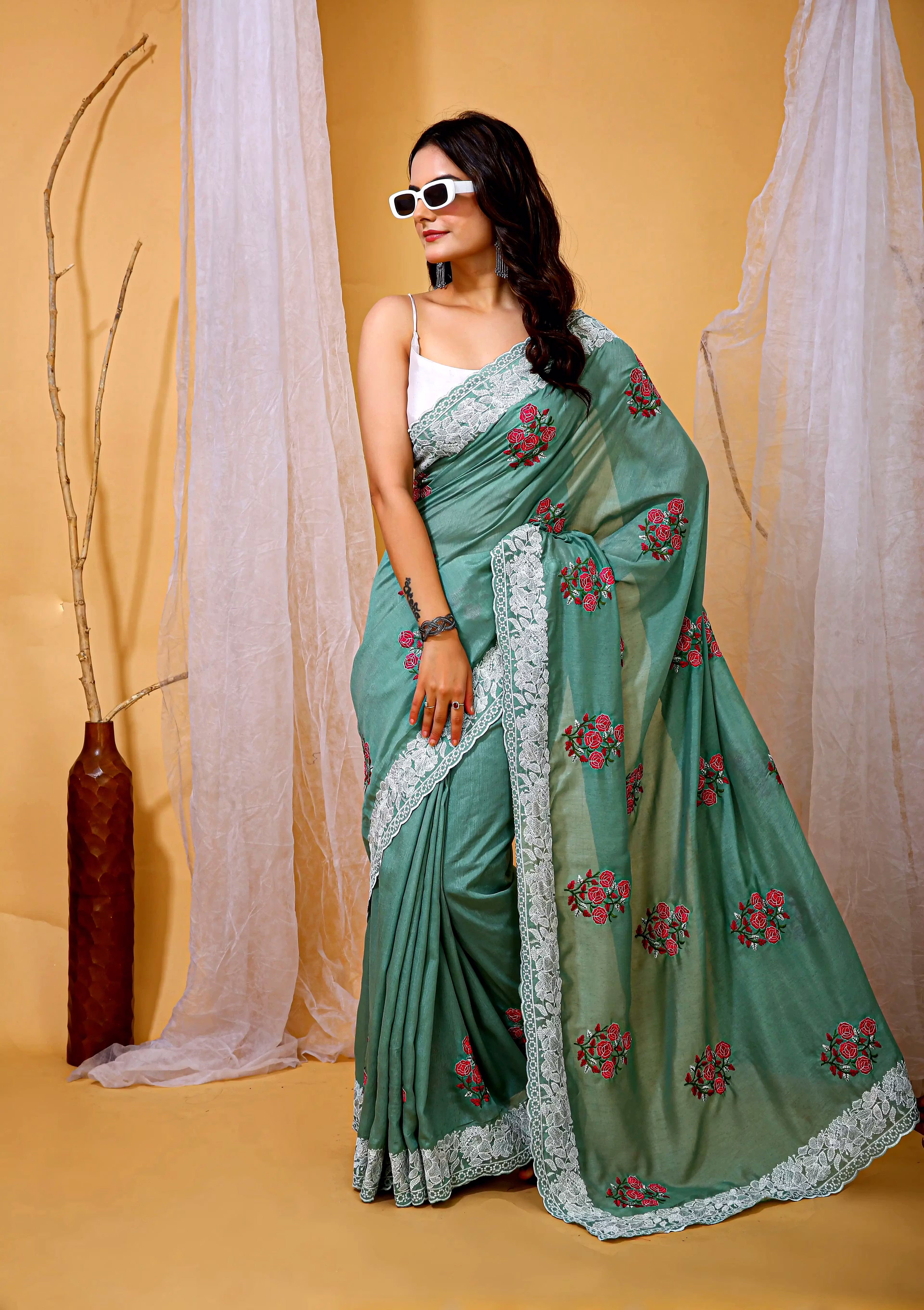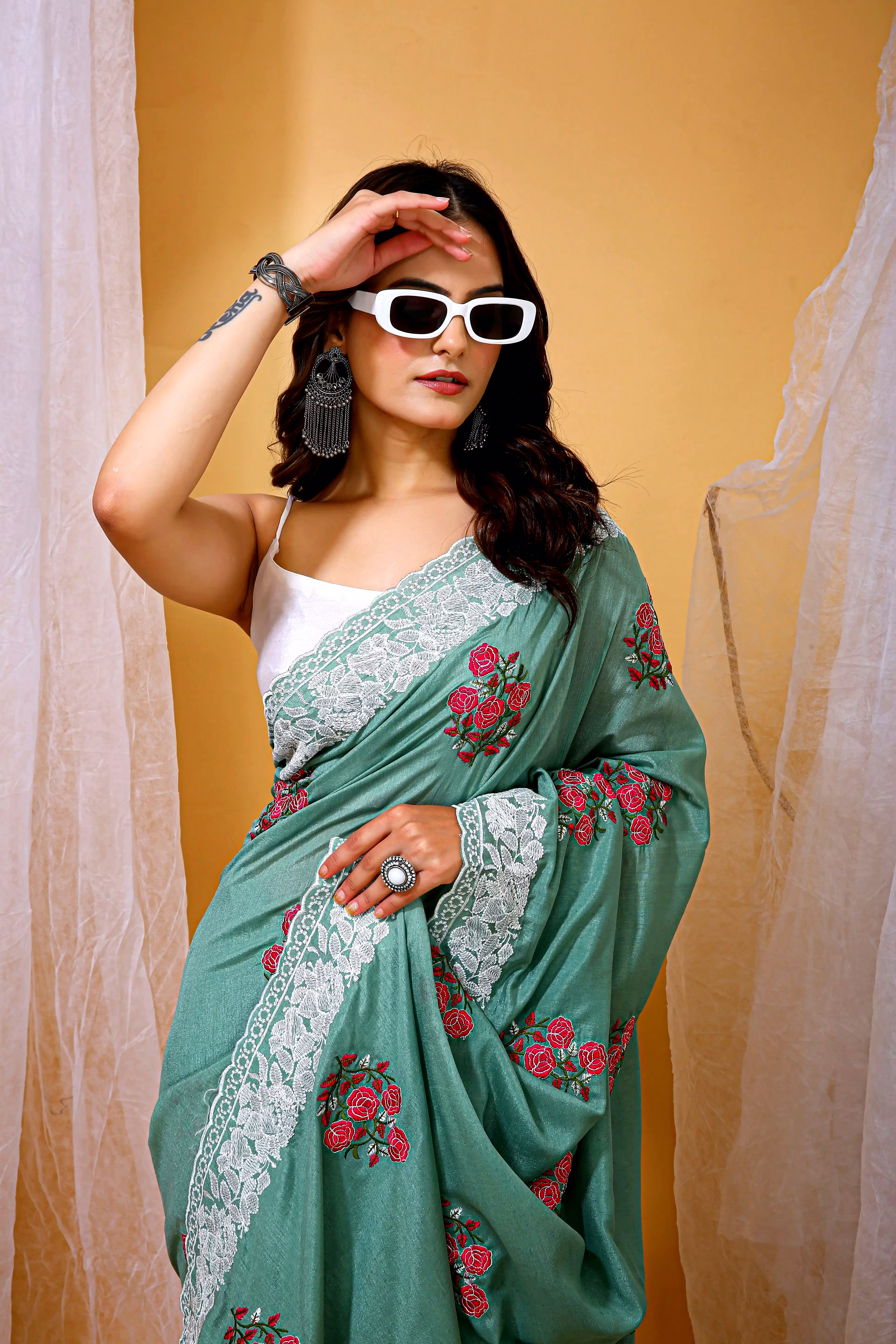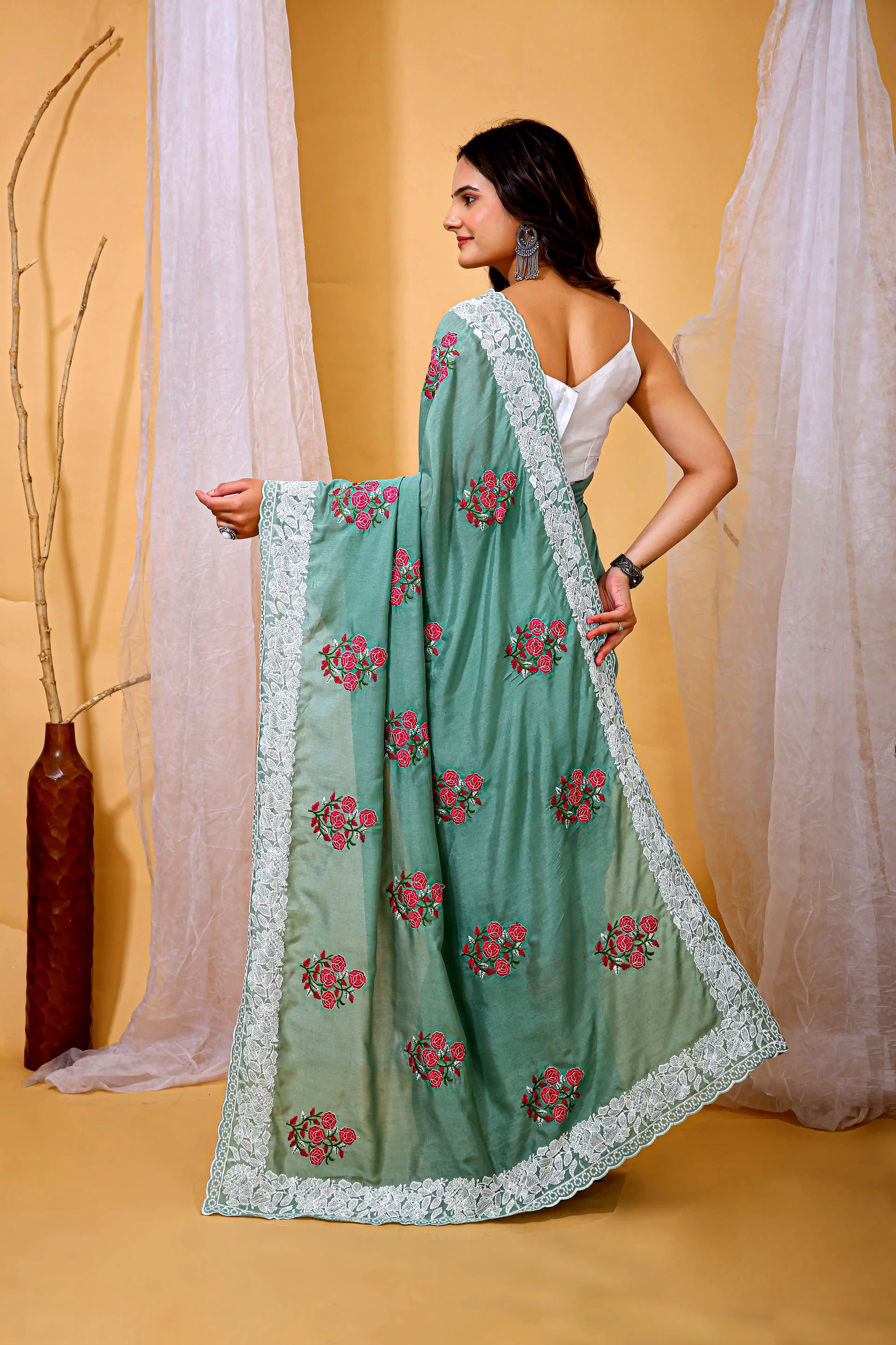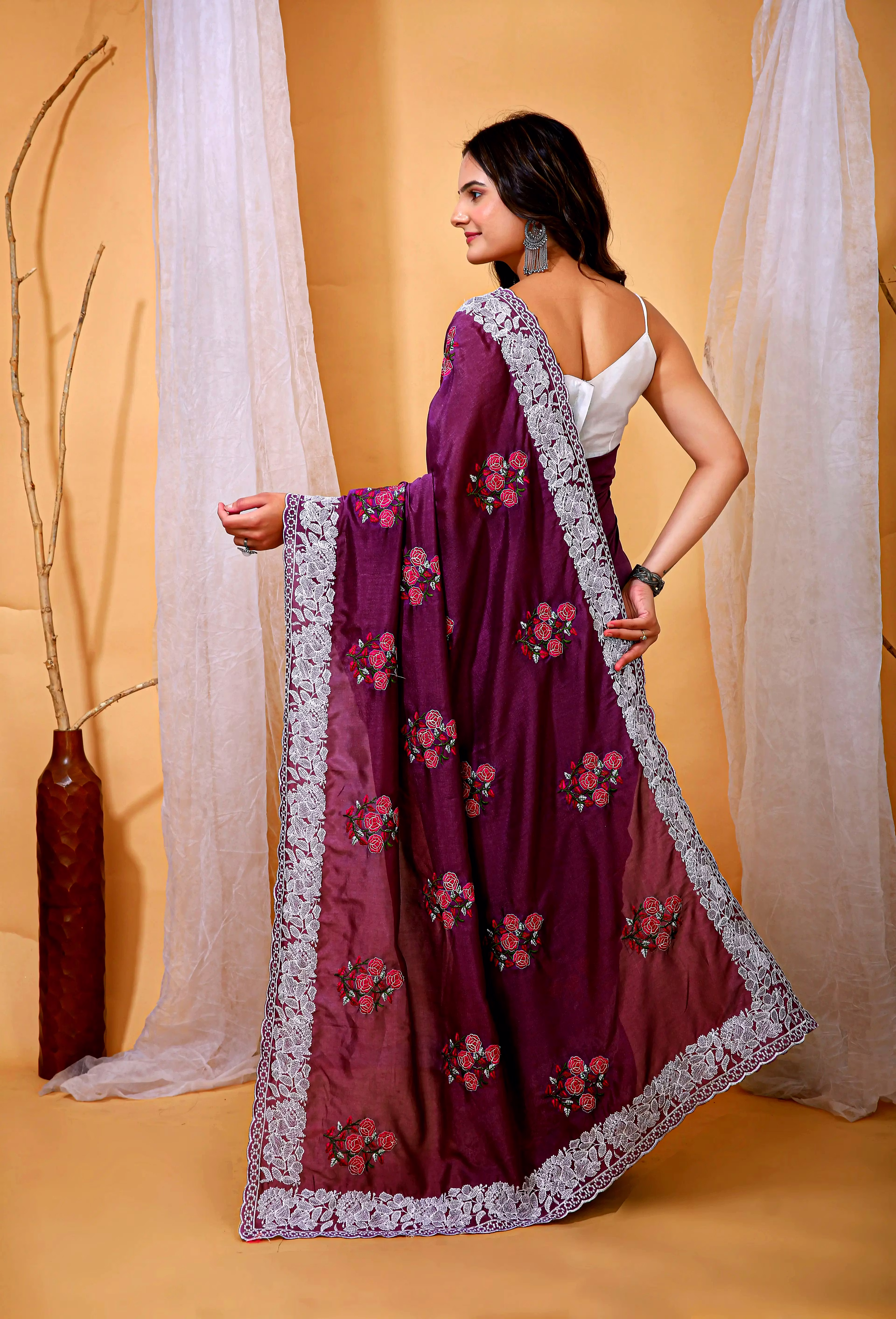 This saree is your perfect companion for any joyful gathering. The combination of the Vichitra Silk and the lively design makes it the quintessential festive saree for daytime events, sangeets, or even upscale family lunches. Unlike heavily embroidered pieces, the floral print saree offers effortless glamour that is completely ready-to-wear and requires minimal styling effort. It is the ideal choice for those seeking party wear elegance that is both sophisticated and light. Invest in this piece for an outfit that guarantees you feel as radiant as you look at every occasion.
