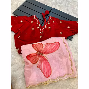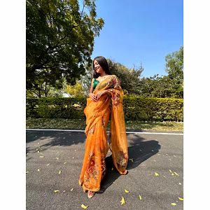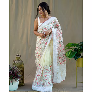 Introducing our Flower Embroidered Organza Saree with Tassel Pallu & Handwork Border, a masterpiece that combines elegance and craftsmanship. This saree is designed for the modern woman who appreciates timeless beauty and wants to make a statement. Featuring delicate flower embroidery on premium organza fabric, this saree exudes sophistication and grace. The intricate handwork border adds a touch of opulence, making it perfect for special occasions or weddings. The tassel pallu adds a playful element, giving it a contemporary twist. Crafted with meticulous attention to detail, this saree offers a perfect blend of comfort and style. The lightweight organza fabric drapes beautifully, enhancing your silhouette and making you feel like a queen. It is easy to drape and stays in place, allowing you to move with confidence and grace. Not only does this saree make you look stunning, but it also offers versatility. Wear it with a statement blouse for a traditional look or pair it with a trendy crop top for a modern twist. The possibilities are endless, allowing you to create your own unique style. Investing in this saree means investing in quality. We take pride in our craftsmanship, ensuring that every stitch is perfect. This saree is designed to stand the test of time, allowing you to cherish it for years to come. Make a lasting impression with our Flower Embroidered Organza Saree with Tassel Pallu & Handwork Border. Embrace your inner diva and let the world admire your impeccable style. Experience the allure and elegance of this saree and elevate your wardrobe to new heights.