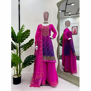 The Foux Gorgette Top with Sequin Thread Work and Soft Net Dupata is an exquisite piece of clothing that will make you stand out in any crowd. This top is made from a high-quality fabric that is both lightweight and breathable, ensuring that you stay comfortable even in hot and humid weather. The gorgette material adds a touch of elegance to the outfit, while the sequin thread work adds a splash of glamour, making it perfect for formal occasions. The soft net dupata that comes with this top is a thing of beauty in itself. It is lightweight and delicate, yet adds a whole new dimension to the outfit. The dupata is 2.2m long, which is the perfect length to drape over your head and shoulders or wrap around your neck. It is also easy to handle and doesn't require too much effort to style. The Foux Gorgette Top with Sequin Thread Work and Soft Net Dupata is a versatile outfit that can be worn in a variety of ways. You can pair it with a long skirt for a traditional look, or with a pair of jeans for a more casual look. The top is also available in a range of sizes, so you can find the perfect fit for your body type. One of the best things about this outfit is its weight. At just 1kg, it is incredibly lightweight and easy to carry around. This makes it perfect for travelling, as it won't take up too much space in your luggage. Overall, the Foux Gorgette Top with Sequin Thread Work and Soft Net Dupata is a stunning outfit that is sure to turn heads wherever you go. Its high-quality materials and intricate design make it a must-have for anyone who loves fashion and wants to make a statement with their clothing.