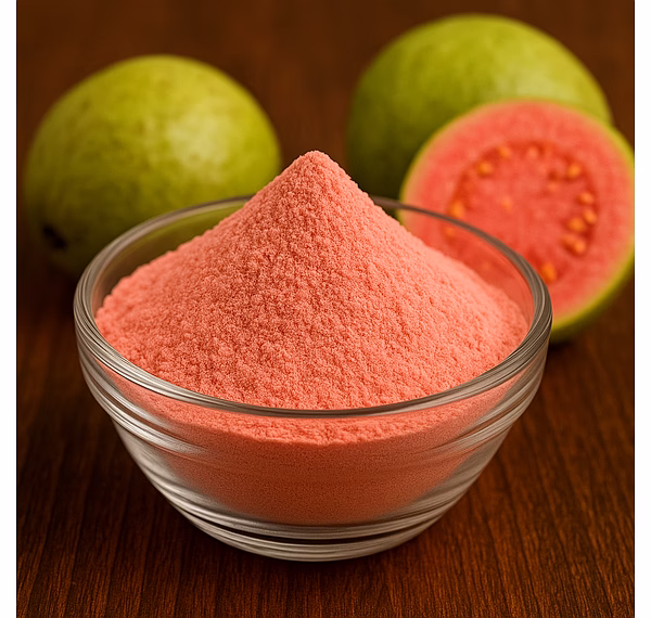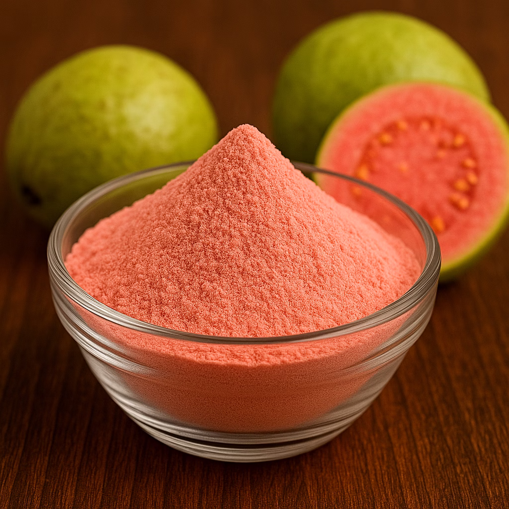 Nutrajun LLP offers premium Freeze Dried Pink Guava Powder made from ripe tropical guavas. Rich in vitamin C, fiber, and antioxidants — perfect for global exports, food manufacturing, and beverages.