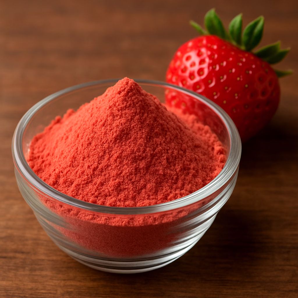 Nutrajun LLP exports high-quality Freeze Dried Strawberry Powder made from fresh Indian strawberries. It retains rich red color, fruity aroma, and nutrition — ideal for beverages, bakery, and health foods.