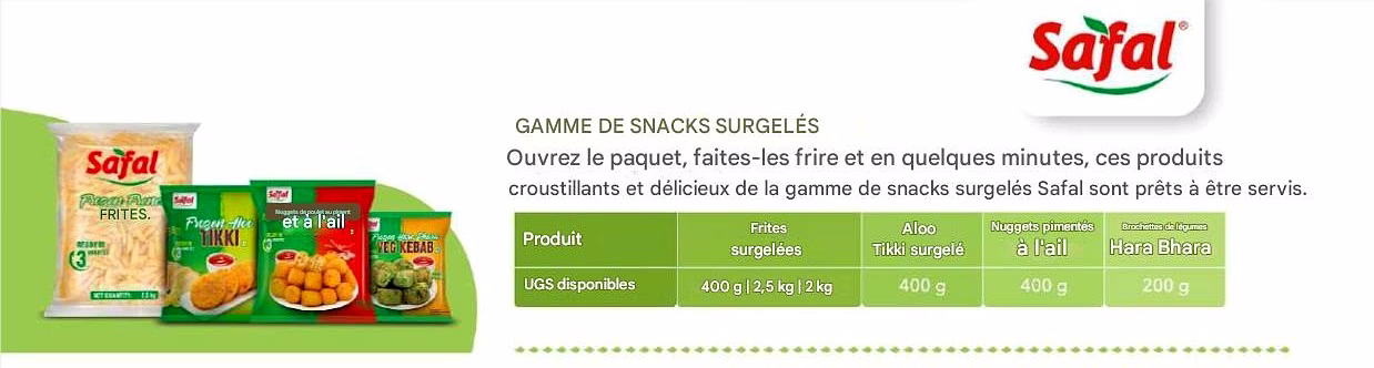 Safal vise toujours à maintenir la fraîcheur et la qualité au premier plan, en maintenant des normes élevées en matière d’approvisionnement, de production et d’emballage.