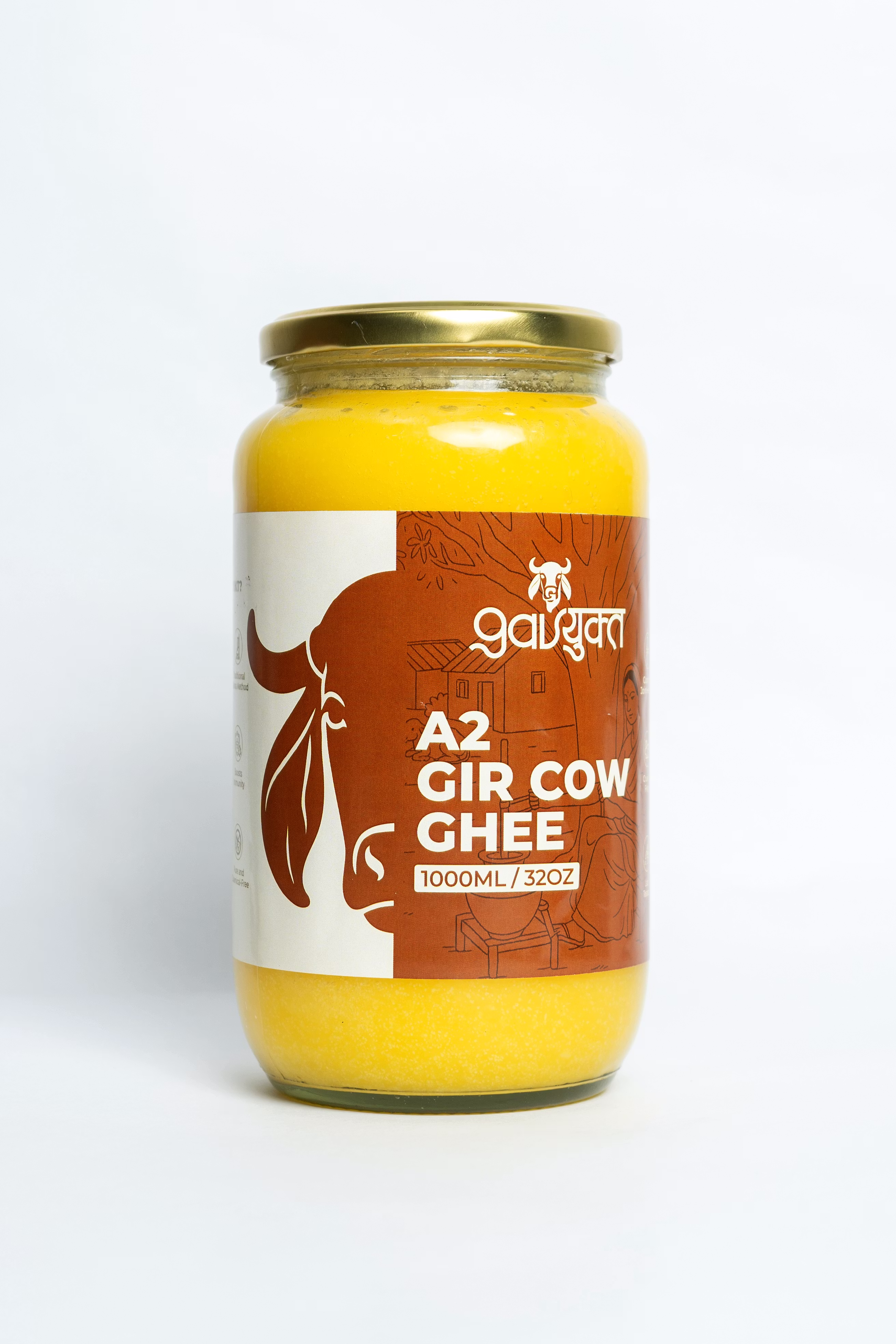 100% Pure A2 Gir Cow Ghee, made from ethically sourced Indian Gir cows