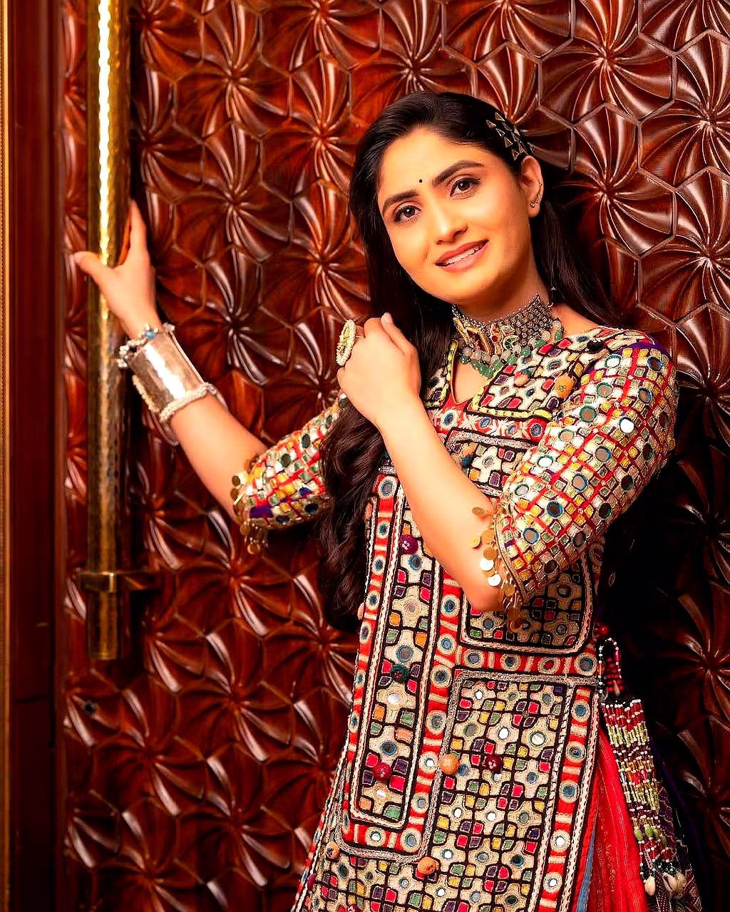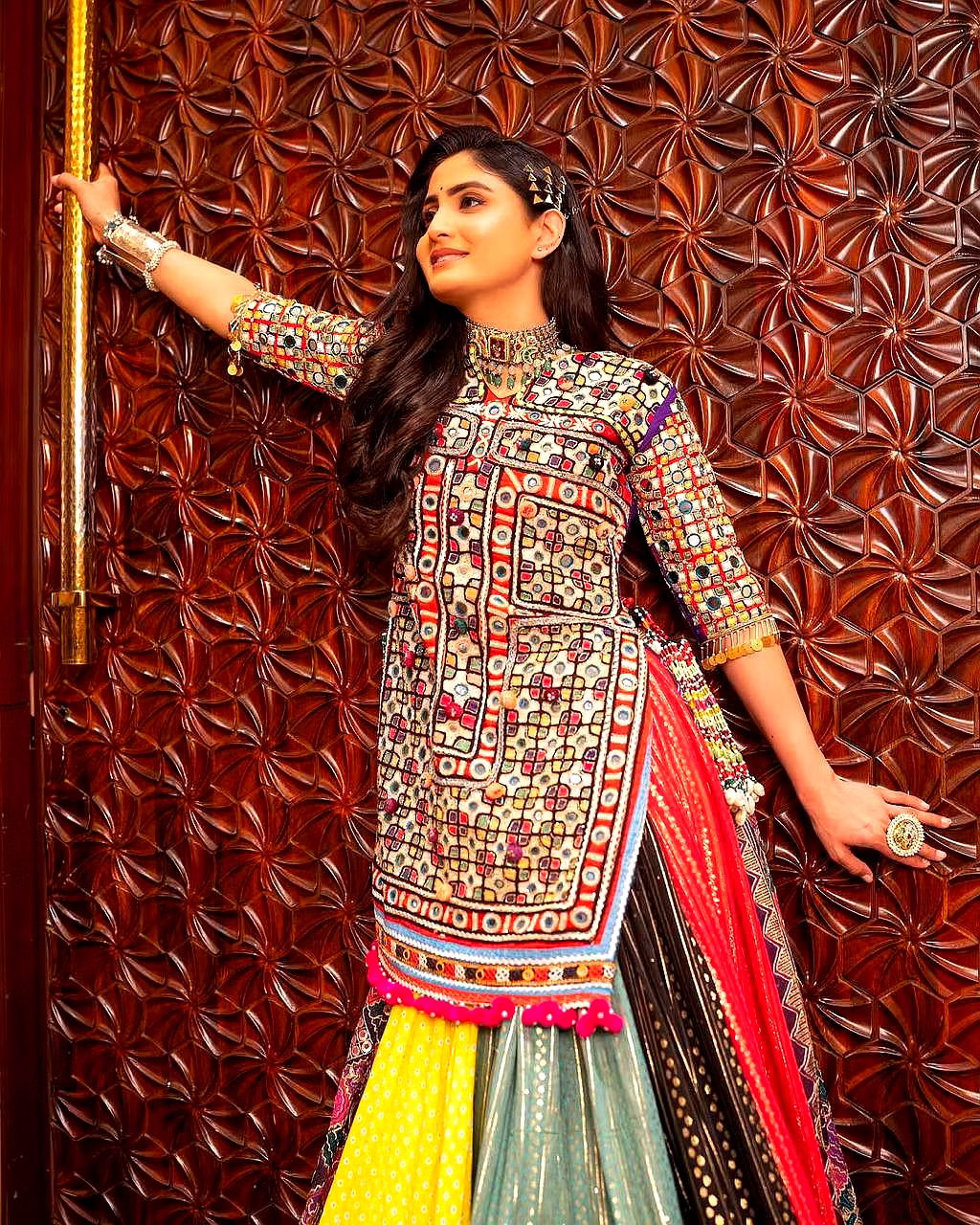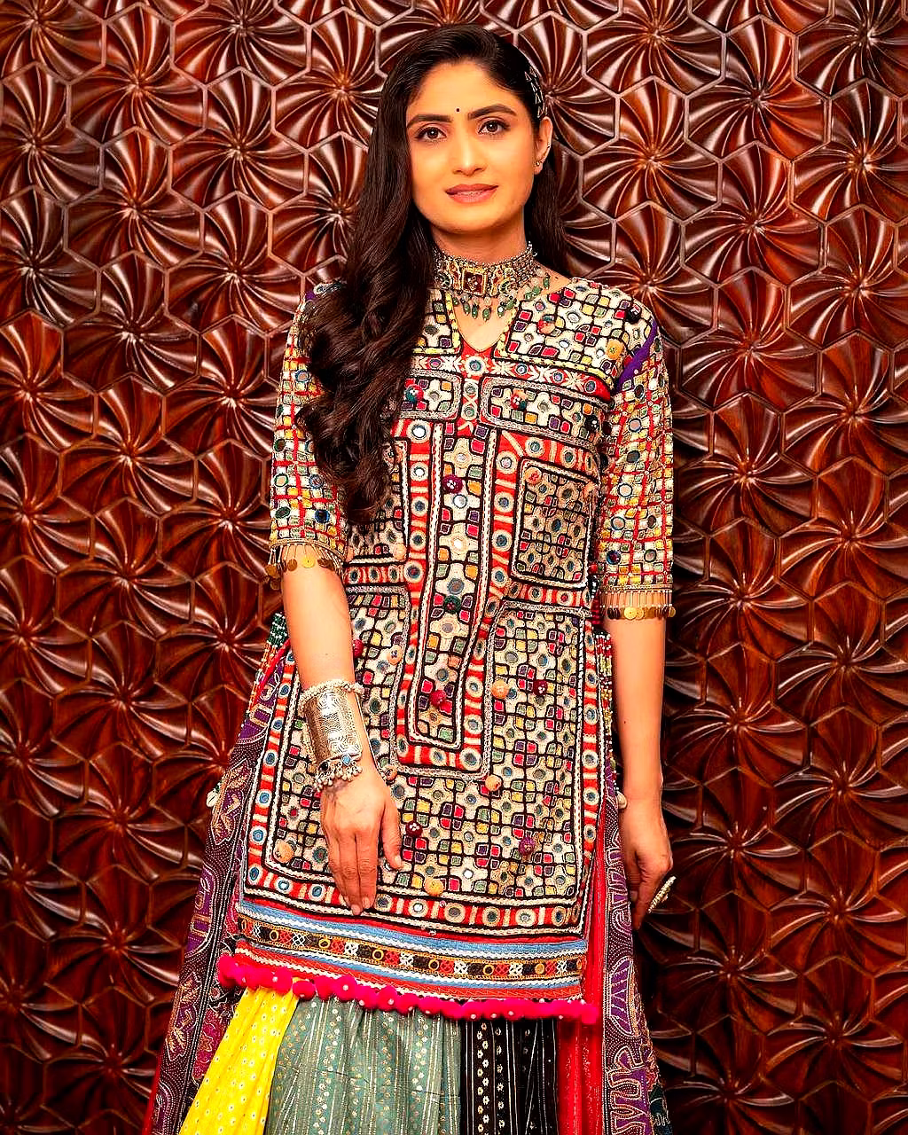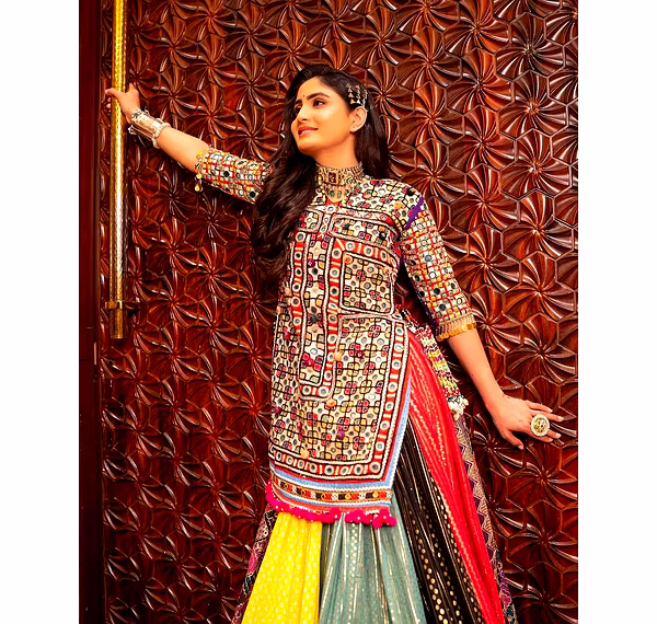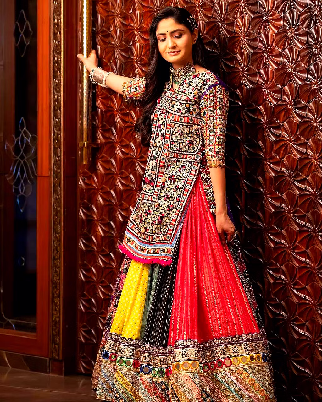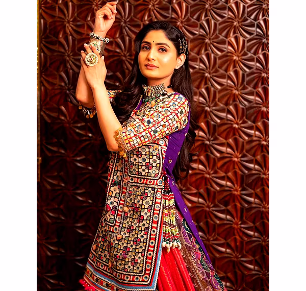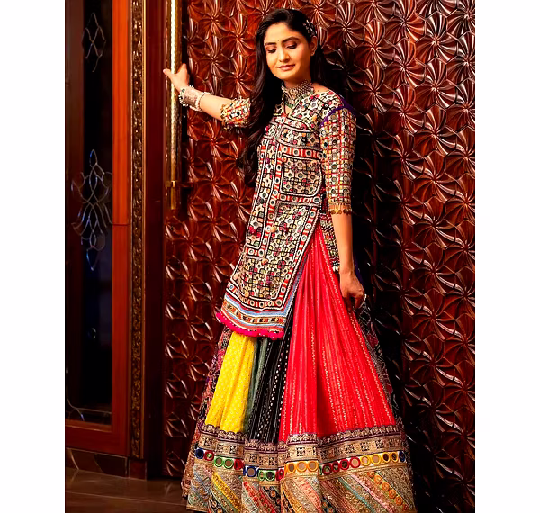 Dress up in style with the Geeta Rabari Chaniya Choli for Navratri. This exquisite outfit is a perfect blend of tradition and elegance.
