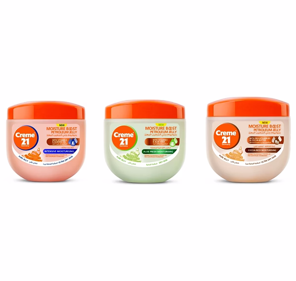 La gelée de vaseline Creme21 Moisture Boost est une crème hydratante intensive à usage quotidien pour les peaux sèches et rugueuses, généralement enrichie en beurre de cacao, vitamine E ou huile d'amande douce, elle forme une barrière protectrice qui retient l'hydratation, répare les gerçures et améliore l'élasticité de la peau.