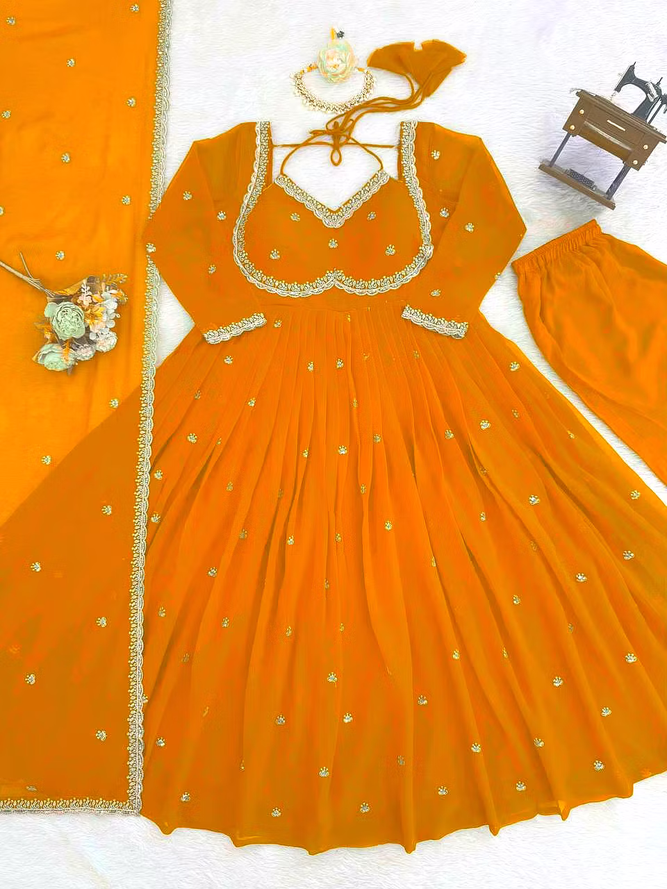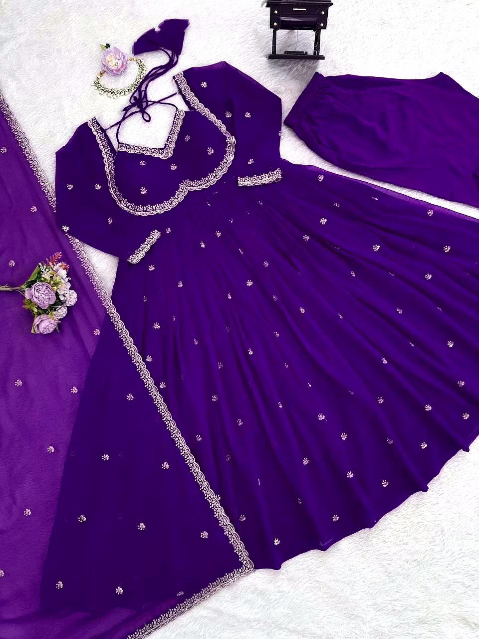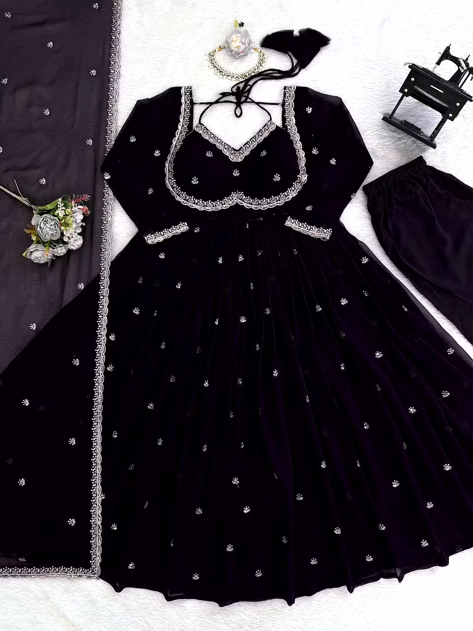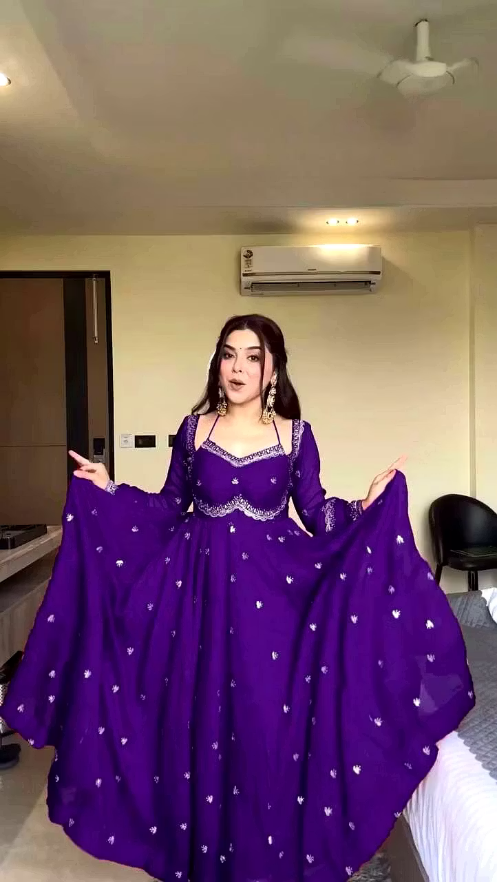 Drape yourself in elegance with this stunning Georgette Anarkali Suit Set with Sequence Work, designed to make every celebration unforgettable.