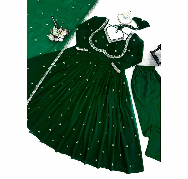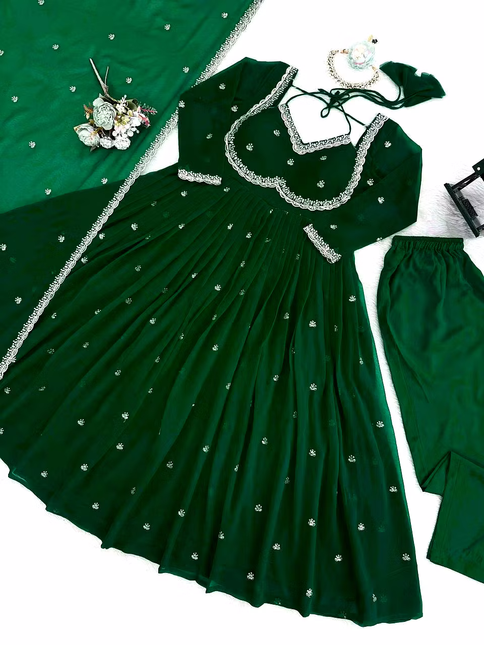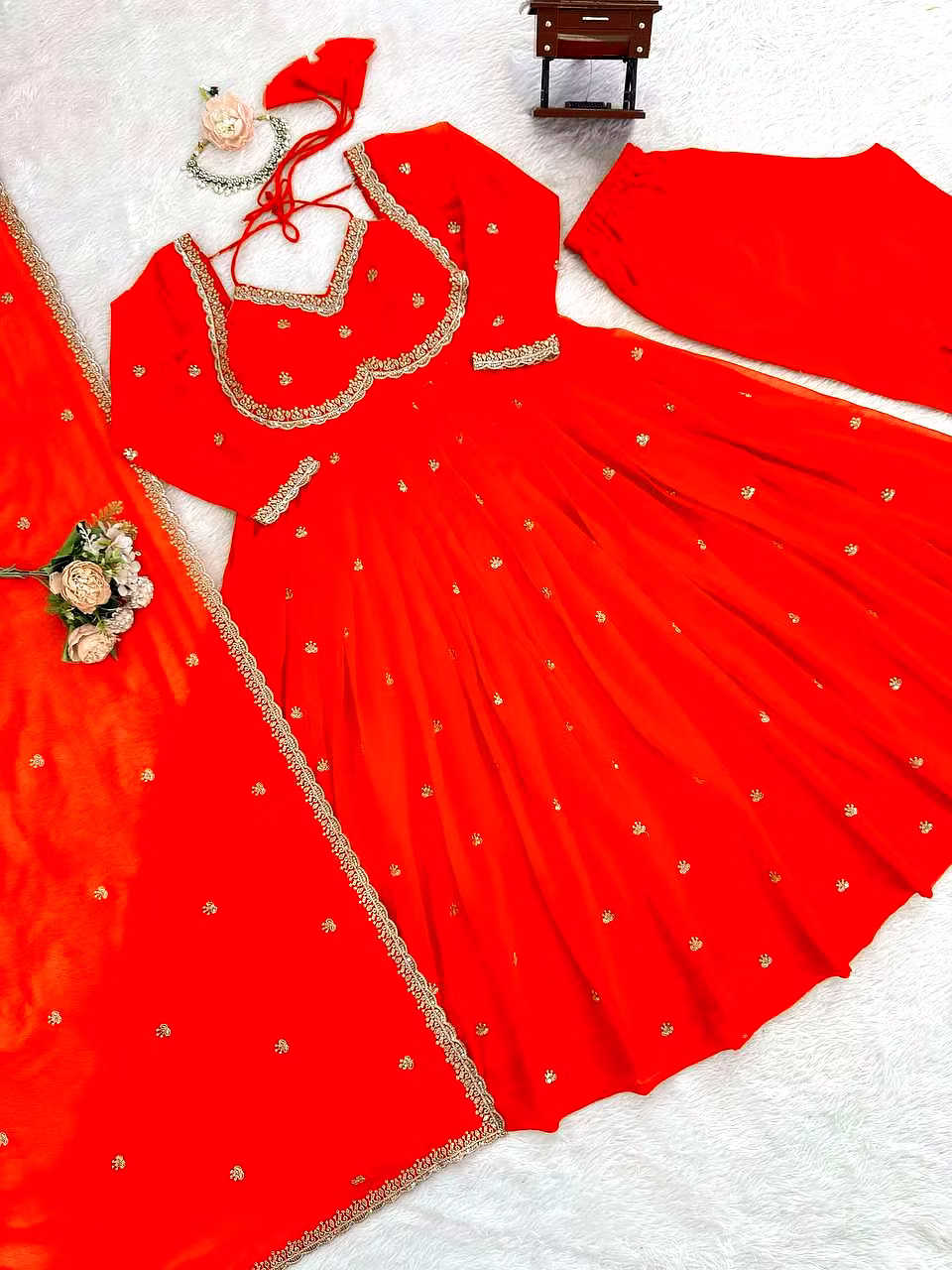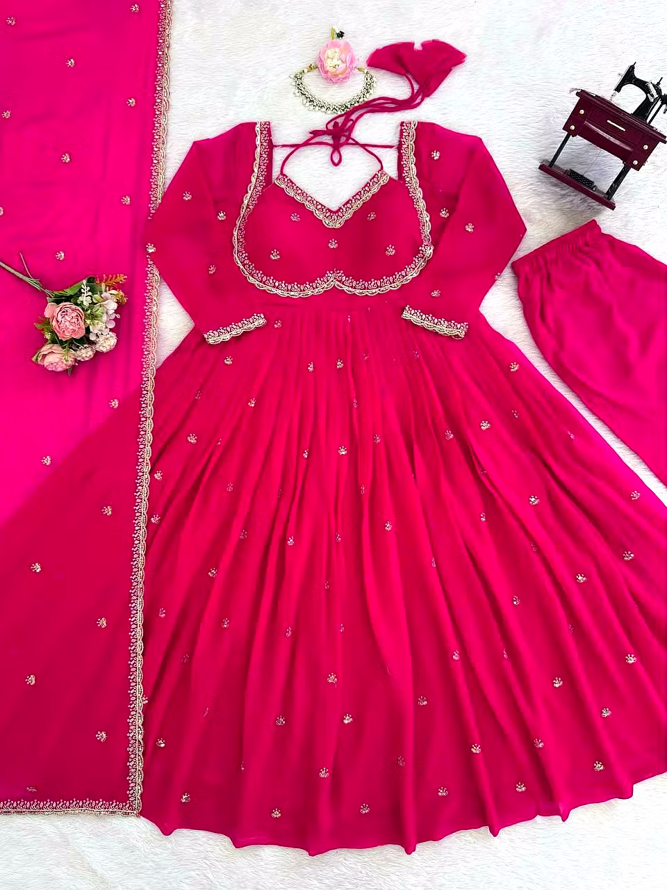 Drape yourself in elegance with this stunning Georgette Anarkali Suit Set with Sequence Work, designed to make every celebration unforgettable.