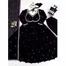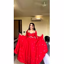 Crafted from soft, flowy georgette, the Anarkali creates a flattering silhouette with graceful movement. The delicate sequence work adds a shimmer that catches the light beautifully, making the outfit perfect for festive evenings, wedding functions, receptions, and parties.