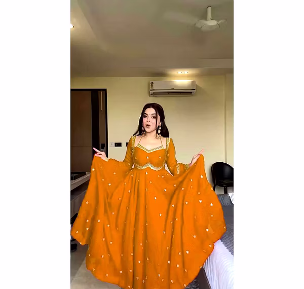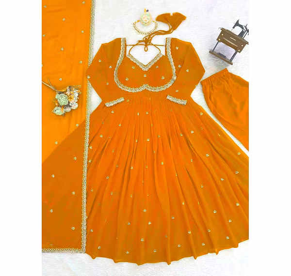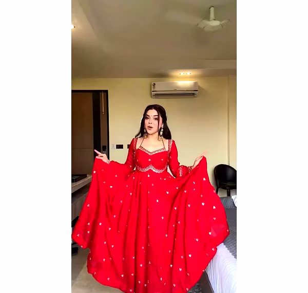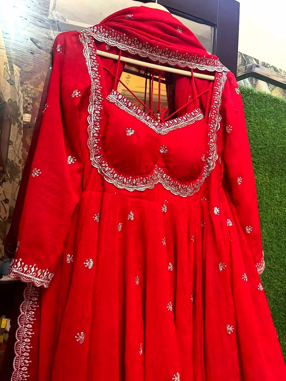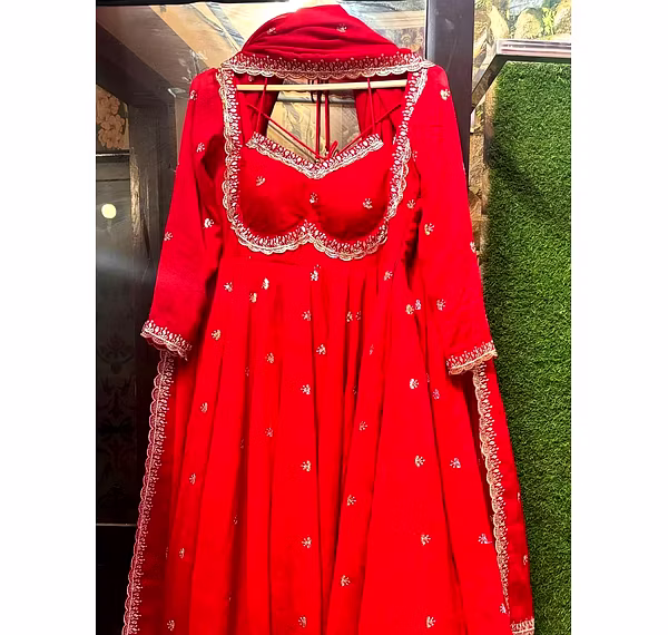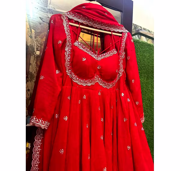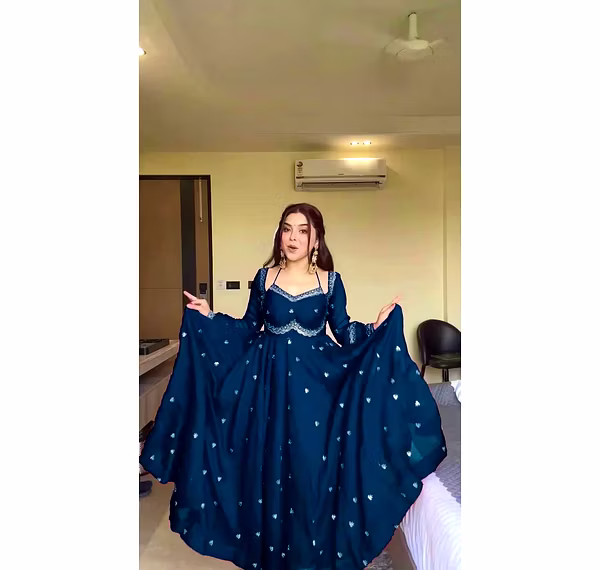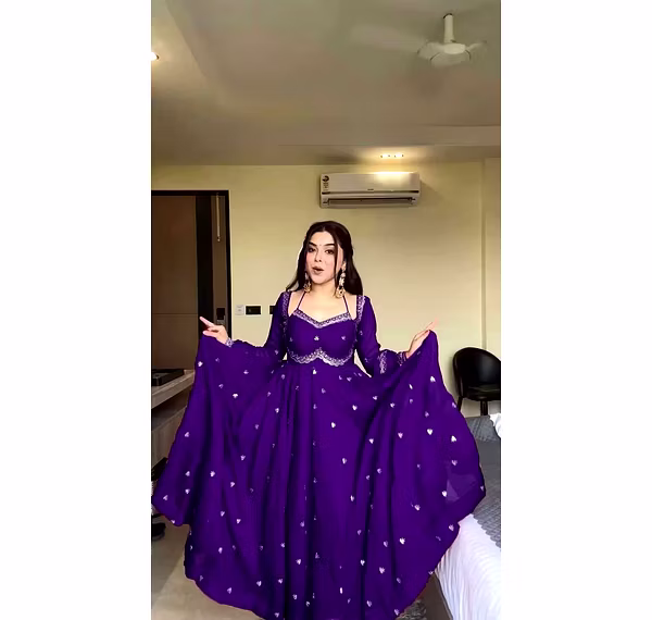 With its lightweight feel and glamorous finish, this Anarkali suit combines comfort with high-end sophistication — a must-have for any ethnic wardrobe. The Anarkali suits all occasions, from family gatherings to pre-wedding shoots, ensuring you are the epitome of style everywhere you go.