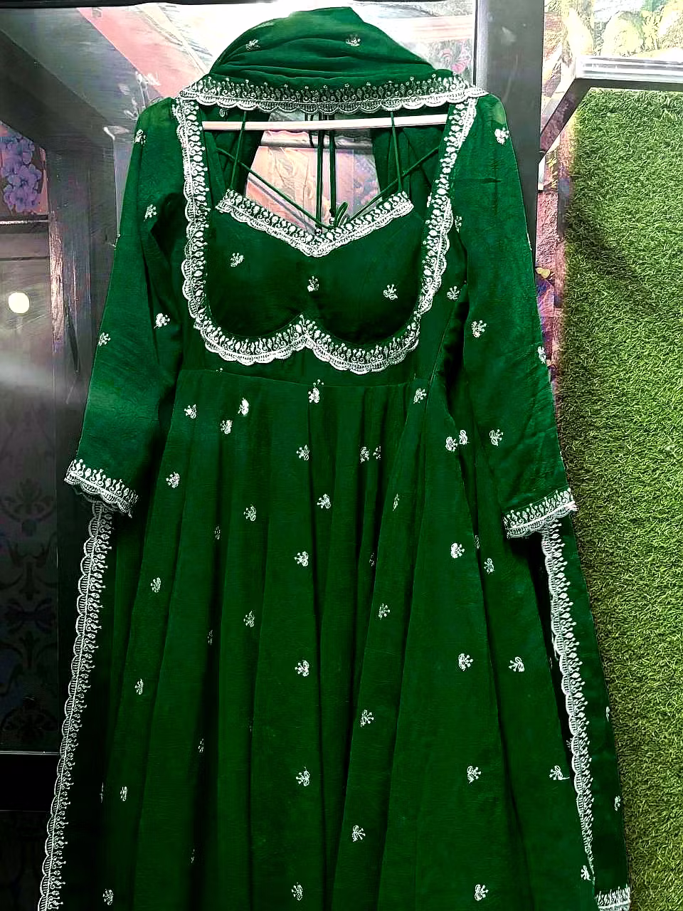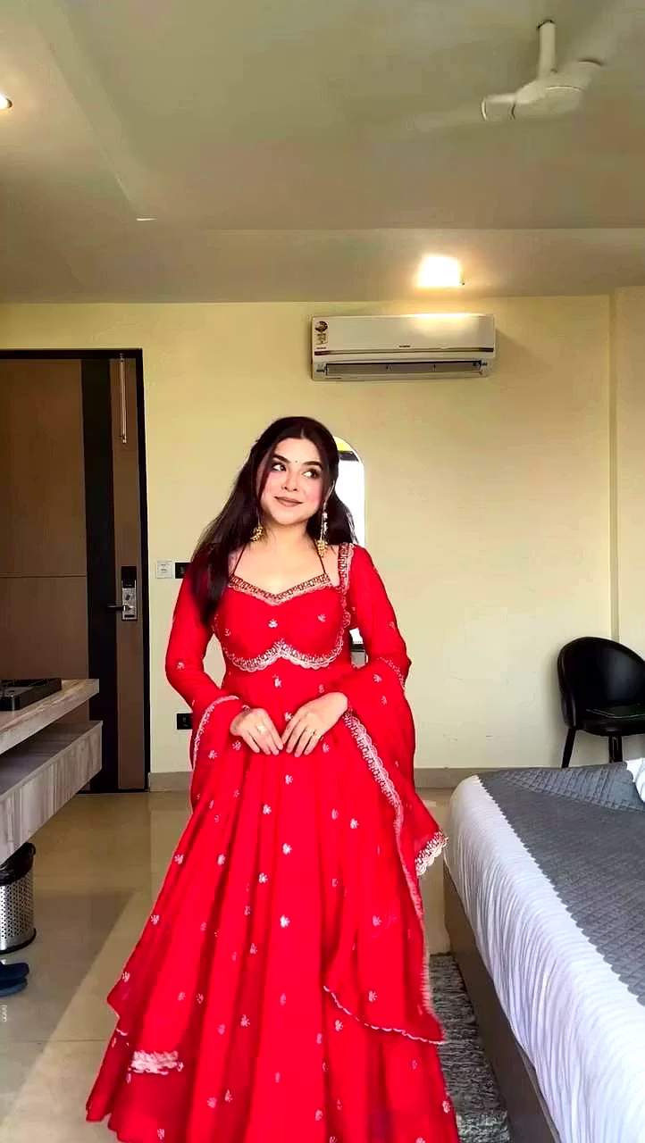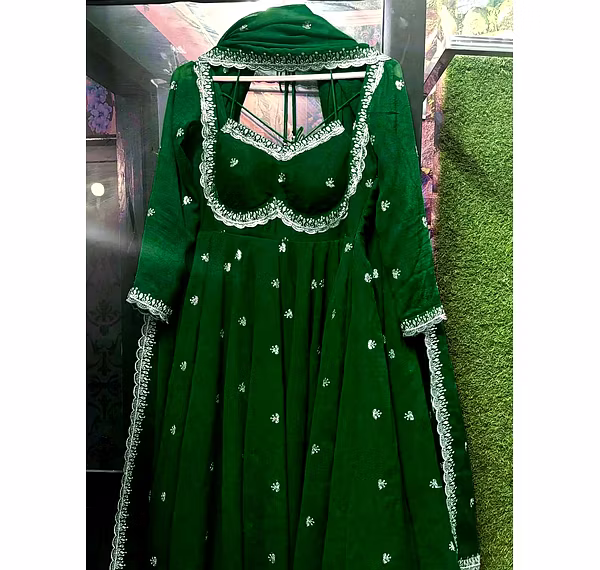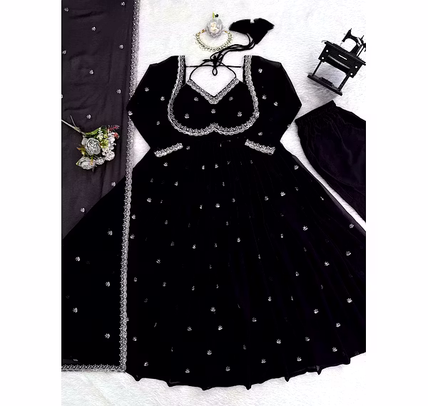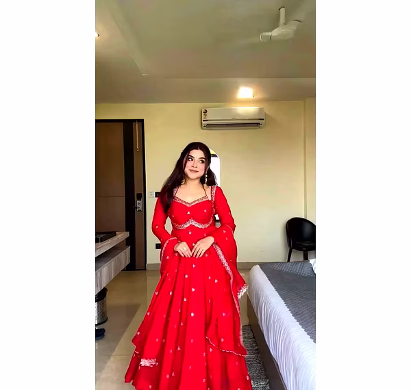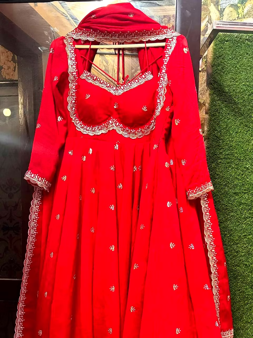 With its lightweight feel and glamorous finish, this Anarkali suit combines comfort with high-end sophistication — a must-have for any ethnic wardrobe. The Anarkali suits all occasions, from family gatherings to pre-wedding shoots, ensuring you are the epitome of style everywhere you go.