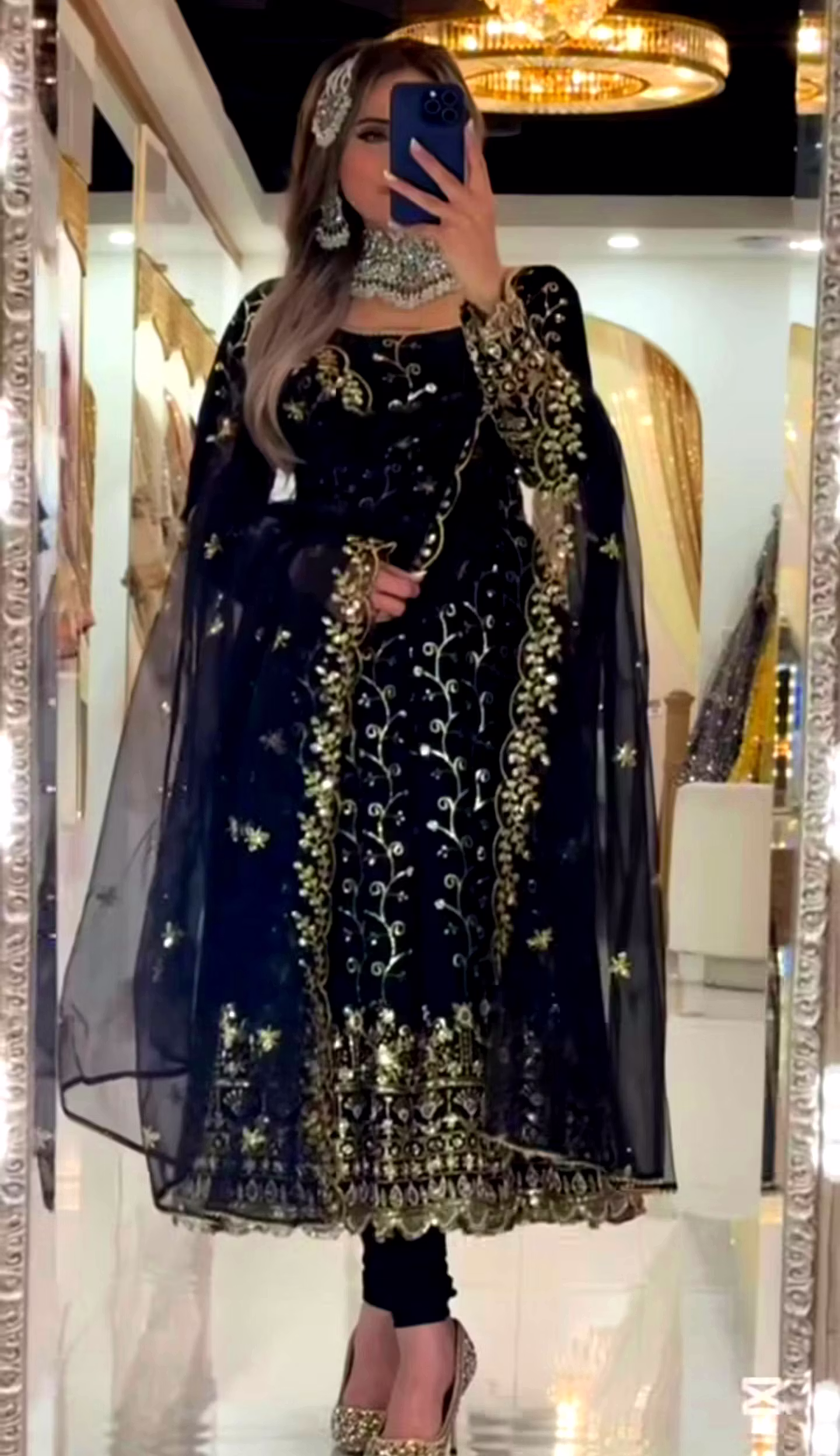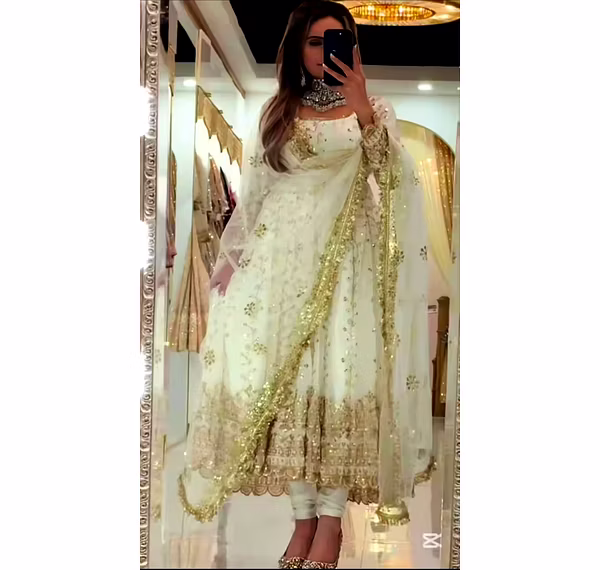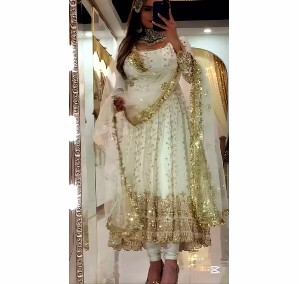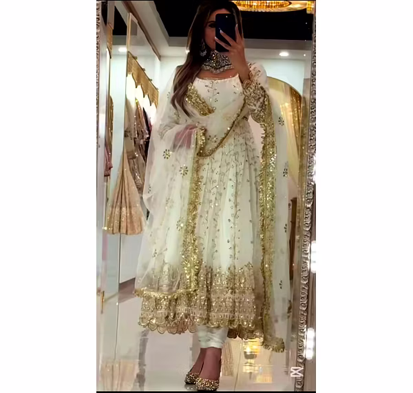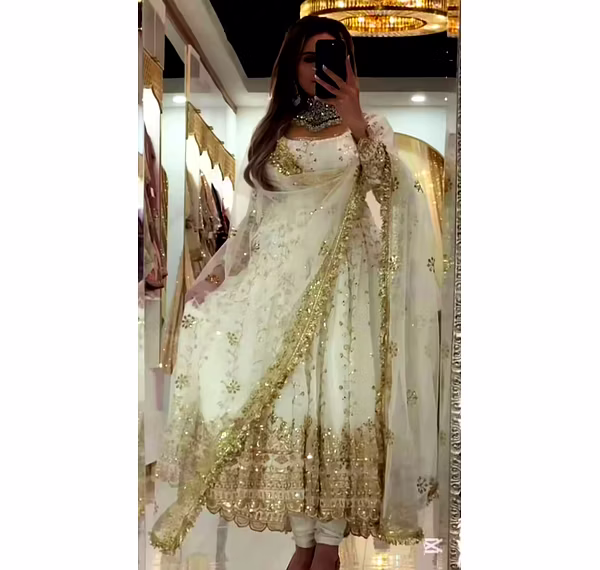 Experience the allure of Anarkali grace with our lightweight yet luxurious suit, designed to flow gracefully around you. The Anarkali silhouette enhances your body shape, offering both style and comfort for long-duration wear.