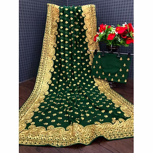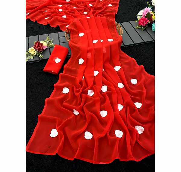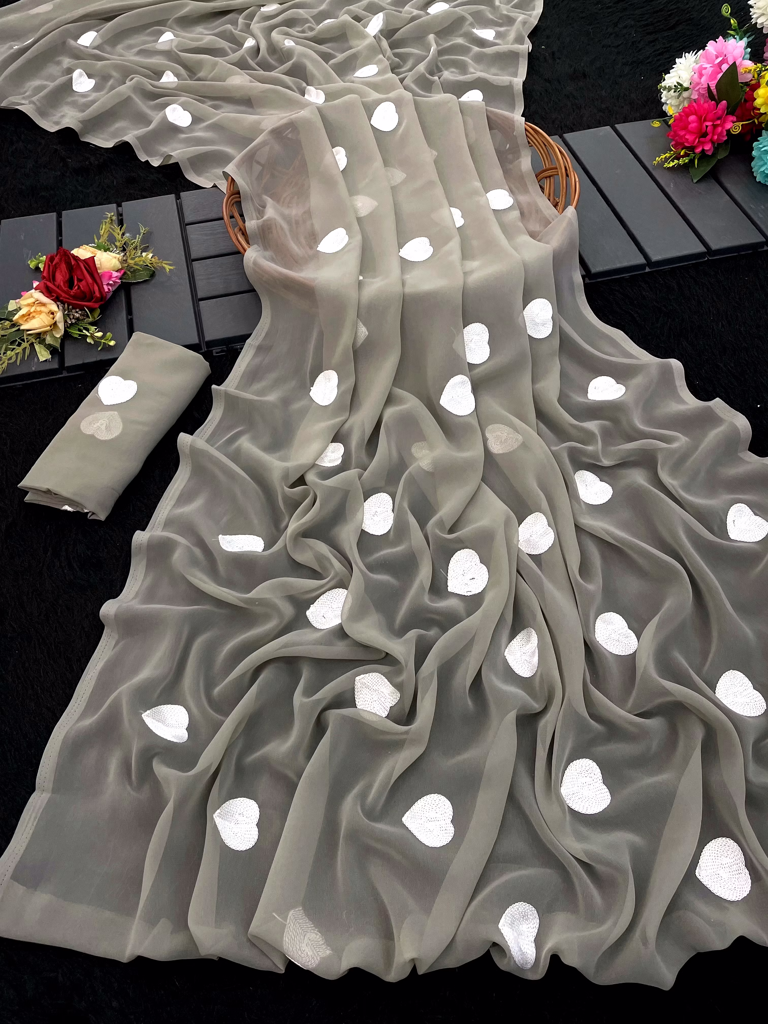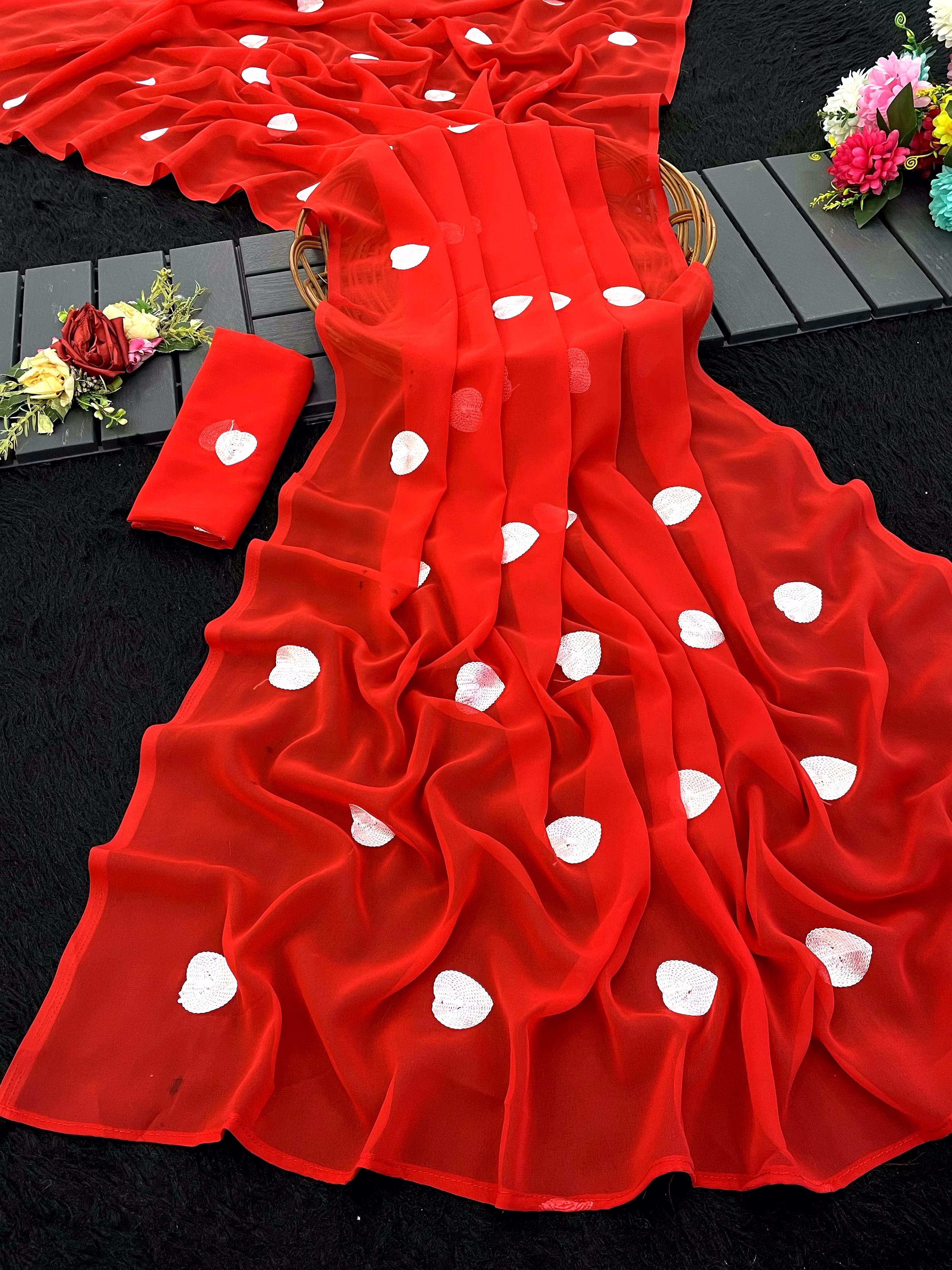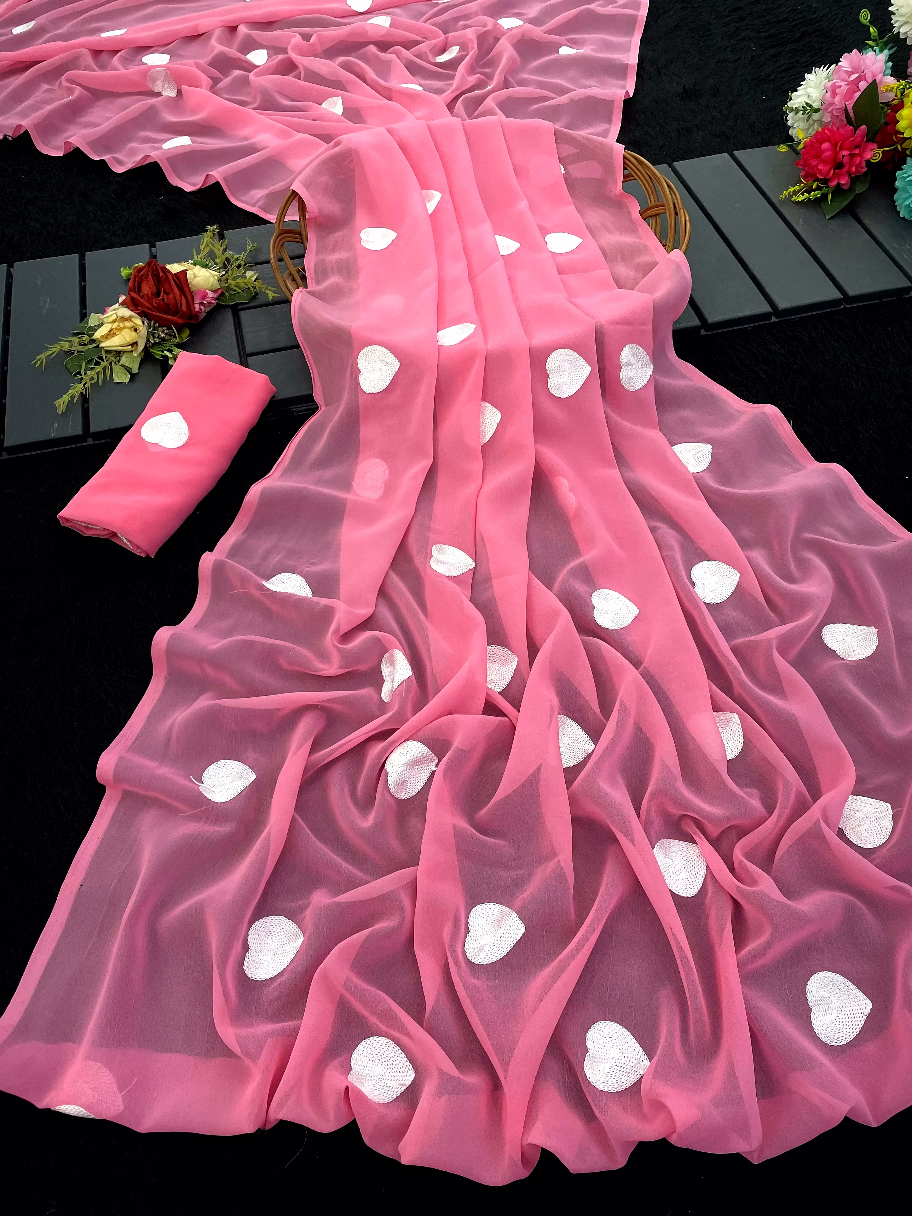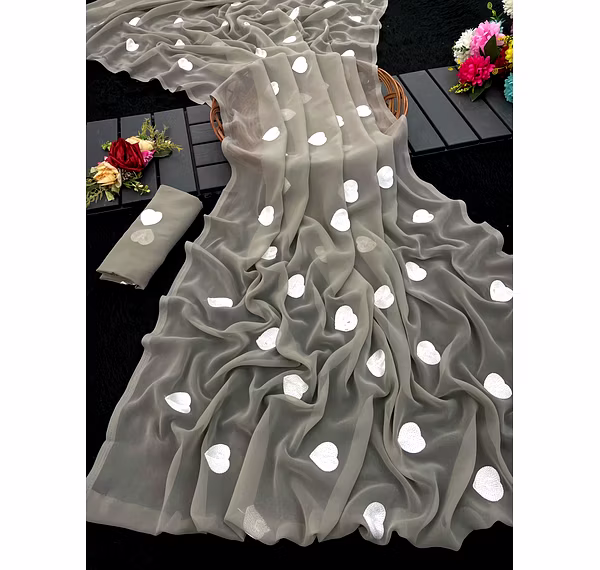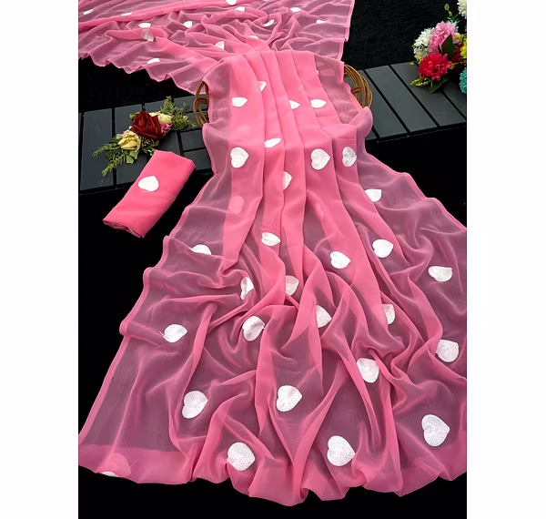 Elevate your traditional attire with our exquisite Georgette Embroidery Heart Work Saree. Experience the perfect blend of elegance and craftsmanship.