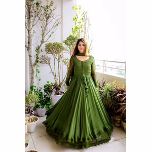 This Georgette Gown with Huge Flair and Lace Border Dupatta is the perfect blend of elegance and sophistication. Crafted from high-quality georgette fabric, this gown features a huge flare that adds to its glamour quotient. The gown is designed to hug your curves in all the right places, giving you a stunning silhouette that's sure to turn heads. The lace border dupatta is the perfect complement to the gown, adding an extra layer of sophistication to your look. The intricate lacework is stunning, and the dupatta falls beautifully around your shoulders, completing your look with a touch of class. The gown is perfect for a range of occasions, from weddings and parties to formal events and dinners. You'll love the way it makes you feel, with its soft, flowing fabric and flattering fit. The gown is available in a range of sizes, so you can find the perfect fit for your body type. One of the unique selling points of this gown is the fact that it's designed to be versatile. You can dress it up with accessories and heels for a fancy night out, or dress it down with sandals and minimal jewelry for a more casual look. Overall, this Georgette Gown with Huge Flair and Lace Border Dupatta is a must-have for any fashion-forward woman who wants to look her best and feel confident and elegant at any event. With its high-quality fabric, stunning design, and versatile style, it's the perfect addition to your wardrobe.