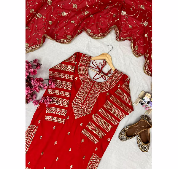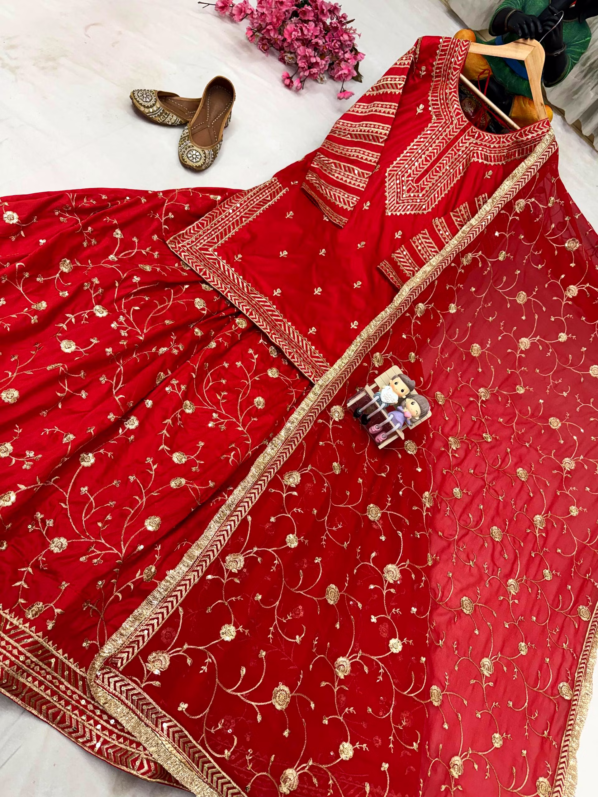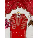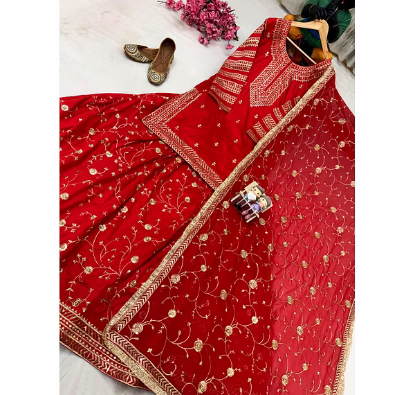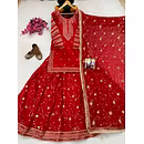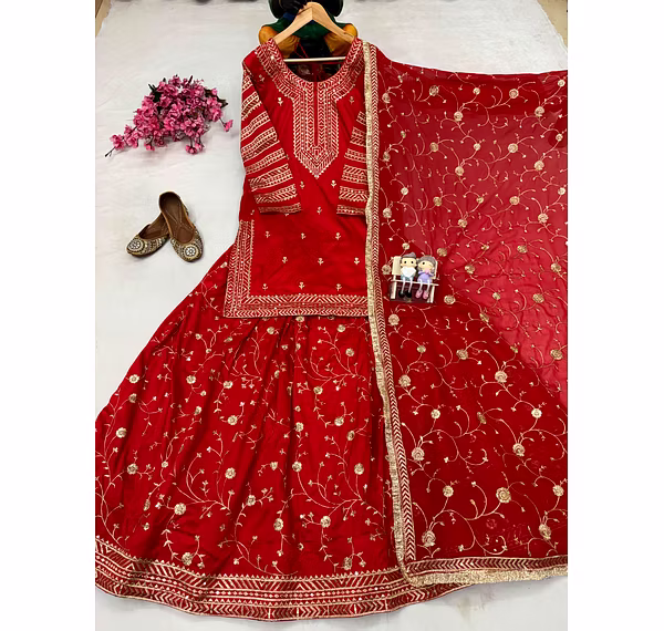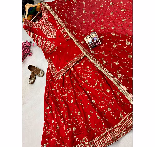 Elevate your style with this Georgette Red Kurti Lehenga, perfect for weddings and special occasions. Experience elegance and grace in one exquisite outfit.