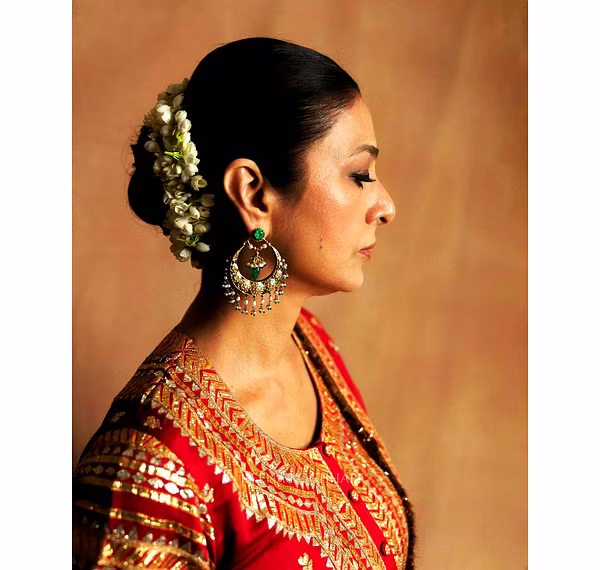 Work: Matching 5mm sequins and Zari embroidery work with a canvas patta stitched at the border for structure.