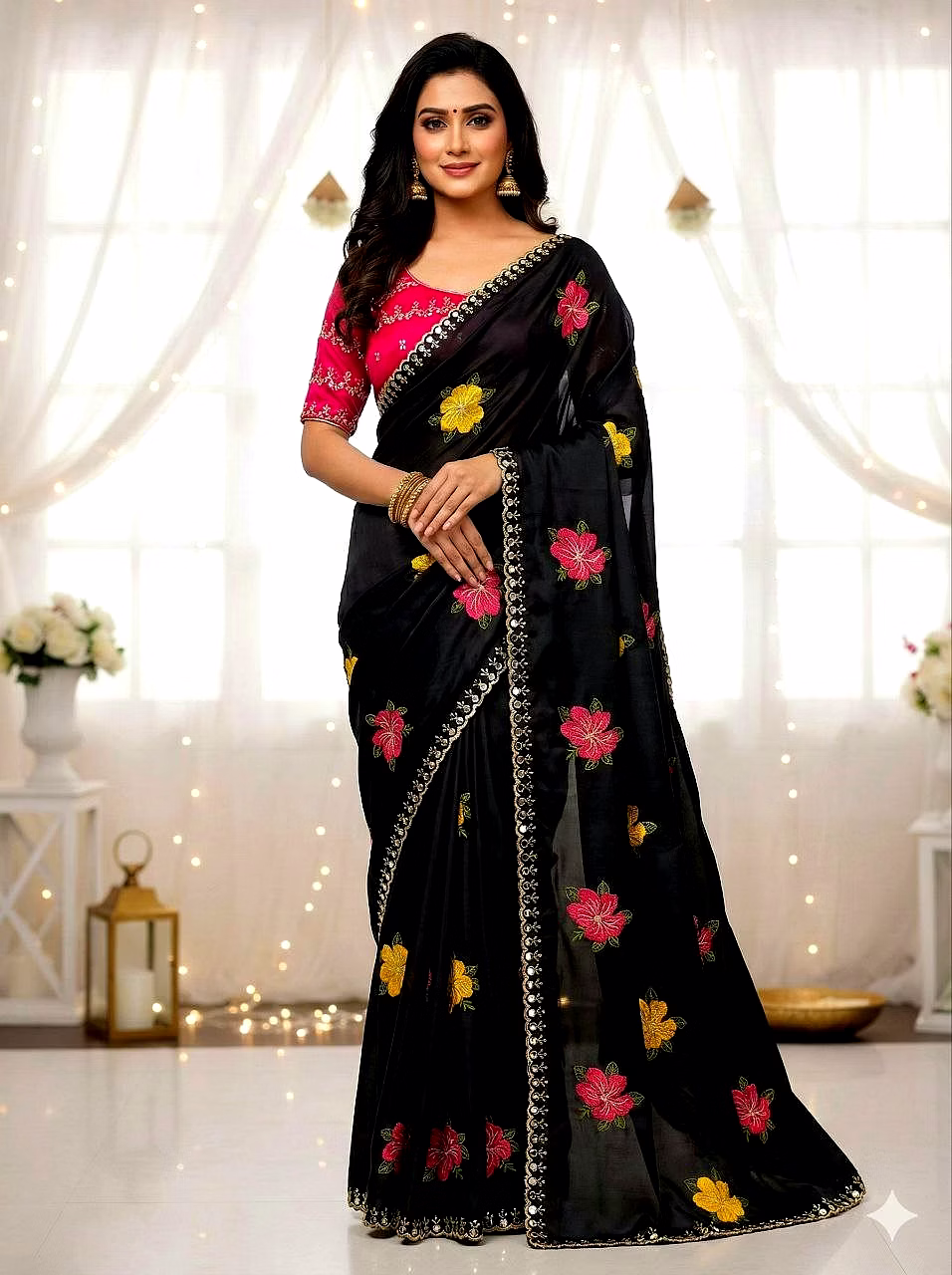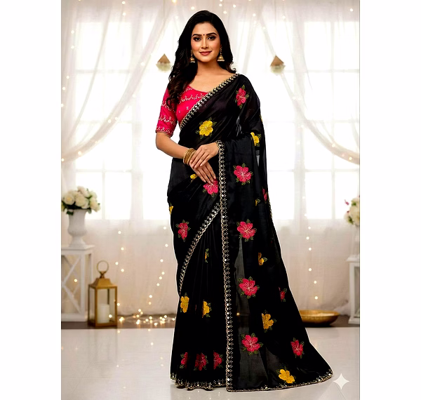 Embrace the beauty of nature with our Georgette Saree Floral design. The vibrant floral patterns on soft georgette fabric create a harmonious blend of traditional and contemporary aesthetics, ensuring you stand out with grace.