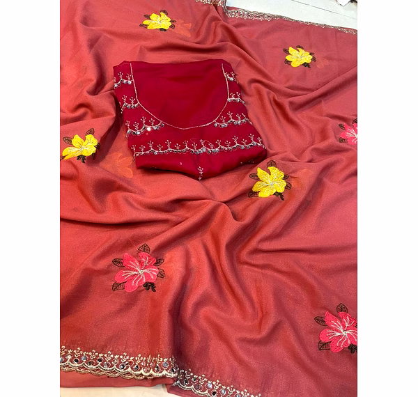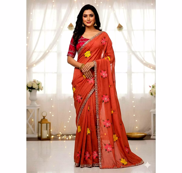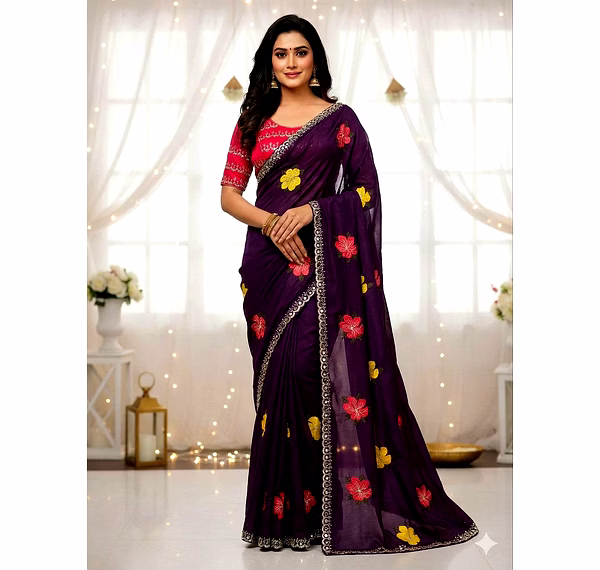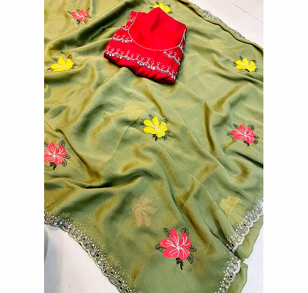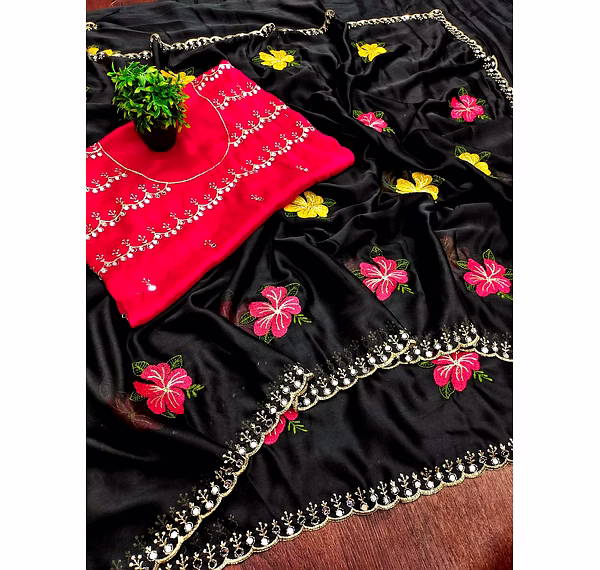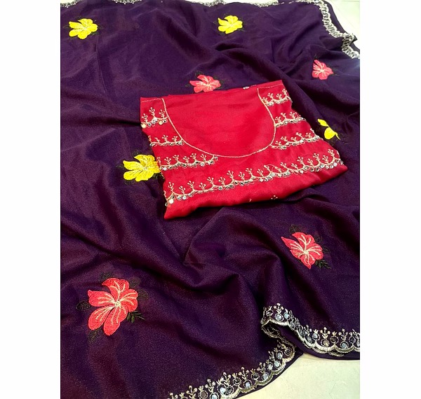 Step into timeless elegance with our Georgette Saree with Embroidery Work, crafted for women who love refined glamour with comfort. Made from premium-quality georgette fabric, this saree features delicate embroidery that adds richness without compromising its lightweight, flowy drape.