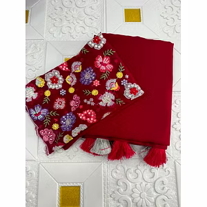 This Georgette saree is a true masterpiece that will elevate your wardrobe to new heights. Crafted from high-quality Georgette fabric, this saree is incredibly soft, lightweight, and drapes beautifully to give you a flattering silhouette. It features an exquisite embroidery work on the border that adds a touch of elegance and sophistication to the overall design. But what truly sets this saree apart is the handmade Latakan blouse that comes with it. Meticulously crafted by skilled artisans, the blouse is a work of art that complements the saree perfectly. It features intricate embroidery work that adds a pop of color and a touch of glamour to the outfit. This saree is perfect for any occasion, be it a wedding, a party, or a formal event. It is versatile, stylish, and comfortable, making it an ideal choice for fashion-conscious women who want to make a statement with their attire. Whether you're looking for something traditional or contemporary, this saree has it all. So if you want to stand out from the crowd and turn heads wherever you go, this Georgette saree with handmade Latakan blouse and embroidery is the perfect choice for you. With its unique design, superior quality, and exceptional craftsmanship, it reflects your impeccable taste and sense of style. Don't wait any longer, order yours today and experience the magic of this exquisite saree!