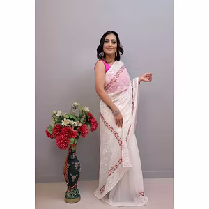 Indulge in the sheer beauty of our Georgette Saree with intricate detailing that exudes elegance and sophistication. The lightweight fabric drapes gracefully, making you feel like a true diva at any occasion.