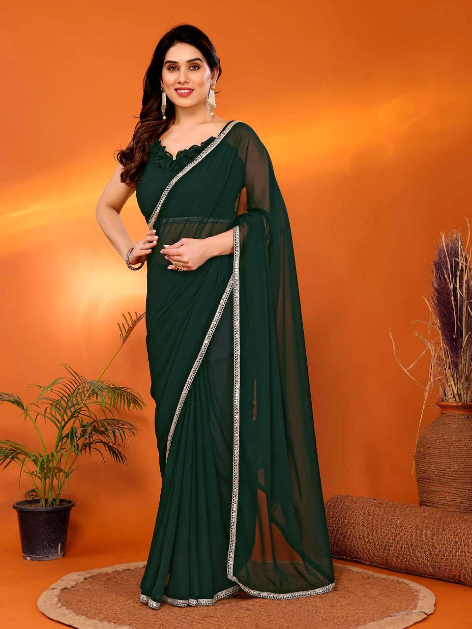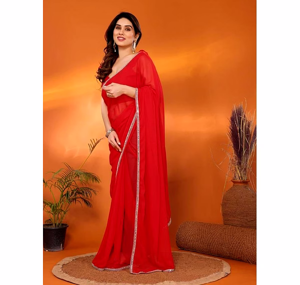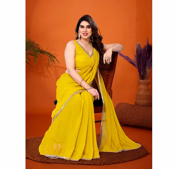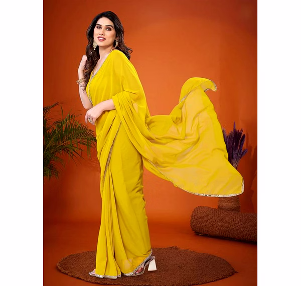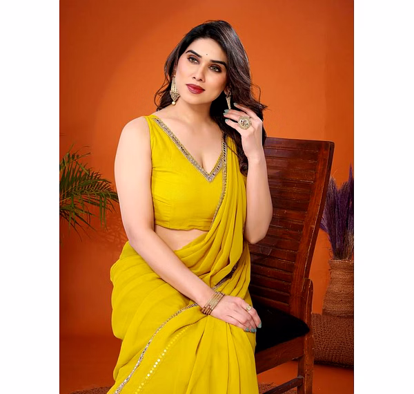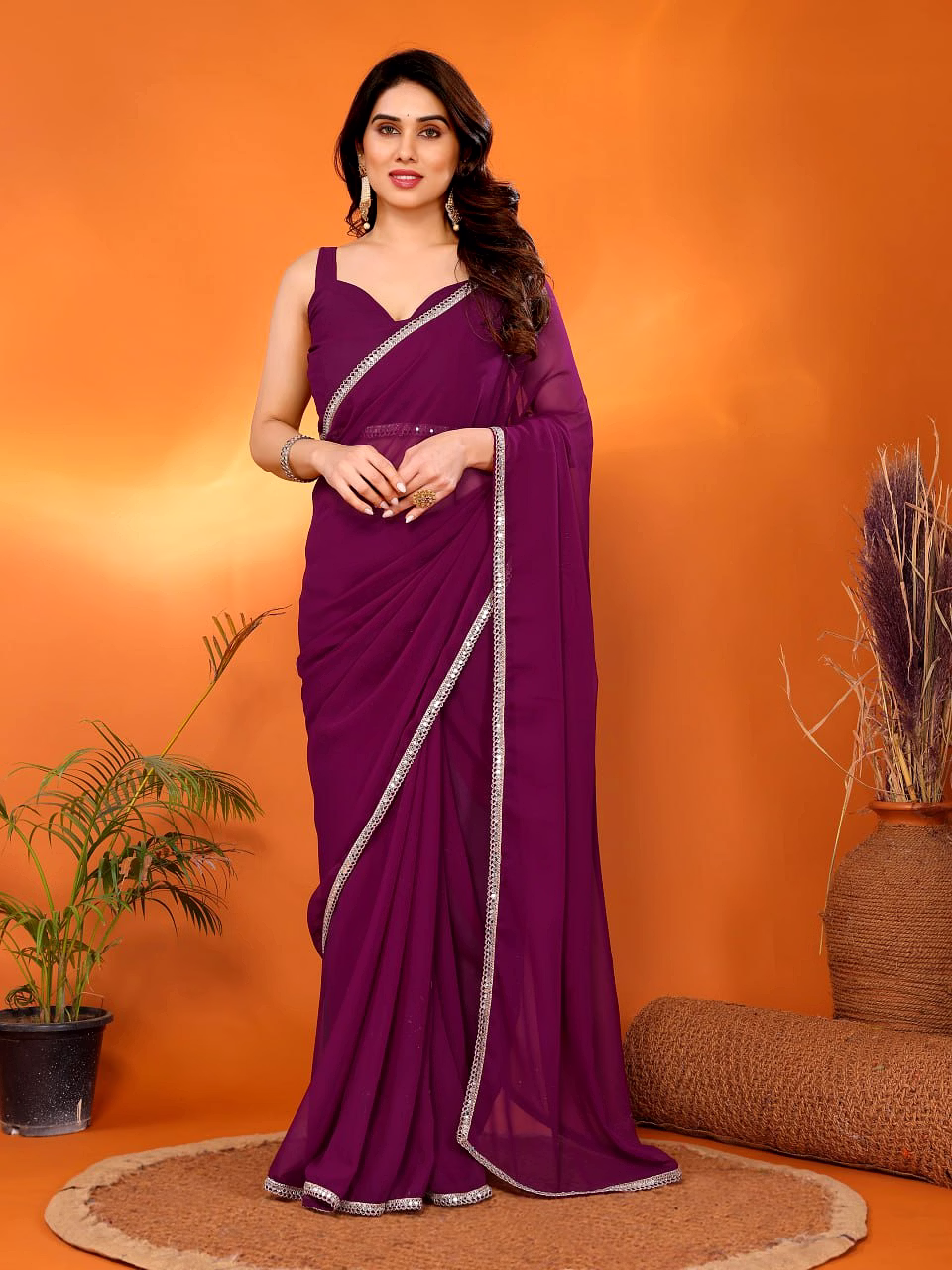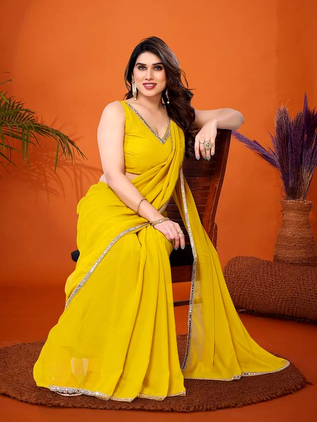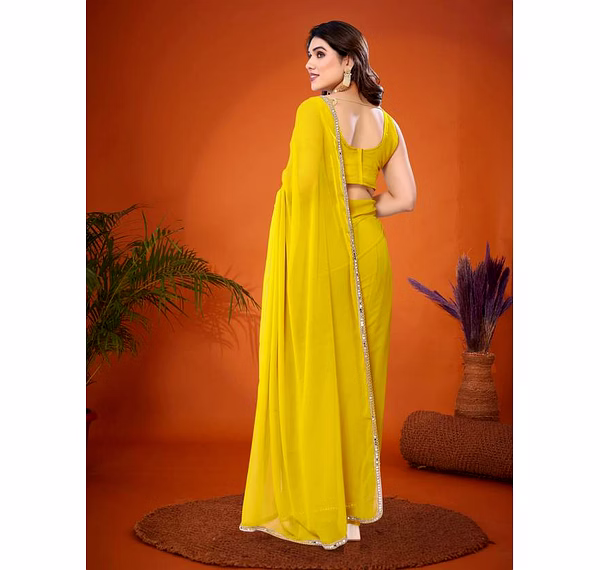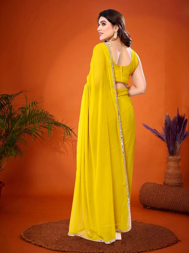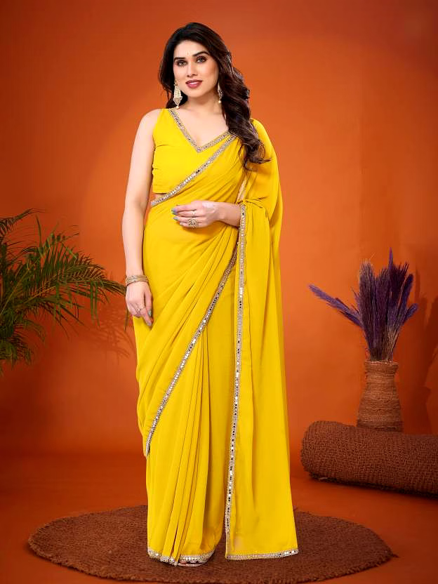 Elevate your ethnic charm with our stunning Georgette Saree adorned with exquisite mirror work. Embrace traditional elegance with a modern twist.