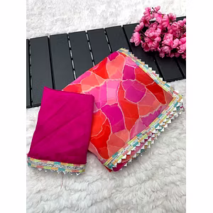 Introducing our exquisite Saree Saree, a true embodiment of elegance and charm. Crafted with heavy georgette fabric, this saree effortlessly drapes around you, exuding grace with every movement. The saree features a mesmerizing print adorned with delicate pearl lace, adding a touch of sophistication to its design. With a length of 5.5 meters, this saree allows you to showcase your style and creativity, whether you prefer a traditional or modern look. Weighing only 0.490 Kg, it is lightweight and comfortable, ensuring that you can wear it all day long without any discomfort. The accompanying blouse is made from georgette fabric with a captivating checks print, adding a contemporary twist to the overall ensemble. Measuring 1 meter in length, the blouse provides ample fabric for customization, allowing you to create a personalized and perfect fit. Designed for the modern woman who appreciates quality and style, our Saree Saree is a must-have addition to your wardrobe. It seamlessly combines traditional craftsmanship with contemporary aesthetics, making it suitable for various occasions, from weddings to festive celebrations. Indulge in the luxury of our Saree Saree and experience the joy of wearing a garment that not only enhances your beauty but also reflects your unique personality. With its exquisite fabric, intricate detailing, and versatile design, this saree is sure to turn heads and leave a lasting impression. Elevate your style quotient and make a statement with our Saree Saree. Order yours today and embrace the allure of timeless beauty and elegance.