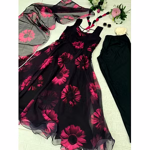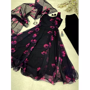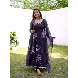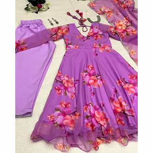 Step into elegance and grace with our Georgette Silk Anarkali Suit with Buttersilk Pant. This exquisite ensemble is crafted with meticulous attention to detail, designed to make you stand out at any occasion. Made from premium georgette silk fabric, this Anarkali suit exudes a timeless charm. The flowing silhouette gracefully drapes around your body, enhancing your femininity and exuding an air of regality. The intricate embroidery adorning the bodice and sleeves adds a touch of opulence, making you the epitome of sophistication. The buttersilk pant, with its comfortable fit and elegant drape, complements the Anarkali suit perfectly. It adds a contemporary twist to this classic ensemble, ensuring you feel both stylish and comfortable throughout the day or night. One of the key features of this ensemble is its versatility. Whether you're attending a wedding, a formal event, or a festive celebration, this Anarkali suit is the perfect choice. Its timeless design and rich color options make it suitable for a wide range of occasions and personal styles. In addition to its aesthetic appeal, this Georgette Silk Anarkali Suit with Buttersilk Pant offers practical benefits as well. The high-quality fabric ensures durability and easy maintenance, so you can enjoy this outfit for years to come. The comfortable fit allows for freedom of movement, ensuring you feel at ease no matter the occasion. Make a statement with the unique selling points of this Anarkali suit. Its stunning design, impeccable craftsmanship, and luxurious fabric make it a true masterpiece. With this ensemble, you will effortlessly captivate everyone around you and leave a lasting impression. Embrace elegance and style with our Georgette Silk Anarkali Suit with Buttersilk Pant. Elevate your wardrobe and embrace the beauty of this timeless ensemble.