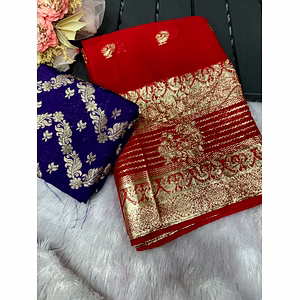 The Georgette Silk Saree is a true masterpiece, combining elegance and luxury in one stunning garment. Crafted from premium weaved viscose, this saree is a testament to fine craftsmanship and attention to detail. Featuring a rich pallu and a delicate latkan, this saree exudes sophistication and grace. The rich, vibrant colors and intricate patterns make it a perfect choice for special occasions and festivities. Whether you're attending a wedding, a traditional event, or simply want to make a statement, this saree will undoubtedly turn heads and make you the center of attention. Not only does the Georgette Silk Saree look exquisite, but it also feels incredibly comfortable against the skin. The soft, lightweight fabric drapes beautifully, allowing you to move with ease and elegance. You'll never have to compromise on style or comfort with this saree. Designed to enhance your natural beauty, this saree flatters all body types and suits all ages. Its timeless appeal ensures that it will remain a cherished wardrobe staple for years to come. With its versatile style, you can pair it with a statement blouse and traditional jewelry for a traditional look or dress it down with a modern twist. Invest in the Georgette Silk Saree and experience the sheer luxury and elegance it brings to your wardrobe. Embrace the beauty and heritage of Indian fashion with this exquisite piece. Order now and make a lasting impression wherever you go.