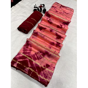 The Georgette Silk Saree is a true masterpiece, combining elegance and luxury in one stunning garment. Crafted from premium weaved viscose, this saree is a testament to fine craftsmanship and attention to detail. Featuring a rich pallu and a delicate latkan, this saree exudes sophistication and grace. The rich, vibrant colors and intricate patterns make it a perfect choice for special occasions and festivities. Whether you're attending a wedding, a traditional event, or simply want to make a statement, this saree will undoubtedly turn heads and make you the center of attention. Not only does the Georgette Silk Saree look exquisite, but it also feels incredibly comfortable against the skin. The soft, lightweight fabric drapes beautifully, allowing you to move with ease and elegance. You'll never have to compromise on style or comfort with this saree. Designed to enhance your natural beauty, this saree flatters all body types and suits all ages. Its timeless appeal ensures that it will remain a cherished wardrobe staple for years to come. With its versatile style, you can pair it with a statement blouse and traditional jewelry for a traditional look or dress it down with a modern twist. Invest in the Georgette Silk Saree and experience the sheer luxury and elegance it brings to your wardrobe. Embrace the beauty and heritage of Indian fashion with this exquisite piece. Order now and make a lasting impression wherever you go.