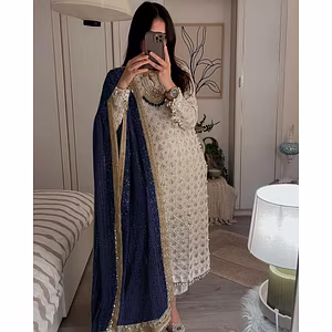 A stunning Georgette Suit with Sequins Embroidery & Real Mirror Work, Gharara, Dupatta Set is a perfect ensemble for any festive occasion, blending traditional elegance with contemporary style. This exquisite set is meticulously crafted from the finest georgette fabric, known for its lightweight and flowing nature, offering comfort and grace with every wear. The suit is adorned with intricate sequin embroidery that shimmers with every movement, making it a captivating choice for evening events and celebrations. The real mirror work embedded within the embroidery adds a touch of opulence and sophistication, reflecting light beautifully and creating a dazzling effect that is sure to turn heads. The embroidery is done with precision, showcasing skilled craftsmanship and attention to detail, which enhances the overall aesthetic of the outfit. Accompanying the suit is a stunning gharara, a traditional wide-legged trouser that adds a regal charm to the ensemble. The gharara is also embellished with matching sequins and mirror work, ensuring a cohesive and harmonious look. Its flared silhouette offers a perfect blend of tradition and modernity, making it an ideal choice for those who appreciate classic styles with a contemporary twist. The set is completed with a dupatta, crafted from the same luxurious georgette fabric. The dupatta is generously adorned with sequins and mirror work, creating a seamless and elegant finish. Its lightweight nature allows for versatile draping options, enabling you to style it in various ways to suit the occasion. This Georgette Suit with Sequins Embroidery & Real Mirror Work, Gharara, Dupatta Set is available in a range of vibrant colors, allowing you to choose the one that best complements your personal style and skin tone. Whether you are attending a wedding, a festive celebration, or any special event, this ensemble promises to make you look and feel extraordinary. Its timeless design and luxurious detailing ensure that it will remain a treasured piece in your wardrobe for years to come.