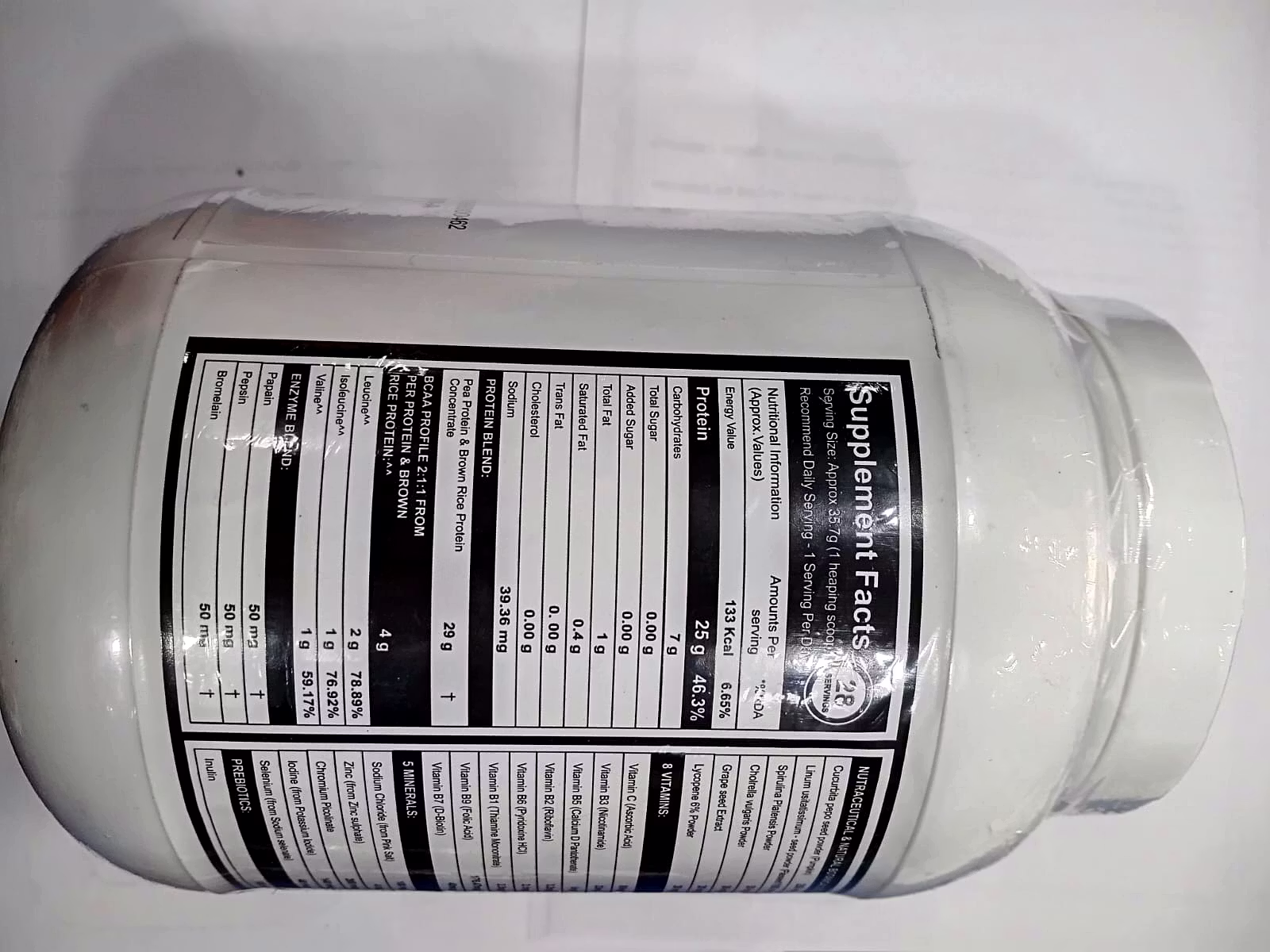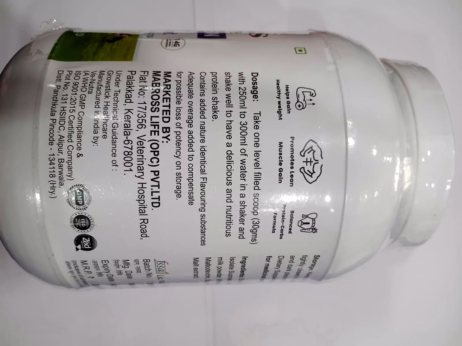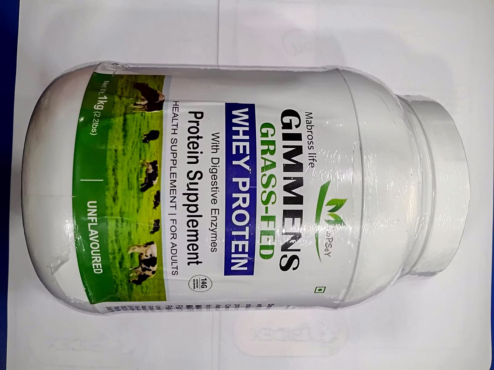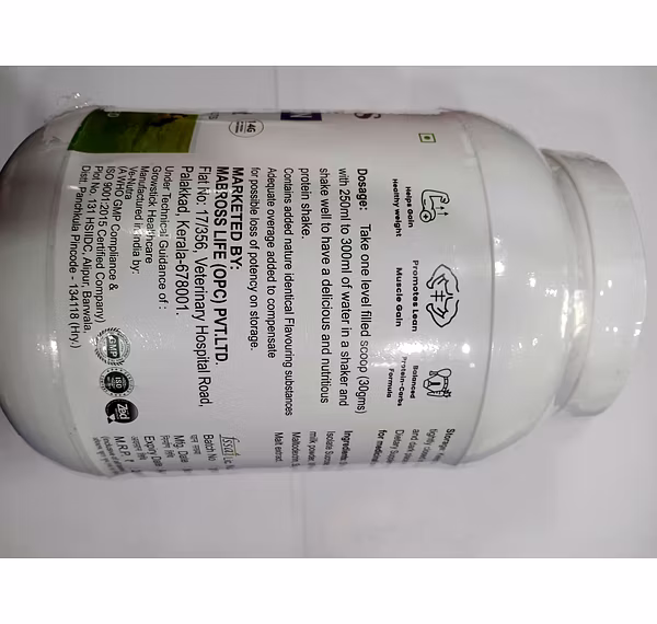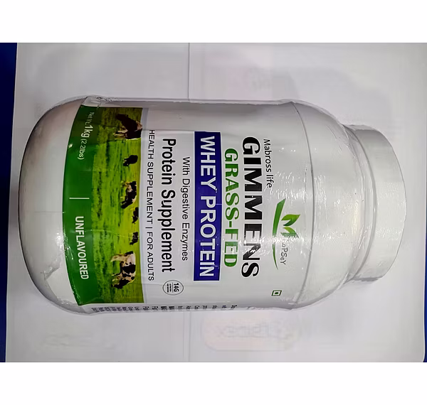 This product is the Mabross Life Gimmens Grass-Fed Whey Protein, a 1 Kg unflavoured health and protein supplement for adults. It is formulated as a balanced Protein-Carbs Formula designed to help gain healthy weight and promote lean muscle gain. A single serving of 35.7g provides a substantial 25g of Protein and 133 kcal, making it a robust post-workout or meal supplement. Its formula uniquely combines a Protein Blend of Whey Protein Isolate, Concentrate, Pea Protein, and Brown Rice Protein, alongside a primary ingredients list that includes Soya Protein and Maltodextrin, offering a multi-source approach to protein and energy.The supplement goes beyond basic protein with extensive fortification, including a Nutraceutical & Natural Botanical Blend and a comprehensive profile of Vitamins, Minerals, Prebiotics, and Probiotics. Key botanical ingredients are included, such as Pumpkin Seed Powder, Flaxseed Powder, Spirulina, and Grape Seed Extract, among others. Crucially, the formula ensures 100% Recommended Daily Allowance (RDA) for all eight B Vitamins (B1, B2, B3, B5, B6, B7, B9, B12) and Vitamin C. To aid in nutrient breakdown and absorption, it also contains a dedicated Enzyme Blend featuring Papain, Pepsin, and Bromelain.The recommended usage is one level scoop (30gms) mixed with 250ml to 300ml of water to create a nutritious shake. The product is manufactured in India, has an MRP of ₹2499.00, and is marked as a Dietary Supplement, specifically noting that it is Not for medicinal use. With a manufacturing date of Nov-25 and an expiry date of Apr-27, it offers a long shelf life when stored properly in a cool, dry, and dark place with the container tightly closed.